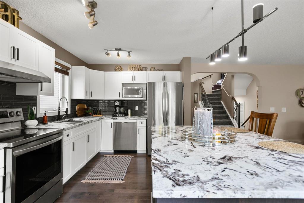 Nestled in the welcoming community of Tuscany, this beautifully updated home at 20 Tuscarora Place offers a perfect blend of modern comfort and exceptional convenience. You’ll enjoy easy access to public transportation, the C-Train, Stoney Trail, and all the local amenities Tuscany has to offer. Step inside to be greeted by stunning hardwood floors and a versatile flex room at the entry, ideal for a formal dining area or home office. The heart of the home is the extensively updated kitchen, boasting new cabinetry, upgraded stainless steel appliances, and elegant granite countertops. This flows seamlessly into a spacious living room, anchored by a cozy gas fireplace. Upstairs, a large bonus room provides the perfect space for family movie nights. The generous primary bedroom easily accommodates a king-size bed and features a large walk-in closet and an updated three piece en-suite with a custom tiled shower. Two additional well-proportioned bedrooms and a fully renovated four piece main bathroom complete this level. The fully finished lower level adds valuable living space with a fourth bedroom and a large recreation room, perfect for entertainment. Outside, your private backyard is an oasis for family, friends, and pets, featuring a large deck, a fire pit for evening gatherings, and a sizable shed for extra storage. This move-in-ready home is not only beautiful but also smartly updated, with recent replacements including the furnace, hot water tank, majority of windows, garage door opener and the welcome addition of central air conditioning. This is a fantastic opportunity to own a fully featured home that is ready for you to simply unpack and enjoy.