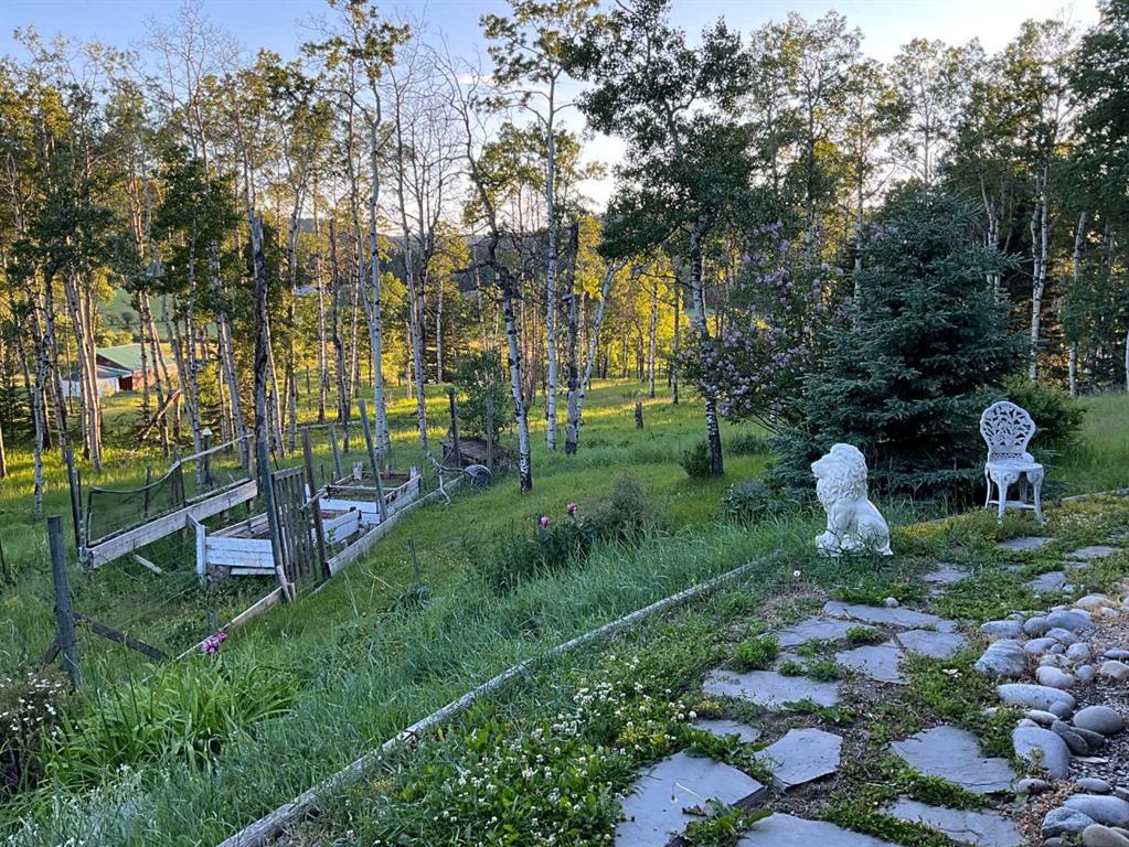 An acreage with so much potential! This property features a unique home, a great location, a large workshop, a pond, and a hilltop with amazing views of the foothills and 3 valleys that could be another building site. The 23 acre property is conveniently located 10 minutes south of Bragg Creek, and very close to 320 acres of crown land. The house features very unique architecture, with curved walls and lots of windows. The main floor has a recently built custom kitchen with large island, a living area wrapped around with a curved wall, an office (or study room), a recently refinished bathroom, and a large bedroom. The upper floor features a primary bedroom with en suite bathroom, a workout or seating area, access to two decks, and a large walk-in dressing area and closet. The house has a large single car garage currently being used for storage. The location is quite private with a long driveway that winds past a picturesque pond that would be great for skating in winter. The workshop is quite large and would be a great place for setting up any number of crafty activities or could be converted into a larger garage. One end of this workshop has an integrated studio & green house space. This home could be the coolest little weekend getaway or artist retreat, or could be a great second residence while you build a smaller house up on the ridge to take advantage of the amazing views. Come and picture the possibilities today!