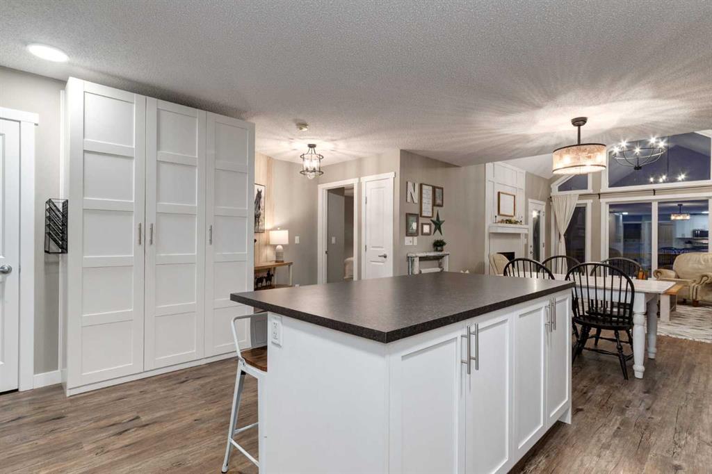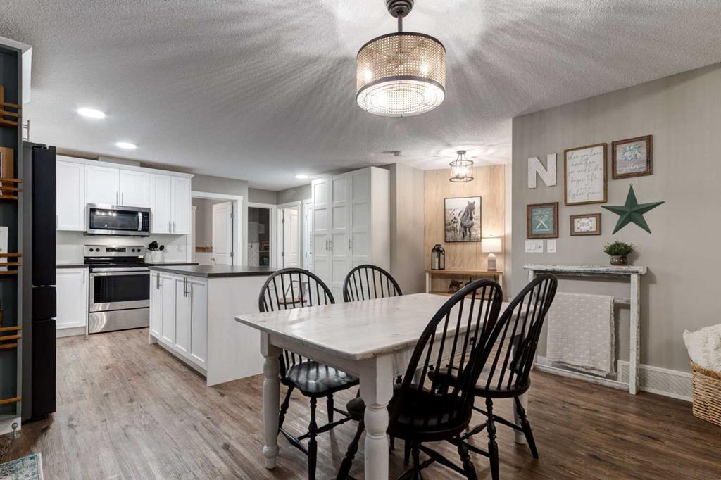 The Dining Room provides a COMFORTABLE + FUNCTIONAL setting for evening dinners w/family + friends. A WARM & INVITING KITCHEN ft CRISP WHITE CABINETRY, SS APPLIANCES, + a LARGE CENTRAL ISLAND w/seating. Thoughtfully designed w/ample storage, generous counter space, + bright overhead lighting, the kitchen flows seamlessly w/the living area + provides direct access to the INCREDIBLE DECK. The WRAPAROUND DECK offers INCREDIBLE MOUNTAIN VIEWS + a GAS BBQ LINE, creating the perfect space for outdoor entertaining and everyday enjoyment.