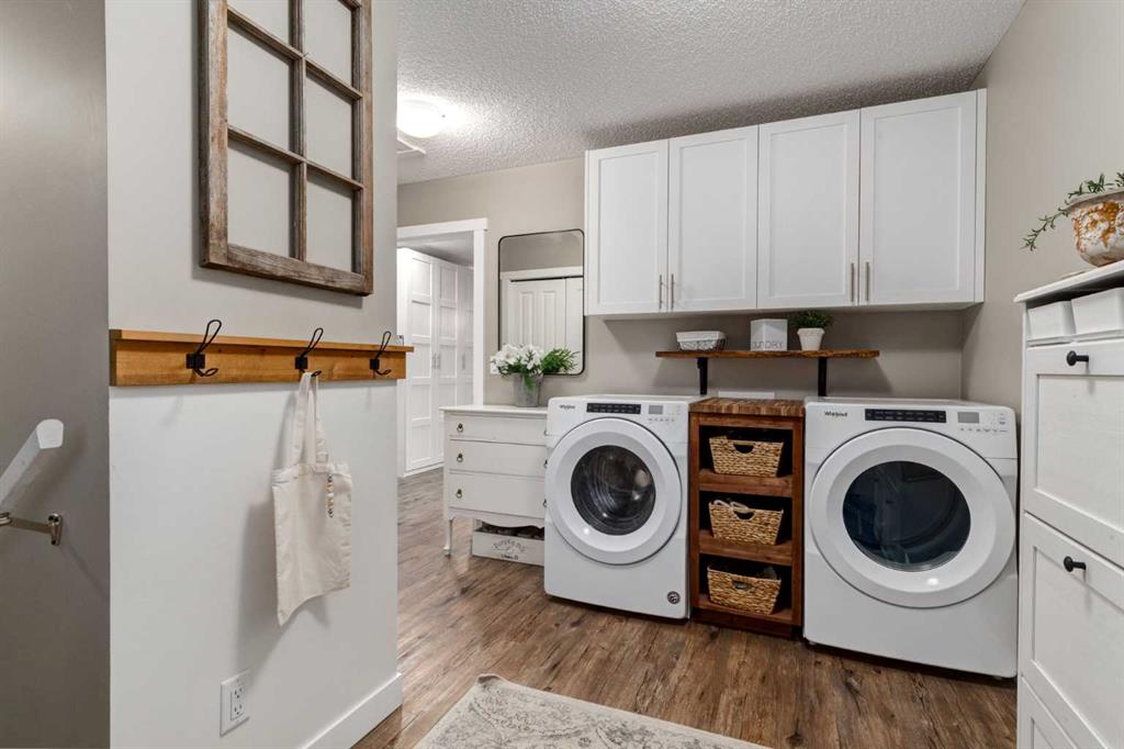 The PRIMARY SUITE is a private retreat, ft 2 CLOSETS, incl. a WALK-IN, + a LUXURIOUS 4-PC ENSUITE w/a STAND-ALONE SOAKER TUB, SEPARATE SHOWER, + LARGE VANITY. A 4-PC BATH, 2nd BEDROOM, + CONVENIENT MAIN-FLOOR LAUNDRY/MUDROOM complete the level.