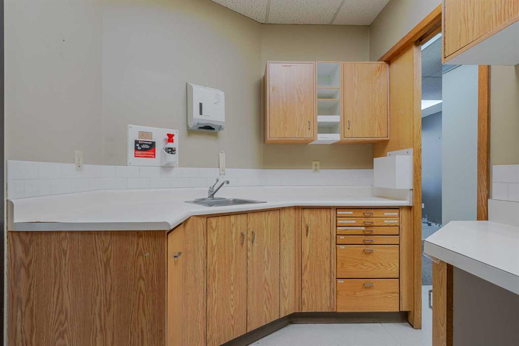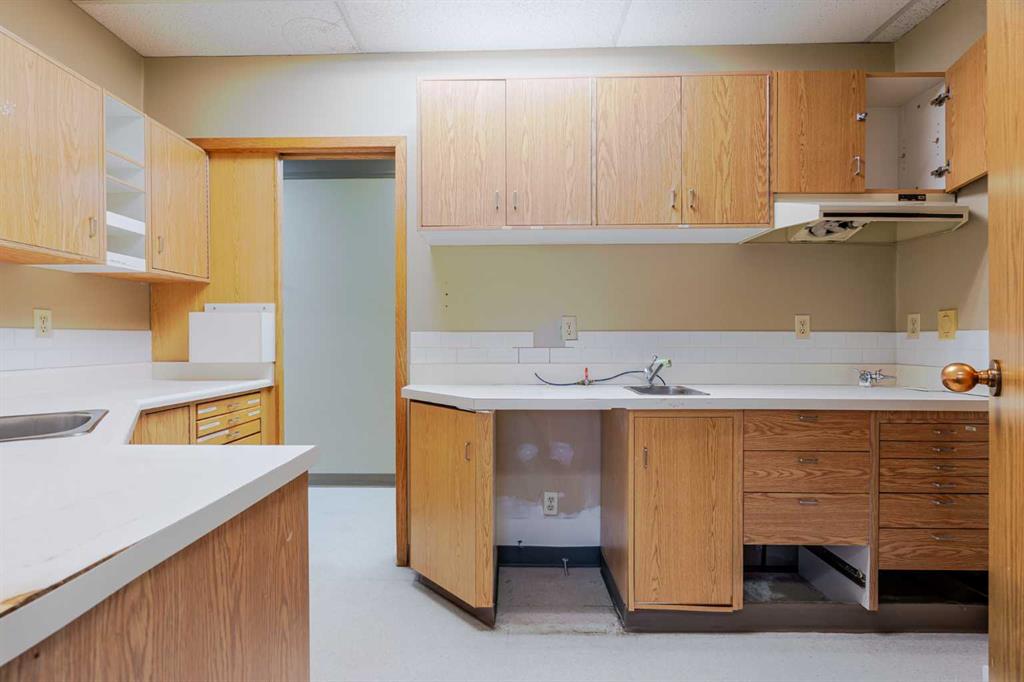 Additional highlights include a generous staff room with sink (which could easily be converted into an additional office), as well as a separate room equipped with two sinks, extensive counter space, cabinetry, and a hood fan—ideal for a variety of professional or medical uses.