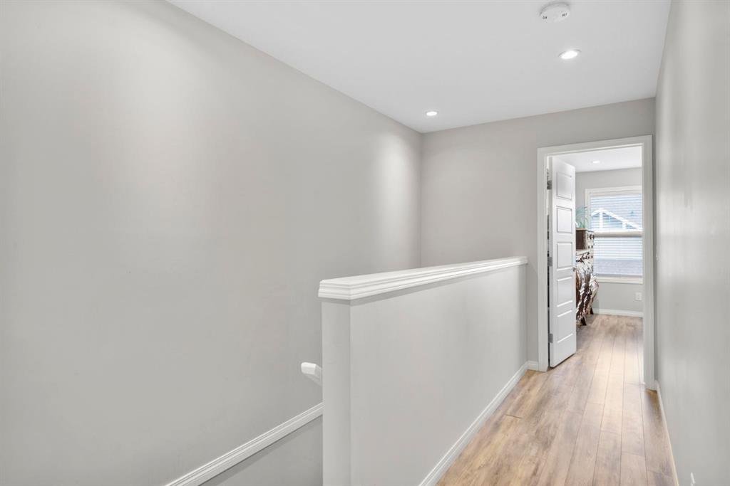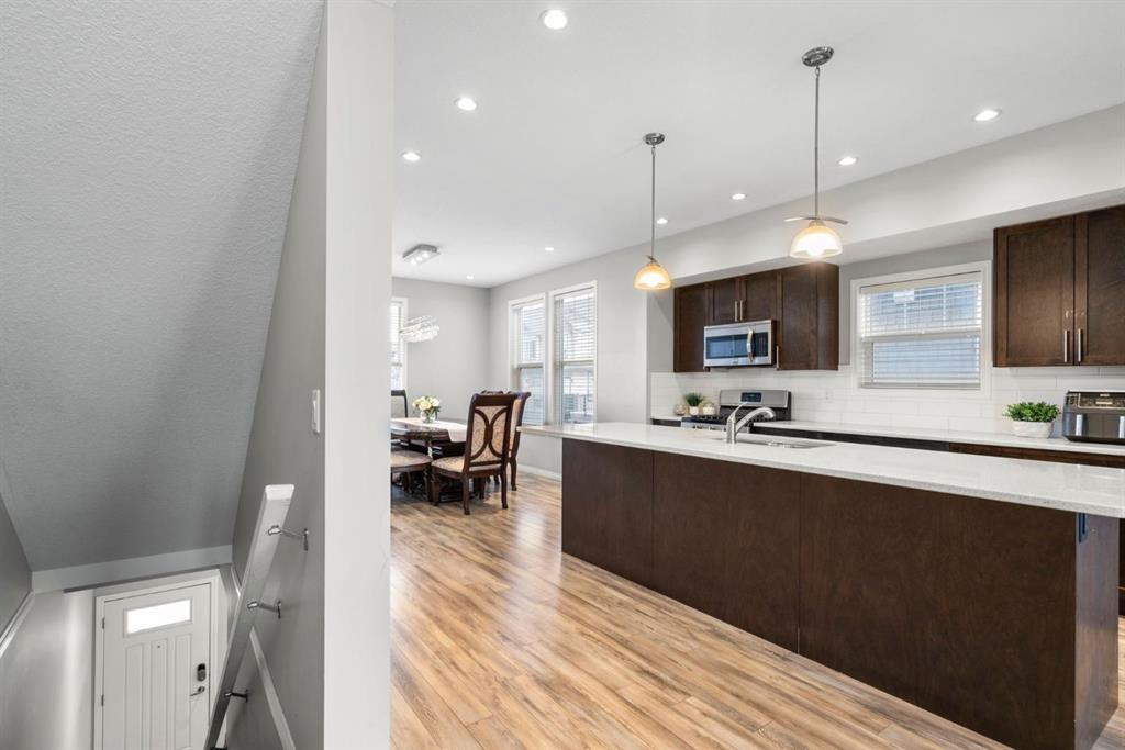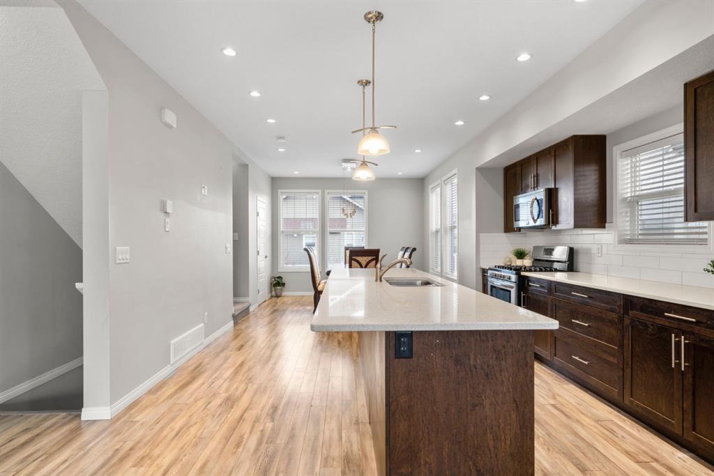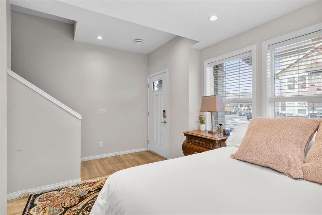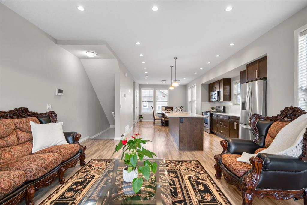 Welcome to this beautifully maintained three-level townhouse in the desirable community of Williamstown in Airdrie, offering 1,718.22 sq ft of well-designed living space, a functional layout, and a rare double attached garage. The ground-level entry provides a welcoming first impression with durable flooring and a bright, practical layout. This level features a spacious office space—ideal for guests, a home office, or multi-generational living—along with a full 3-piece bathroom, offering excellent flexibility and privacy. The main living level showcases an inviting open-concept floor plan designed for both everyday living and entertaining. The kitchen is the heart of the home, featuring quartz countertops, dark cabinetry, stainless steel appliances, a classic subway tile backsplash, and a large central island with seating. The kitchen flows seamlessly into the dining area and spacious living room, where a contemporary electric fireplace adds warmth and style. Large windows flood the space with natural light, and sliding doors lead to a private balcony—perfect for morning coffee or evening relaxation. A convenient main-floor powder room completes this level. Upstairs, the home continues to impress with three additional bedrooms, including a generous primary retreat featuring a 4-piece ensuite and ample closet space. A second full bathroom serves the additional bedrooms, while upper-floor laundry adds everyday convenience and efficiency. Outside, enjoy open sightlines and green space views, enhancing both privacy and lifestyle appeal. Located in a well-maintained complex, this home is close to walking paths, parks, schools, shopping, and offers easy access to major commuter routes. This move-in-ready townhouse delivers the perfect blend of space, comfort, and location—ideal for families, professionals, or investors seeking a low-maintenance lifestyle in one of Airdrie’s most welcoming communities.