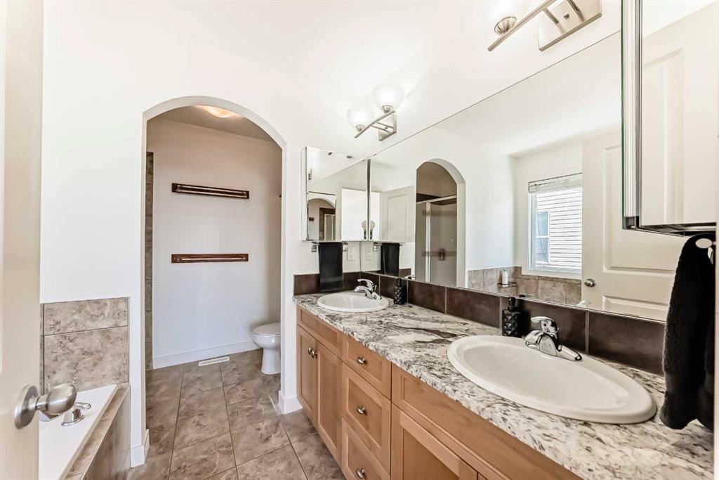 Upstairs includes three bedrooms, convenient upper laundry, and a spacious bonus room with vaulted ceilings. The primary suite offers a generous layout, a double vanity, soaker tub, separate shower, and a large organized closet.