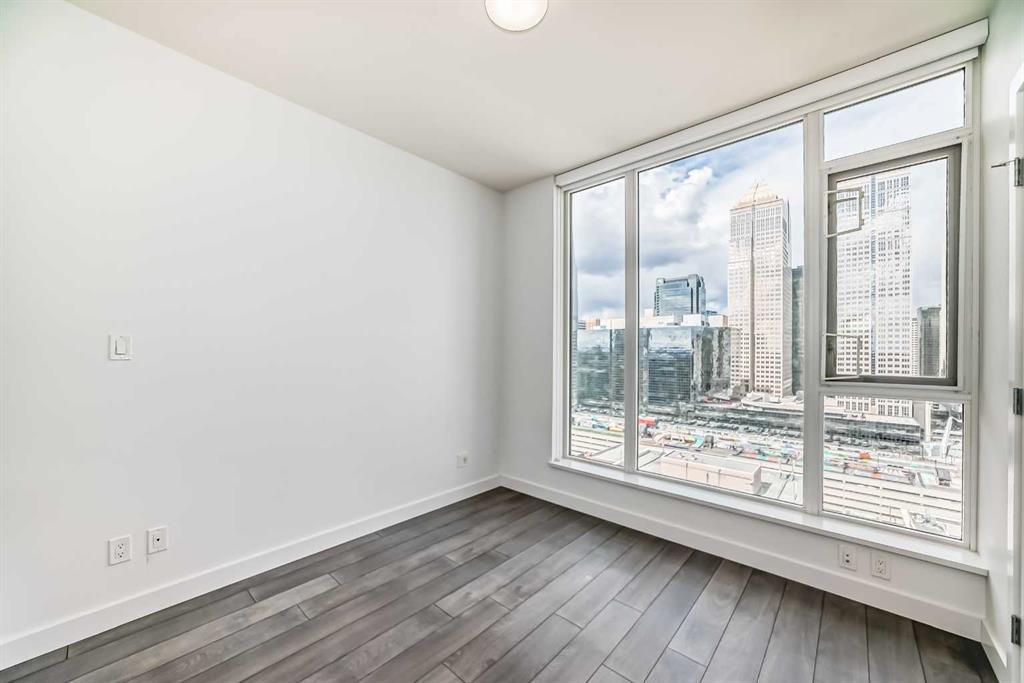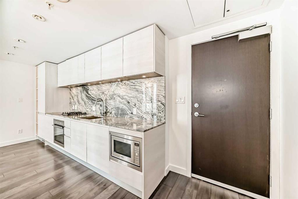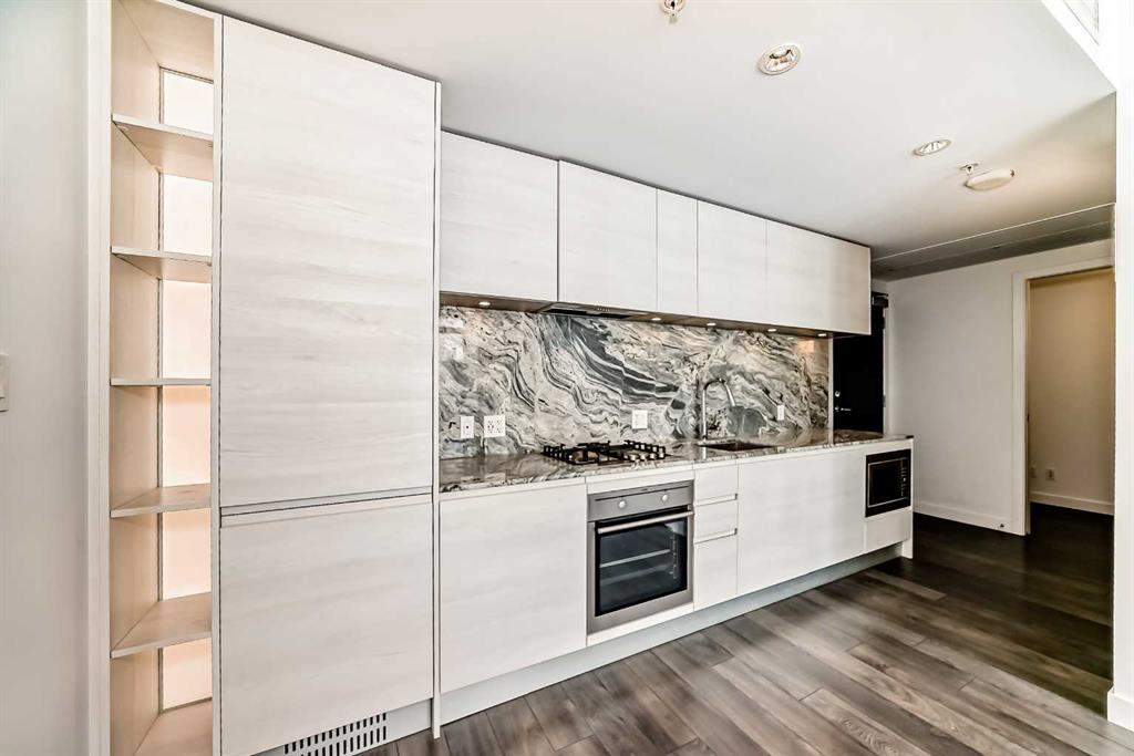 Priced to sell! Experience elevated city living in this beautifully appointed 1-bedroom, 1-bathroom condo perched on the 20th floor of Park Point—ideally located in the heart of Calgary’s vibrant Beltline district. Enjoy breathtaking panoramic views of downtown, including the iconic Calgary Tower, all from the comfort of your private balcony. Step into a sleek, modern galley-style kitchen designed to impress, featuring a gas cooktop, full slab granite countertops and backsplash, and built-in oven, microwave, and fridge. Floor-to-ceiling windows flood the open-concept living space with natural light, while wide plank laminate flooring and 9-foot ceilings add a touch of refined elegance. The spacious bedroom offers privacy and functionality with dual closets, while the stylish bathroom includes a marble countertop vanity, walk-in glass shower, and clever hidden storage behind mirrored panels. A versatile flex room offers added functionality—perfect for a home office, creative studio, or additional in-suite storage. Additional highlights include in-suite laundry, an assigned storage locker, and a titled underground parking stall conveniently located just steps away. Park Point offers resort-style amenities including a fully-equipped gym, yoga room, sauna, steam room, lounge, BBQ terrace, zen garden, concierge service, 24/7 security, and a car/pet wash bay. You’re just steps from Central Memorial Park, top dining and shopping spots, transit, and the downtown +15 network. This is the ultimate downtown lifestyle. Don’t miss your chance to call this beautifully designed, move-in-ready condo home. Book your private tour today!