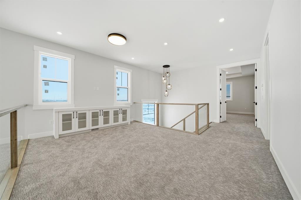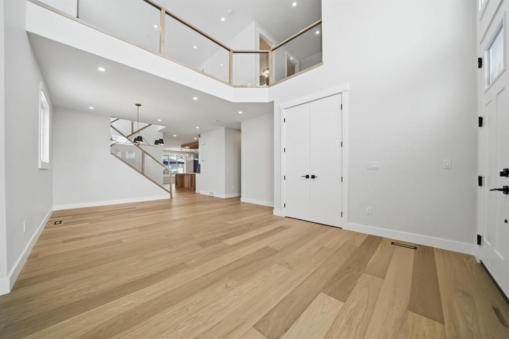 Welcome to this stunning, fully upgraded west-facing home in the highly sought-after community of Waterford Estates, offering over 3,300 sq. ft. of beautifully designed living space that perfectly blends luxury, comfort, and functionality. The main level features a bedroom with its own private en-suite—ideal for guests or multi-generational living—alongside a grand open-concept layout with an impressive open-to-below feature that fills the home with natural light. The chef-inspired kitchen boasts quartz countertops, upgraded lighting, and a separate spice kitchen, complemented by a spacious dining area, mudroom, and powder room. Upstairs, you’ll find two impressive primary-style bedrooms, each with its own en-suite, including a luxurious main primary retreat with a spa-inspired 5-piece bathroom, along with two additional generously sized bedrooms and a full washroom. This exceptional home also offers a separate basement entrance for future potential or income opportunities and sits on a premium lot with green space on one side, providing added privacy and extra outdoor enjoyment, all while being conveniently located near schools, shopping, and everyday amenities.