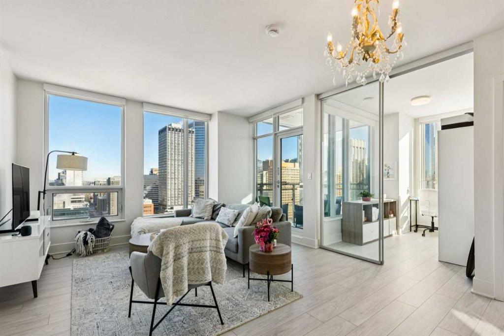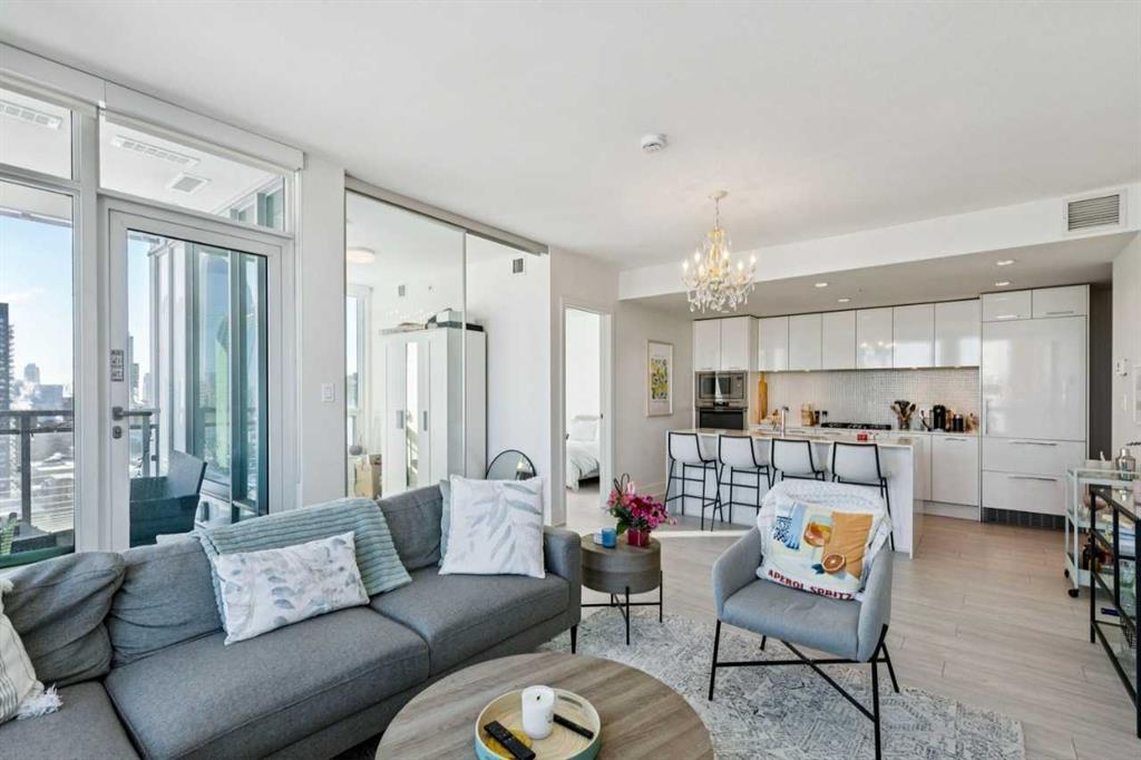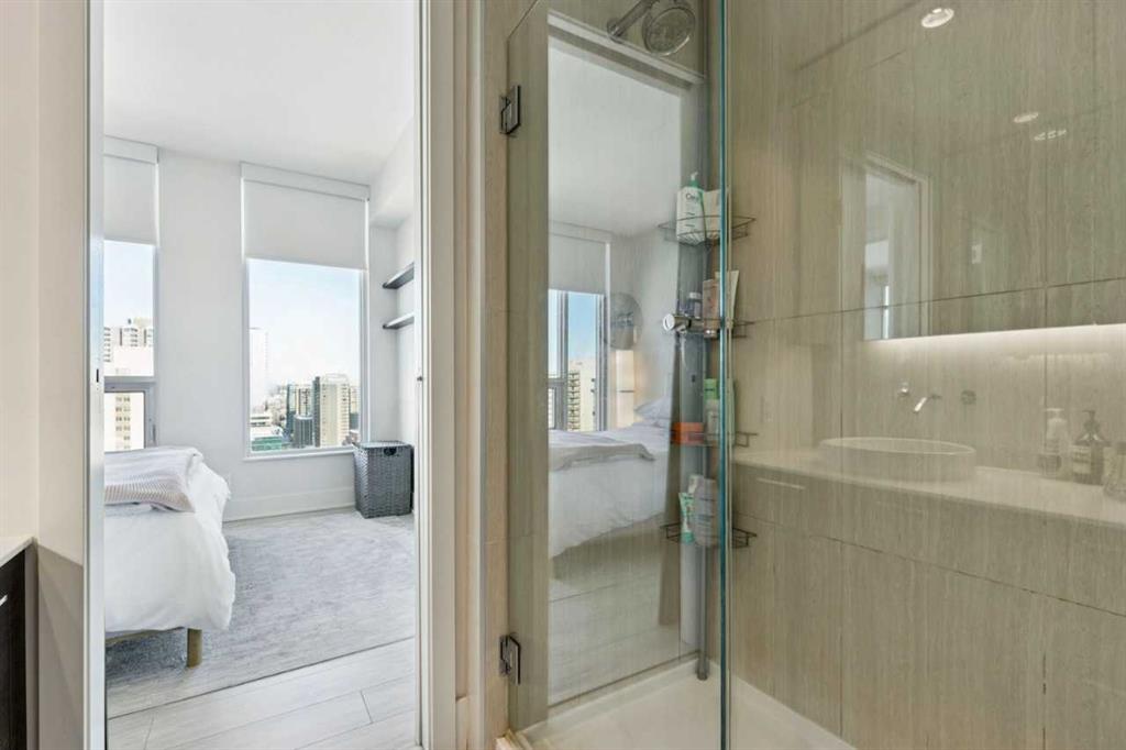 Enjoy luxury amenities including full-time concierge, secure parcel lockers, a stunning 34th-floor rooftop with two-level lounge, hot tub, sauna, steam room and fitness centre, plus a garden terrace and guest suite on the 3rd floor. Includes a rare titled oversized parking stall (approx. 1.5 stalls) and storage locker. Steps to cafés, restaurants, groceries, LRT, 17th Ave and the Bow River pathways.