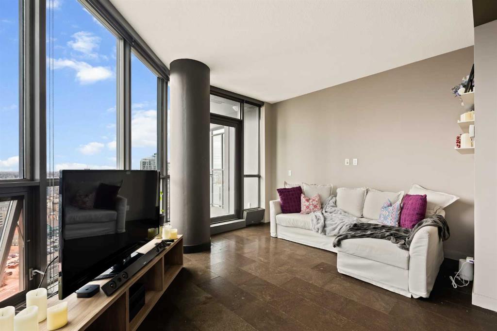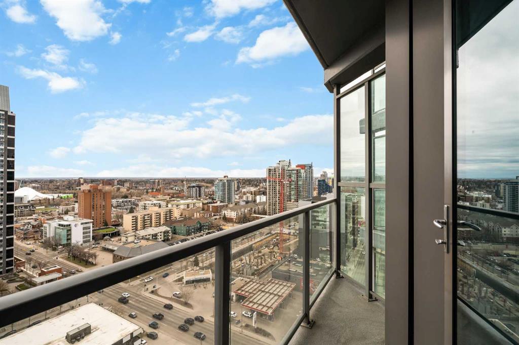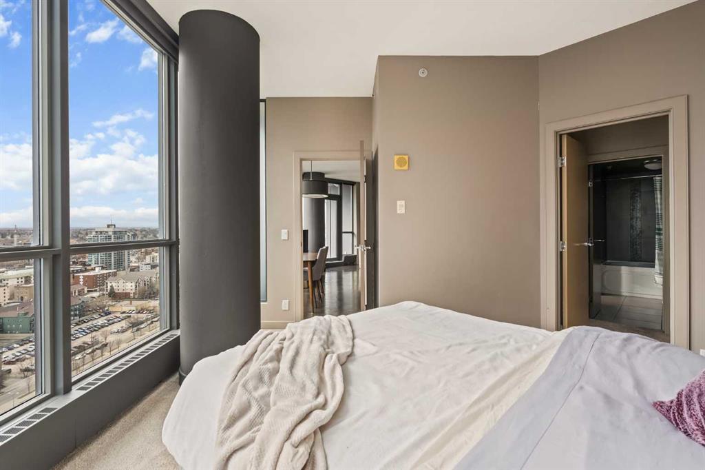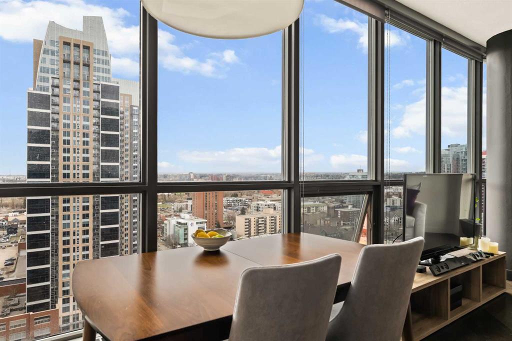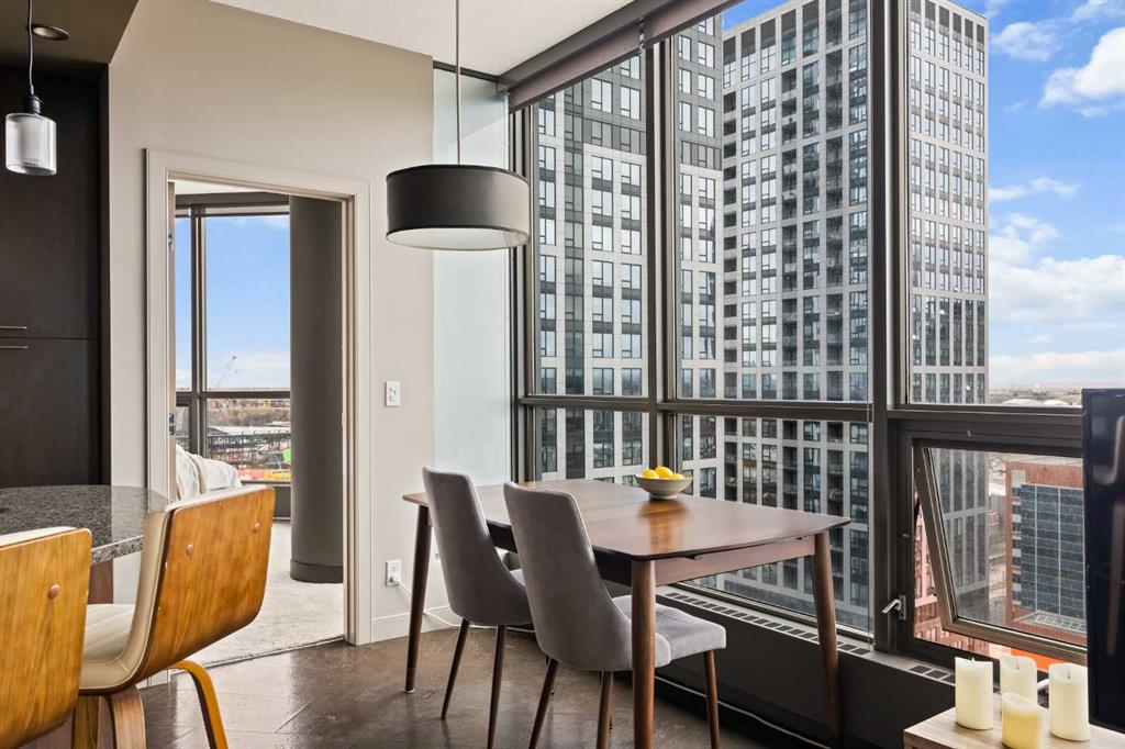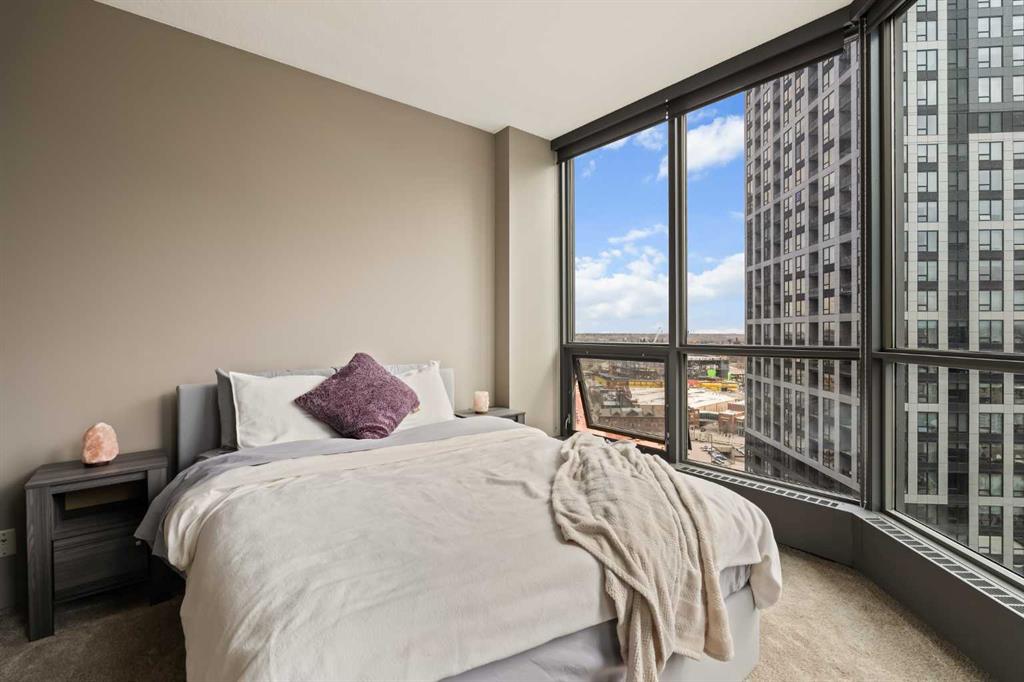 Welcome to Unit 2008, located in the highly sought-after Keynote 1 building in the heart of Calgary’s vibrant Beltline. Perched on the 20th floor, this beautifully appointed 1-bedroom, 1-bathroom condo offers over 560 sq. ft. of thoughtfully designed living space, with stunning south-facing views over the Stampede Grounds and sweeping west-facing views toward the Rocky Mountains. Floor-to-ceiling windows fill the home with natural light throughout the day, creating a bright and inviting atmosphere. The open-concept layout seamlessly connects the kitchen, dining, and living areas, making the space ideal for both everyday living and entertaining. The timeless kitchen features a functional layout with granite countertops, stainless steel appliances, ample cabinetry, and a convenient island with seating. The living area is framed by expansive windows and provides direct access to a private balcony, perfect for enjoying your morning coffee, evening sunsets, or taking in the energy of the city below. The primary bedroom offers a comfortable retreat with space for a king-sized bed. Its unique layout allows for natural light while maximizing the views. The bedroom connects to a walk-through closet and a well-appointed 4-piece bathroom, which is also accessible from the main living area for added convenience. In-suite laundry (new in December 2025) and additional storage complete the interior. Residents of Keynote 1 enjoy access to exceptional amenities, including a fully equipped fitness centre, guest suites, owner’s lounge, and outdoor courtyard space. The building also offers the convenience of secure underground titled parking and direct access to Sunterra Market, making day-to-day living effortless. Situated just steps from downtown offices, restaurants, cafes, transit, the Stampede Grounds, and the river pathway system, this location offers the perfect balance of urban convenience and lifestyle. Combining elevated views, modern finishes, and an unbeatable location, this is downtown living at its finest.