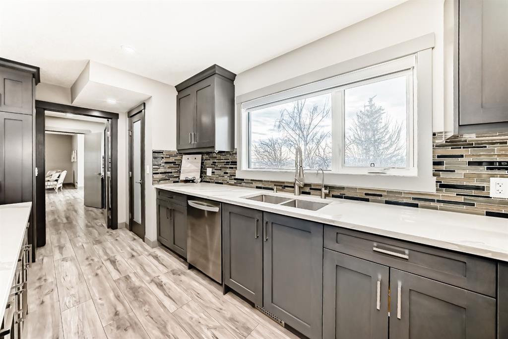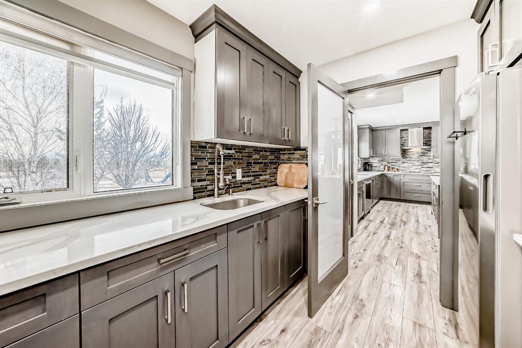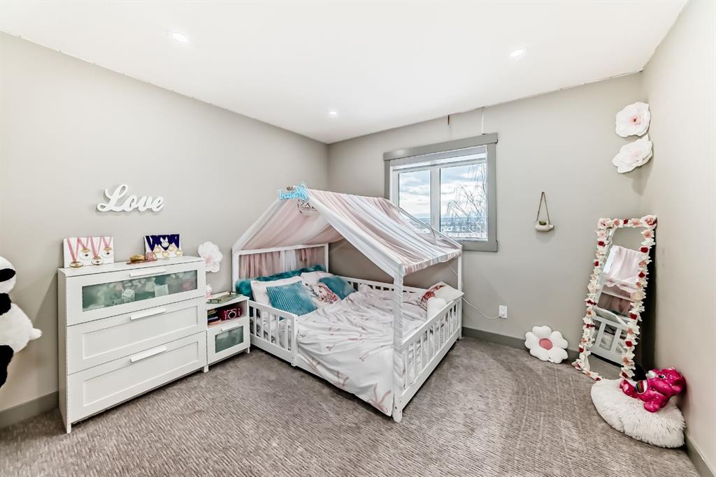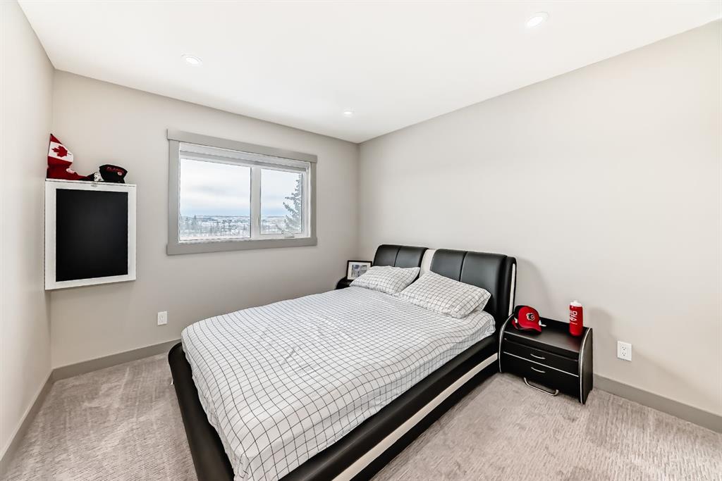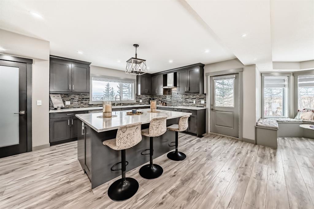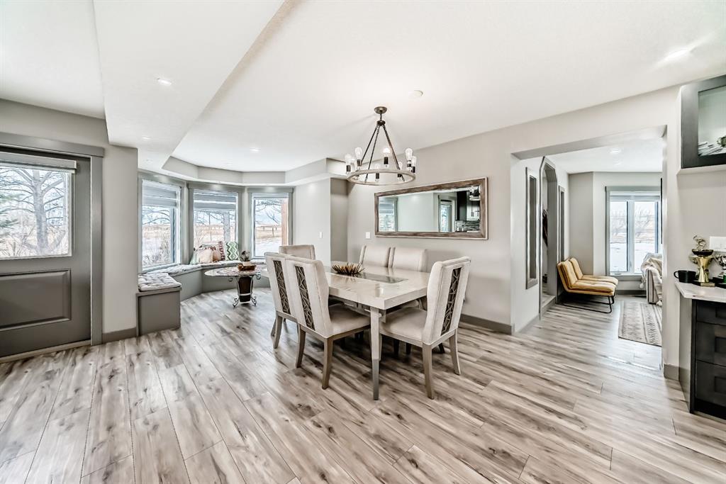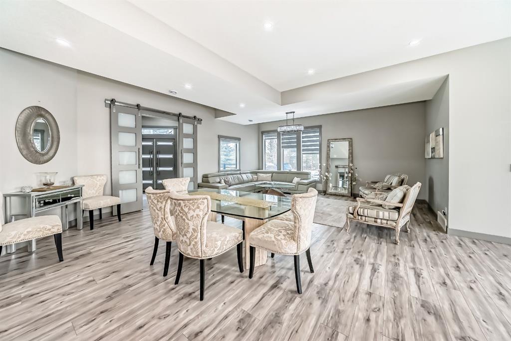 Set on 4 acres of lush, tree-lined land, this extraordinary estate offers privacy, presence, and prestige—just minutes from Calgary. Boasting over 5,500 sq. ft. of beautifully designed living space, this home underwent a major permitted expansion and renovation in 2021, resulting in a residence that feels both grand and entirely modern. Extensive upgrades include a brand-new septic system, Lux windows and doors, updated electrical, plumbing, heating, insulation, drywall, ceilings, lighting, and concrete sidewalks and patios surrounding the home. Additional features include a Culligan water softener and filtration system, three new furnaces, a new hot water tank, and new appliances—all still under warranty. A commercial-grade gas range with electric oven, plus two outdoor gas hookups for BBQs, further elevate the home’s functionality. Simply put, the upgrades are too numerous to list—this property must be experienced in person. The striking front entrance makes an immediate impression and opens to a thoughtfully designed main level. Here you’ll find a spacious den, a sunken living room, two generous dining areas, and an expansive chef’s kitchen complete with a large island, built-in bench seating, and a fully equipped spice kitchen. A cozy family room, two powder rooms, and a practical back entry with garage access and built-in coat and shoe storage complete the main floor. A stunning curved staircase leads upstairs to five bedrooms and four bathrooms. The upper level features two luxurious primary suites—one with double doors, a private sitting area, a 5-piece ensuite with jetted tub, and walk-in closet; the other with a 4-piece ensuite and walk-in closet. Three additional bedrooms include two with attached bathrooms and one serviced by a separate full bath. Two loft spaces add versatility: a large loft with fireplace and balcony overlooking the front yard, and a smaller loft ideal for a home office or study area. The upper floor also includes a convenient laundry room with ample storage, plus a small den perfect for a prayer room, playroom, or quiet retreat. The fully developed basement (illegal suite) has its own separate entrance and offers two bedrooms, a full bathroom, a living area, and a kitchen with an induction cooktop—ideal for extended family or guests. Positioned to capture sunlight throughout the day, the home is filled with natural light thanks to oversized windows throughout. Multiple driveways and a heated four-car garage provide exceptional convenience.