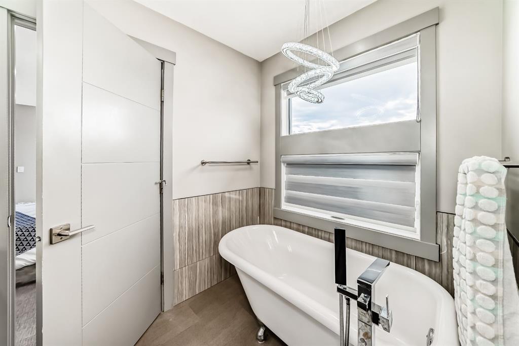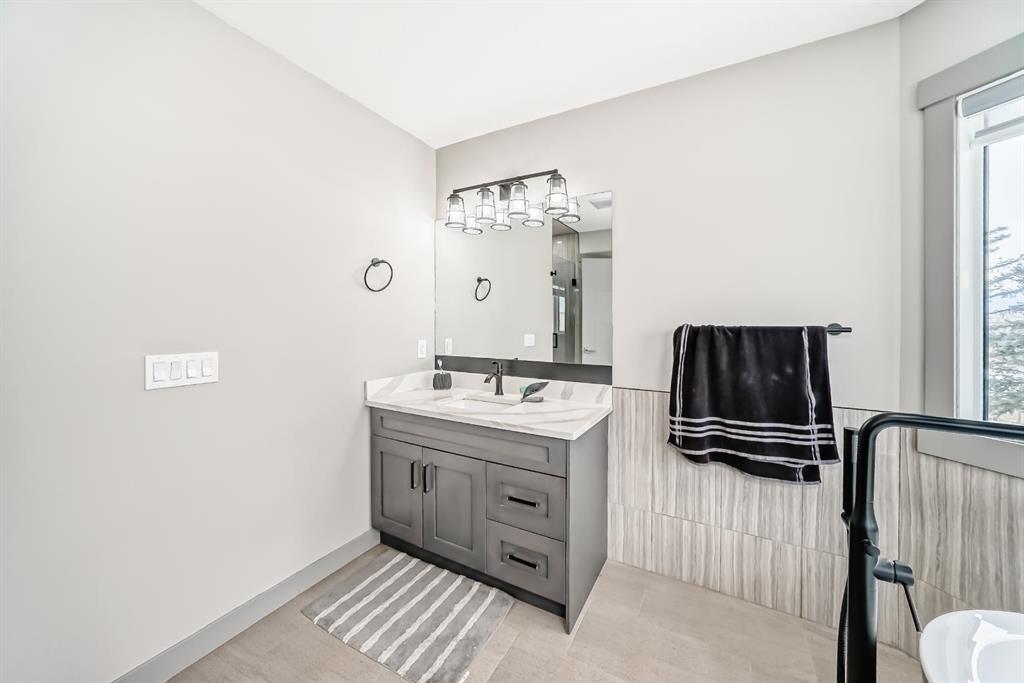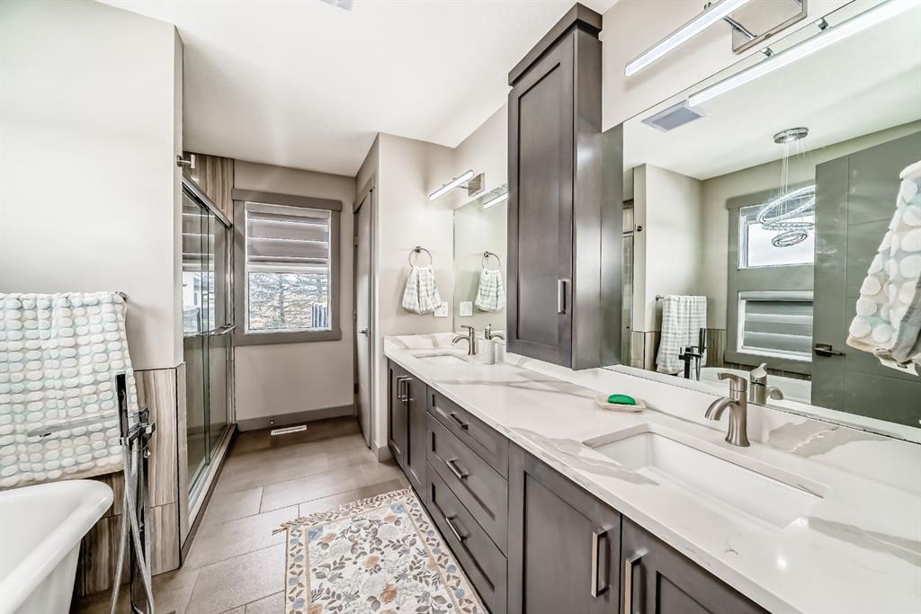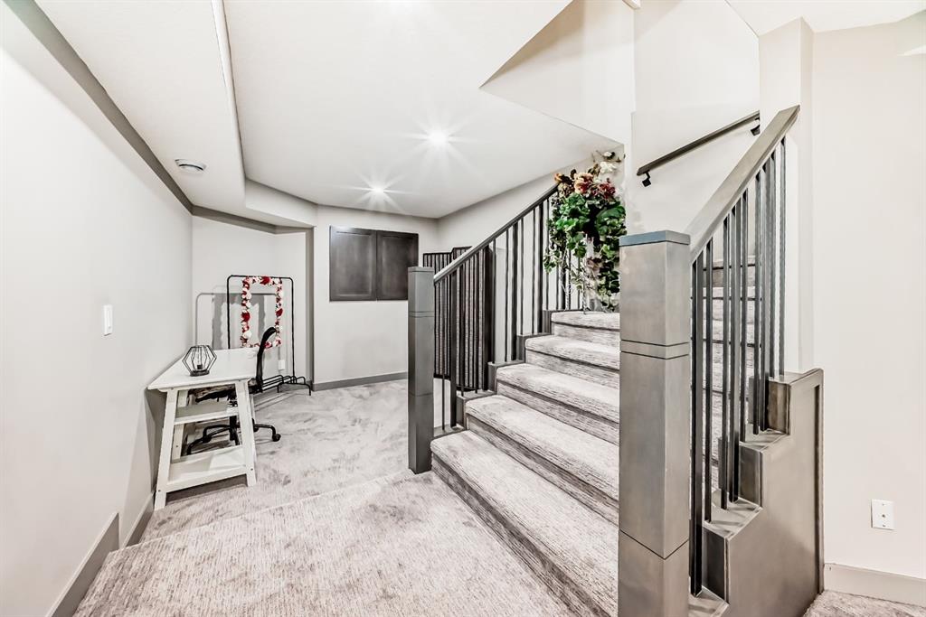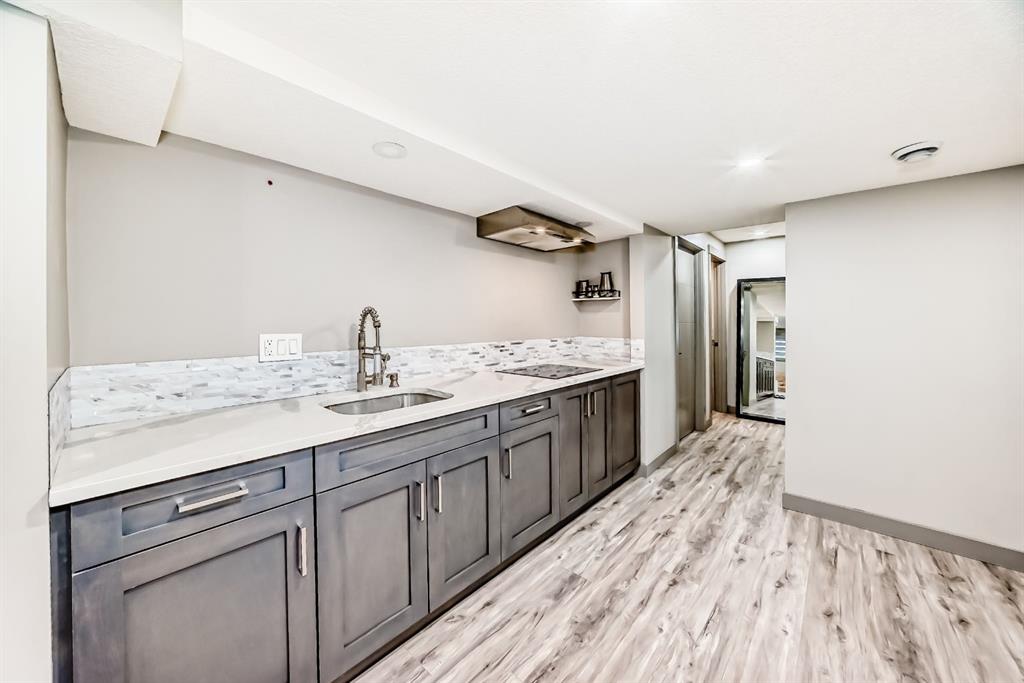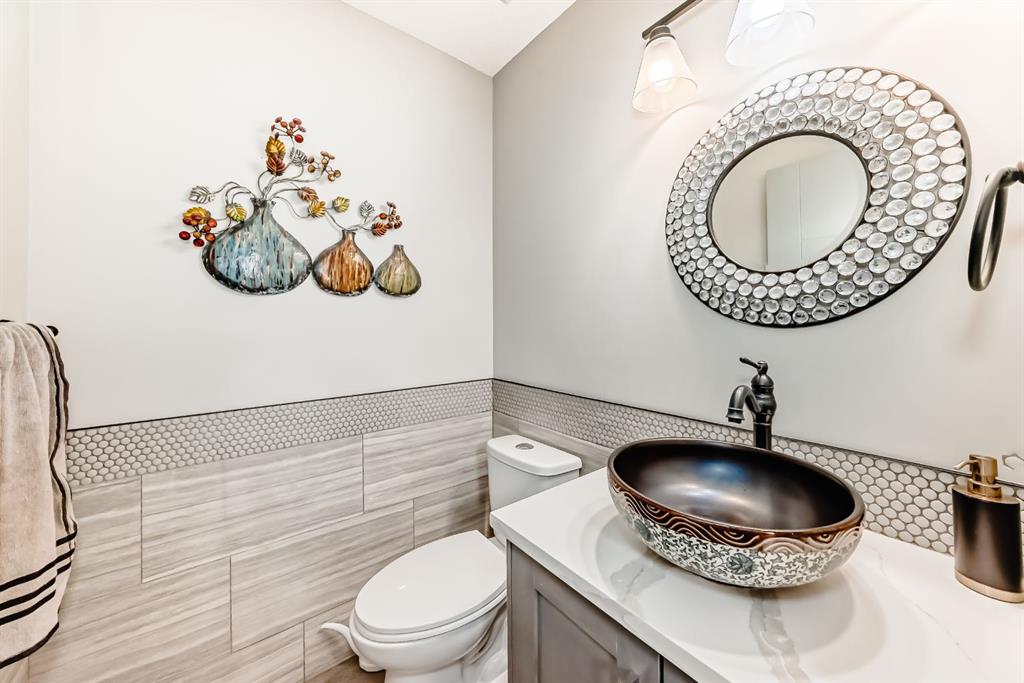 Set on 4 acres of lush, tree-lined land, this extraordinary estate offers privacy, presence, and prestige—just minutes from Calgary. Boasting over 5,500 sq. ft. of beautifully designed living space, this home underwent a major permitted expansion and renovation in 2021, resulting in a residence that feels both grand and entirely modern. Extensive upgrades include a brand-new septic system, Lux windows and doors, updated electrical, plumbing, heating, insulation, drywall, ceilings, lighting, and concrete sidewalks and patios surrounding the home. Additional features include a Culligan water softener and filtration system, three new furnaces, a new hot water tank, and new appliances—all still under warranty. A commercial-grade gas range with electric oven, plus two outdoor gas hookups for BBQs, further elevate the home’s functionality. Simply put, the upgrades are too numerous to list—this property must be experienced in person. The striking front entrance makes an immediate impression and opens to a thoughtfully designed main level. Here you’ll find a spacious den, a sunken living room, two generous dining areas, and an expansive chef’s kitchen complete with a large island, built-in bench seating, and a fully equipped spice kitchen. A cozy family room, two powder rooms, and a practical back entry with garage access and built-in coat and shoe storage complete the main floor. A stunning curved staircase leads upstairs to five bedrooms and four bathrooms. The upper level features two luxurious primary suites—one with double doors, a private sitting area, a 5-piece ensuite with jetted tub, and walk-in closet; the other with a 4-piece ensuite and walk-in closet. Three additional bedrooms include two with attached bathrooms and one serviced by a separate full bath. Two loft spaces add versatility: a large loft with fireplace and balcony overlooking the front yard, and a smaller loft ideal for a home office or study area. The upper floor also includes a convenient laundry room with ample storage, plus a small den perfect for a prayer room, playroom, or quiet retreat. The fully developed basement (illegal suite) has its own separate entrance and offers two bedrooms, a full bathroom, a living area, and a kitchen with an induction cooktop—ideal for extended family or guests. Positioned to capture sunlight throughout the day, the home is filled with natural light thanks to oversized windows throughout. Multiple driveways and a heated four-car garage provide exceptional convenience.