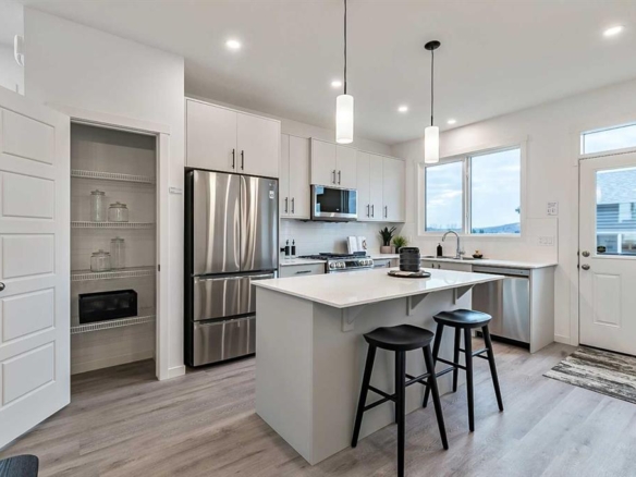 New Price Release — 10 Luxury Reflection Homes Just Completed, Ready for Immediate Occupancy! The Streams of Lake Mahogany offer an elevated single-level lifestyle in our stunning Reflection Estate homes, situated on the parkside of Mahogany Lake. Selected from the renowned Westman Village Community, you will discover THE CASCADE, a home crafted for the most discerning buyer, offering a curated space to enjoy and appreciate the hand-selected luxury of a resort-style feel while providing you with a maintenance-free opportunity to lock and leave. Step into an expansive 1700+ builders sq ft stunning home overlooking a gorgeous greenspace adjacent to Mahogany Lake featuring a thoughtfully designed open floor plan inviting an abundance of natural daylight with soaring 10-foot ceilings and oversized windows. The centralized living area, ideal for entertaining, offers a Built-in ULTRA JennAir appliance package with a French Door Refrigerator and internal ice maker and water dispenser, a 36″ gas cooktop, a dishwasher with a stainless steel interior, and a 30-inch wall oven with microwave; all nicely complemented by an Elevated Luxe Noir Color Palette. All feature stunning Quartz countertops. You will enjoy two beautiful bedrooms and a generous central living area. The Primary Suite features a spacious 5-piece oasis-like ensuite with dual vanities, a large soaker tub, a stand-alone shower, and a generous walk-in closet. The Primary Suite and main living area step out to a 39ftx15ft terrace with a lovely view of the greenspace. Yours to enjoy and soak in every single day. To complete the package, you have a sizeable office area adjacent to the spacious laundry room and a double attached heated garage with a full-width driveway. Custom additions to this home include under-cabinet lighting, an upgraded Moen black plumbing fixture package, air conditioning, a convenient laundry room with a folding table, a stunning electric fireplace, and an expansive covered terrace with access from the Living Room, Dining Room, and owner’s suite. Upgraded built-in cabinet package with spice tray, utensil tray and recycling pull-out bins. Upgraded with a coffee bar. Jayman’s standard inclusions feature their trademark Core Performance, which includes Solar Panels, Built Green Canada Standard with an Energuide rating, UVC Ultraviolet light air purification system, high-efficiency heat pump for air conditioning, forced air fan coil hydronic heating system, active heat recovery ventilator, Navien-brand tankless hot water heater, triple pane windows and smart home technology solutions. Enjoy Calgary’s largest lake, with 21 more acres of beach area than any other community.