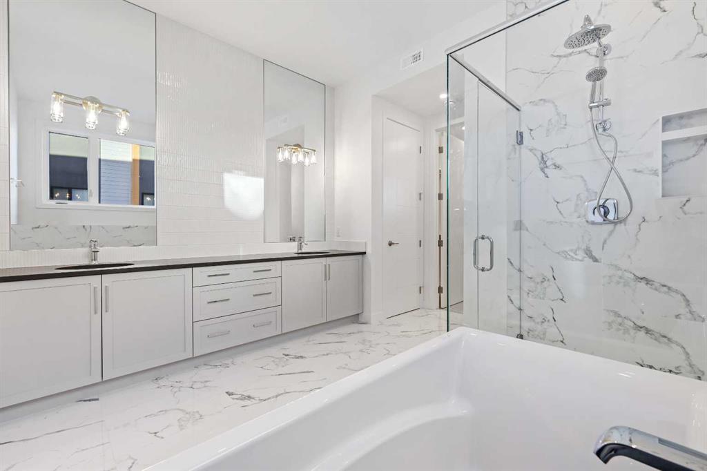 The Streams of Lake Mahogany present an elevated single-level lifestyle in our stunning Reflection Estate homes situated on the park Side on Mahogany Lake. Selected carefully from the best-selling, renowned Westman Village Community, you will discover THE CASCADE, a home crafted for the most discerning buyer, offering a curated space to enjoy and appreciate the hand-selected luxury of a resort-style lifestyle while providing a maintenance-free opportunity to lock and leave. Step into an expansive 1700+ builders sq ft stunning home overlooking a gorgeous greenspace adjacent to Mahogany Lake featuring a thoughtfully designed open floor plan inviting an abundance of natural daylight with soaring 10-foot ceilings and oversized windows. The centralized living area, ideal for entertaining, offers a Built-in KitchenAid sleek stainless steel package with French Door Refrigerator and internal ice maker and water dispenser, a 36″ gas cooktop, a dishwasher with a stainless steel interior, and a 30-inch wall oven with microwave; all nicely complemented by an Elevated DRIZZLE Color Palette. All feature stunning Quartz countertops. You will enjoy two beautiful bedrooms, a generous central living area, with the Primary Suite featuring a spacious 5-piece oasis-like ensuite with dual vanities, a large soaker tub, a stand-alone shower, and a generous walk-in closet. The Primary Suite and main living area step out to a 39 ft x 15 ft terrace with a lovely view of the greenspace. Yours to enjoy and soak in every single day. To complete the package, you have a sizeable office area adjacent to the spacious laundry room, and a double-attached heated garage with a full-width driveway. Custom additions to this home include under-cabinet lighting, an upgraded Moen plumbing fixture package, air conditioning, a convenient laundry room with a folding table, a stunning electric fireplace, and an expansive covered terrace with access from the Living Room, Dining Room, and owner’s suite. Jayman’s standard inclusions feature their trademark Core Performance, which includes Solar Panels, Built Green Canada Standard with an Energuide rating, UVC Ultraviolet light air purification system, high-efficiency heat pump for air conditioning, forced air fan coil hydronic heating system, active heat recovery ventilator, Navien-brand tankless hot water heater, triple pane windows and smart home technology solutions. Enjoy Calgary’s largest lake, with 21 more acres of beach area than any other community.