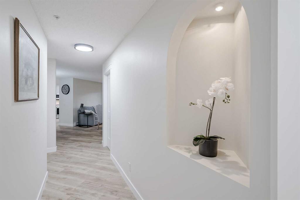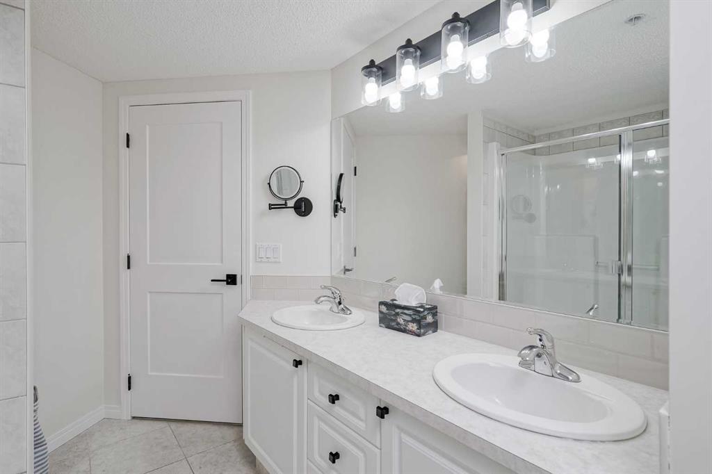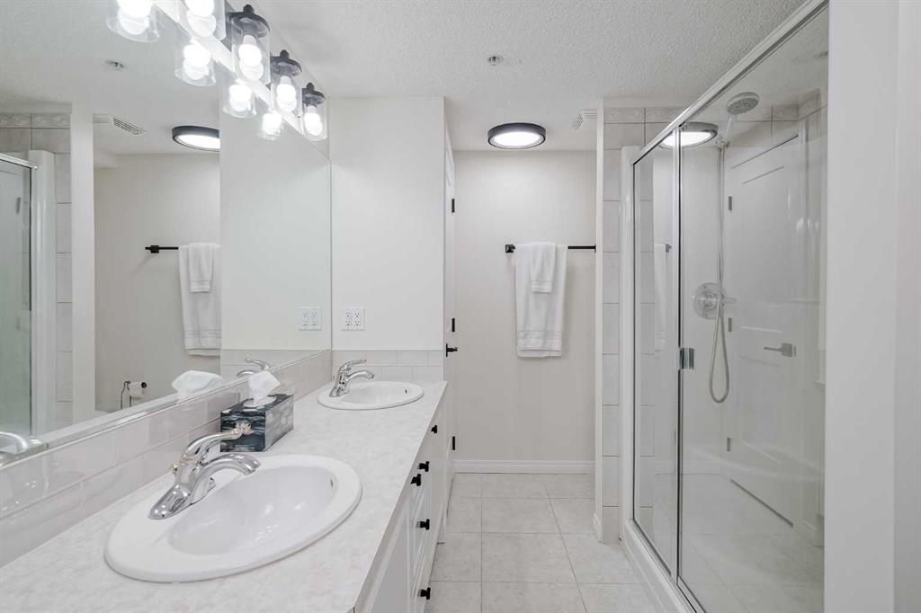 Recently upgraded with brand-new doors, trim, flooring, and lighting, this home exudes modern elegance. The large gourmet kitchen and full-sized dining area are perfect for entertaining guests, while the cozy living room with a gas fireplace provides a warm and inviting retreat after a long day. The spacious primary bedroom offers a king-sized layout, a generous walk-in closet, and an ensuite with double sinks—combining comfort and luxury. The second bedroom also boasts ample closet space and a cheater door to the second bathroom. Convenience is unmatched with a full-sized washer and dryer, additional storage in the laundry room, and a separate storage room in the parkade. Two parking stalls—one titled and one rented—add to the practicality of this exceptional property.