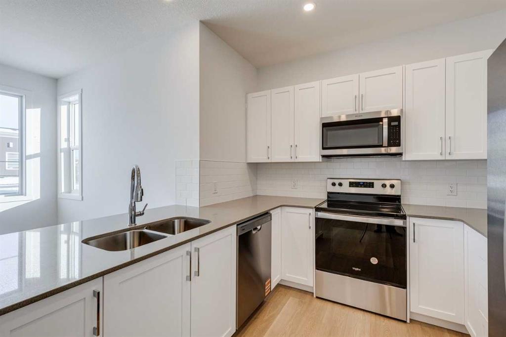 BRAND NEW! 2 bedroom and 2 1/2 bath with front attached garage. This home offers quartz countertops, laminate flooring, and an open floor plan. Situated just a short stroll from East Hills Shopping Centre, residents can indulge in the fresh air while accessing everyday essentials like Costco, Walmart, banks, and more, all within walking distance. Imagine being just steps to Bus Rapid Transit (BRT), Stoney Trail (Calgary’s ring road/perimeter highway), and a short drive to Chestermere Lake for outdoor activities, Downtown Calgary, the Calgary International Airport, the South Health Campus, Kananaskis, and Banff.