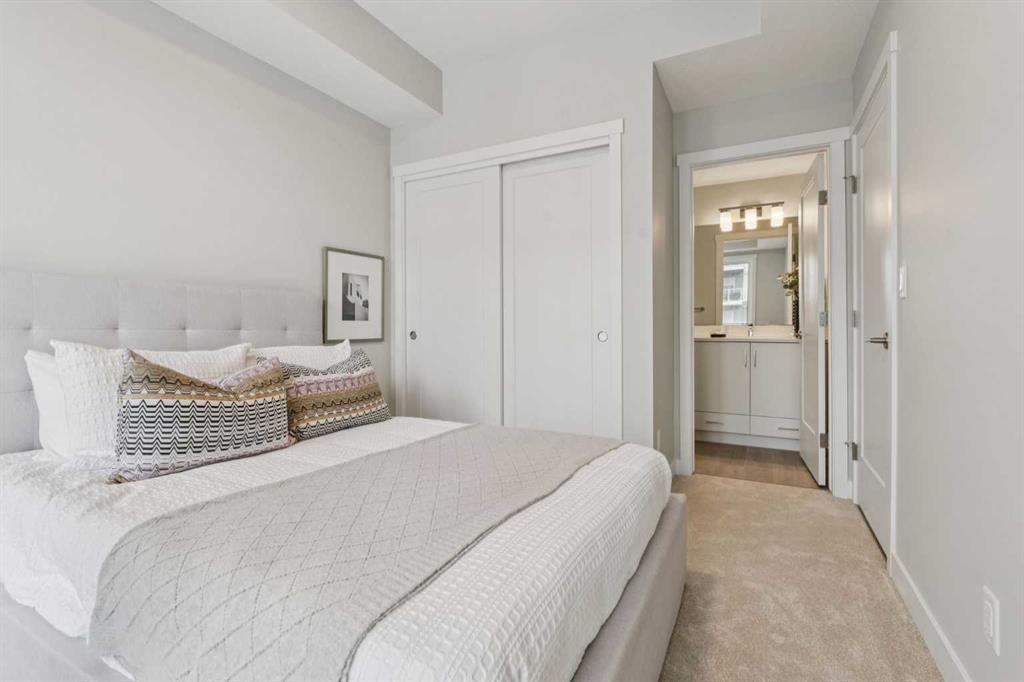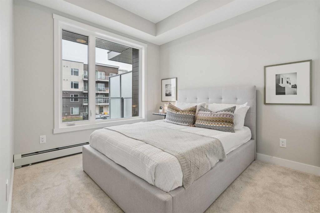 Welcome to this beautifully designed brand-new, never-lived-in 2-bedroom condo, offering modern comfort, stylish upgrades, and immediate possession. Inside, the open-concept layout features luxury vinyl plank flooring through main living space and carpet in the bedrooms, and a contemporary kitchen complete with quartz countertops, stainless steel appliances, and a central island with breakfast bar seating—perfect for everyday living and entertaining. The spacious living area is filled with natural light and flows seamlessly to the balcony, creating the perfect place to relax and take in the views. The primary bedroom features elegant tray ceilings and beautiful outlooks, while the second bedroom offers flexible space for guests, a home office, or additional living needs. A well-appointed full bathroom with quartz counters and a tub/shower combination, along with convenient in-suite laundry, adds to the home’s functionality. Additional highlights include titled underground parking and titled storage, visitor parking, and a pet-friendly building. Low monthly condo fees of $344.19 include heat, water, sewer, garbage and recycling, exterior maintenance, reserve fund contributions, snow removal, underground parkade maintenance, and professional management. Ideally located in Shawnee Slopes, residents enjoy easy access to Fish Creek Provincial Park, nearby LRT stations, Macleod Trail, and the shopping, dining, and everyday amenities of Shawnessy. Combining nature, convenience, and modern living, this home is an exceptional opportunity in one of Calgary’s most desirable communities.