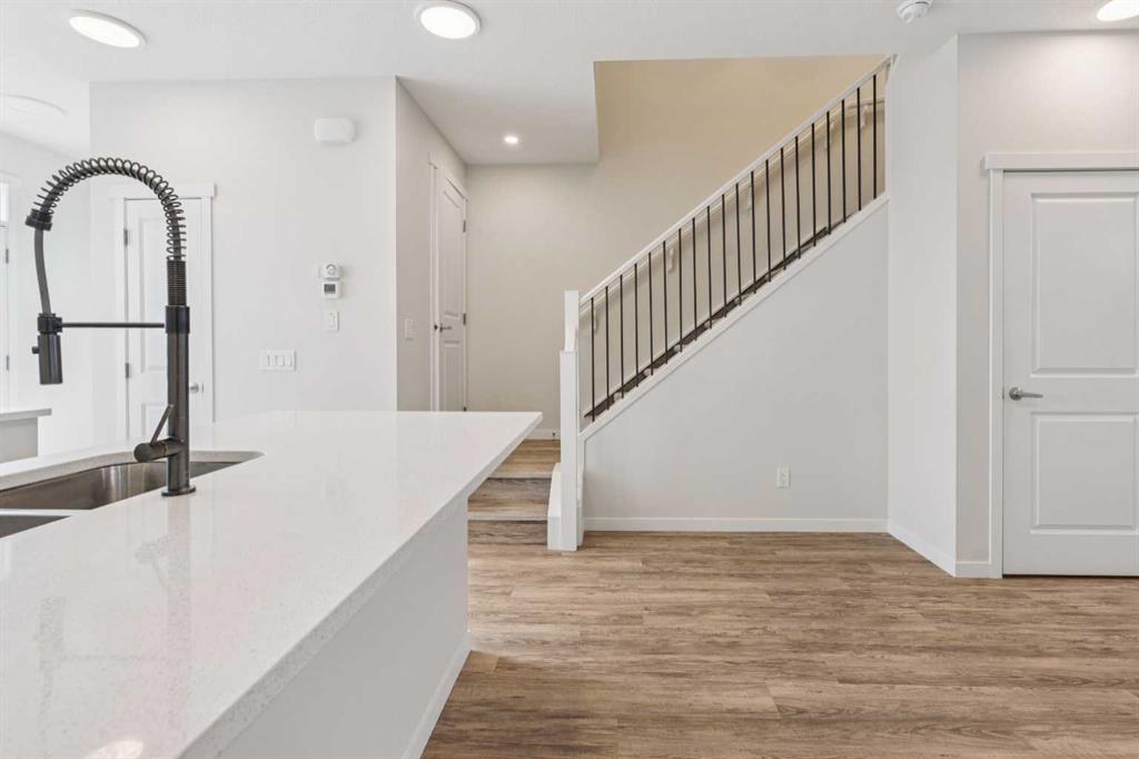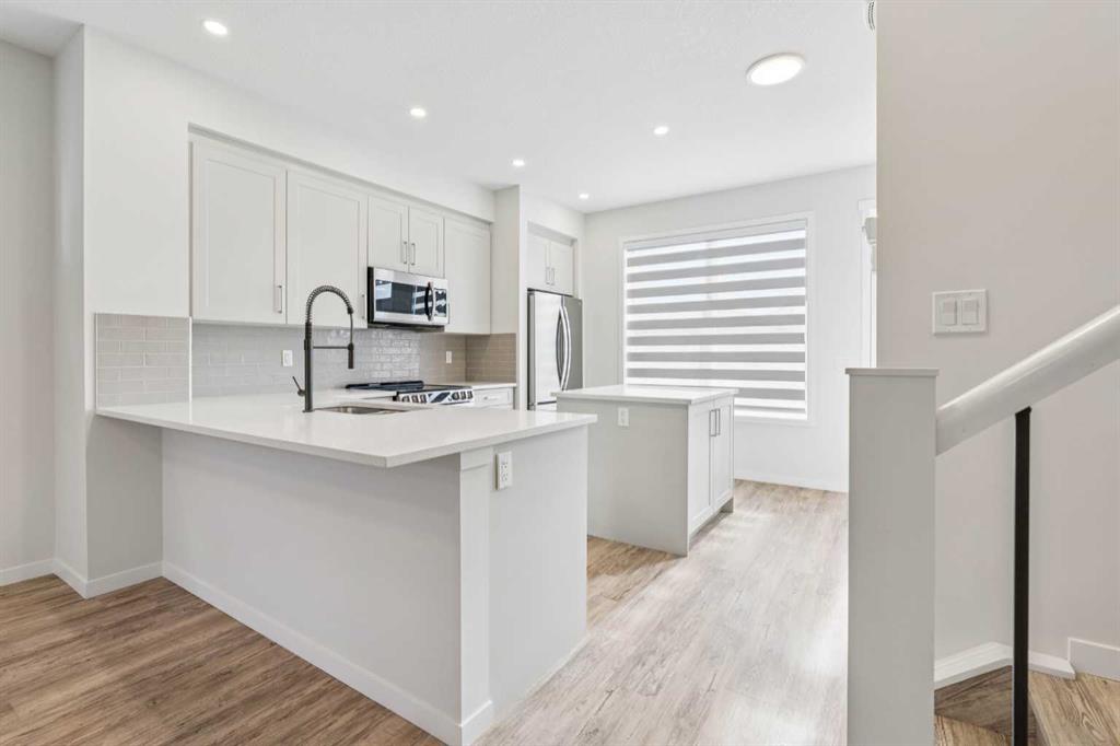 From the charming brick-accented exterior to the bright and airy interior, you’ll immediately feel at home. The main level features 9-ft ceilings, abundant natural light, and gleaming LVP flooring throughout. The open-concept layout includes a spacious living area, a dedicated dining space, and a stunning kitchen with an island and breakfast bar. Enjoy the upgraded kitchen with pot lights, quartz countertops, stainless steel appliances, sleek upgraded railings, and a pantry for extra storage.