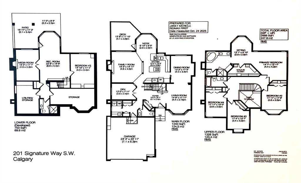 ** Check out the video** An extraordinary opportunity to own this custom-built home on a massive 9504 sq. ft. lot in sought after Signal Hill offering million-dollar panoramic views of downtown Calgary from all three levels! This executive home offers 3421 sq. ft. of developed living area on three levels including a bright walk-out level. Spacious two storey foyer. Formal living room with west bay window. Spacious dining room with cantilever and large east window offering stunning expansive views of downtown Calgary. Main floor Den provides the perfect home office. Well-designed kitchen is a chef’s dream featuring an abundance of oak cabinets, wall pantry and stainless-steel appliances, including double wall ovens. Timeless granite counters include a central prep island with ceramic top surface unit. Additional counter area provides the perfect coffee station. Bright and sunny breakfast nook with bay window that offers views of the expansive yard and panoramic views of downtown Calgary. French door opens to a raised deck making this easy for summer entertaining. Inviting family room with gas fireplace and city views is perfect for casual gatherings. Convenient foyer off the attached garage features a two-piece bathroom, storage closets and laundry room with sink and counters. Double door entry to the expansive primary retreat, features a spacious bedroom area with walk-in closet. Enjoy the night lights from your sitting area with bay window. Five-piece ensuite bathroom featuring double marble vanity, separate make-up vanity, corner jetted tub and large walk-in shower. Three additional large bedrooms and four-piece bathroom compliment the second floor making this the perfect family home. A well-designed lower walk-out level with family room and media room with gas fireplace. Bright fifth bedroom and three-piece bathroom with steam shower. Additional upgrades include two furnaces and hot water tanks (2020). Two central A/C units, central vac. and water softener. An abundance of lower storage. Oversized double attached garage. An exceptional 182’ deep private lot with mature trees and landscaping. Located minutes from two LRT Stations plus schools, shopping, parks and pathways. Enjoy the outdoors at Griffith Woods Park and with the convenience of the ring road, you can be in Kananaskis Country in less than an hour!