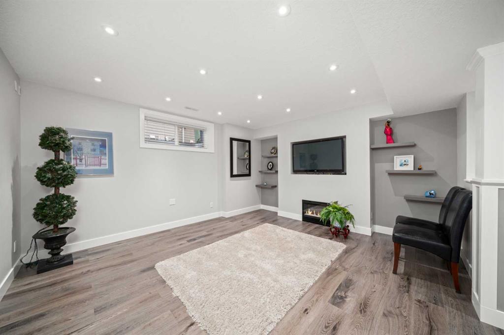 The fully finished basement adds even more living space, featuring a wet bar with modern cabinetry and stainless steel fridge, a family room with a fireplace and custom built-ins, plus an office/den/craft room. The spacious fourth bedroom includes a walk-in closet and access to a 3-piece bath with an oversized tiled shower.