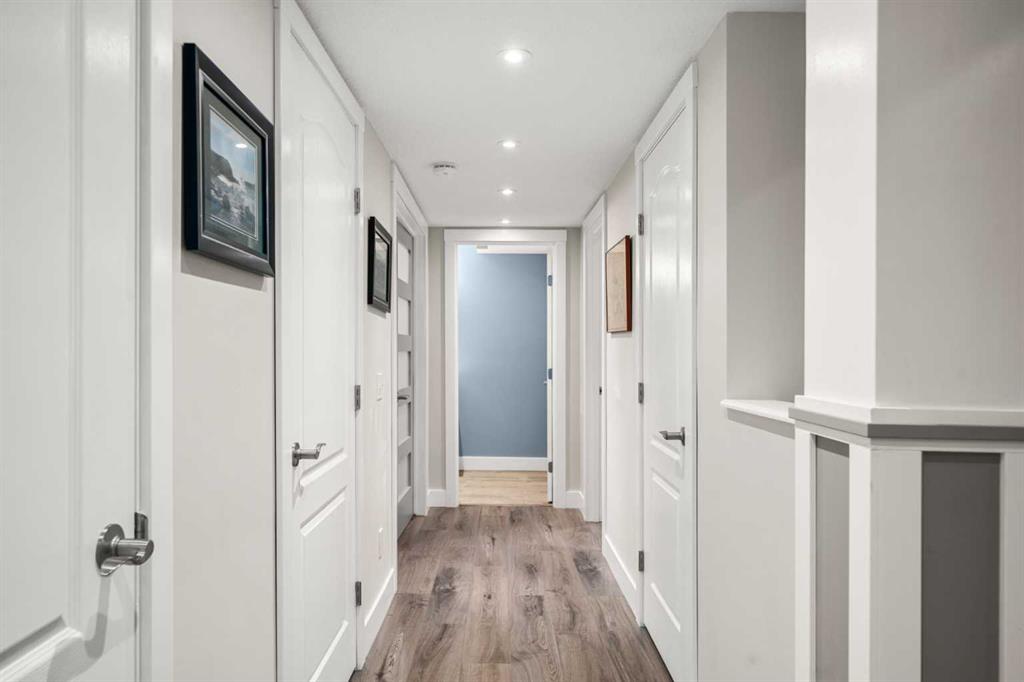Upstairs, you’ll find a massive bonus room with vaulted ceilings and stylish LVP flooring—great for family movie nights or a play area. The primary suite is a true retreat with stunning mountain views, a walk-in closet, and a luxurious renovated ensuite featuring heated tile floors, a tiled walk-in shower, dual-sink quartz vanity, and built-in storage. Two additional generous bedrooms and a 4-piece family bath complete the upper floor.