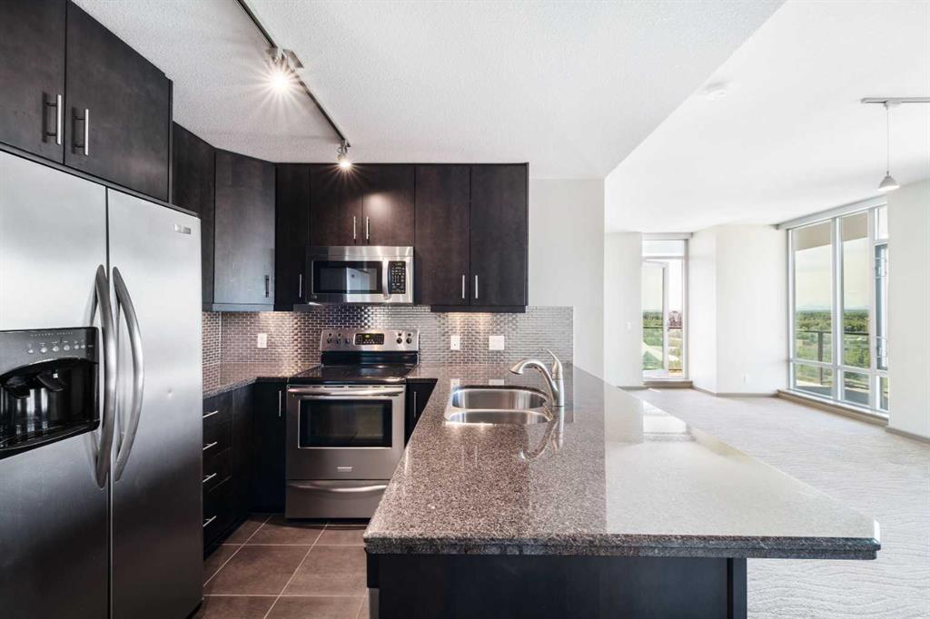 You want it all, and you want it now! What a fantastic unit to come to the market in one of the hottest buildings in the city. Unmatched views, perfectly situated, a plethora of amenities – this listing has all you could ever dream of and more. 2 bathrooms, 2 bedrooms, an enormous dining and living area with floor to ceiling windows to let in natural light and a magnificently large balcony. The summer sunsets looking at the mountains as you sit above the noise of the vibrant city below. High ceilings, rich, warm cabinet colours, stainless steel appliances, double sink, wrap around balcony…just so much to offer! Exercise room, rec room, sauna and a Shoppers downstairs right outside the front door. Moments from C-Train, Stampede Park, the Core, convenient to get to Macleod or not far from Memorial or Crowchild. This truly is an exceptional unit in an amazing building. Come have a look.