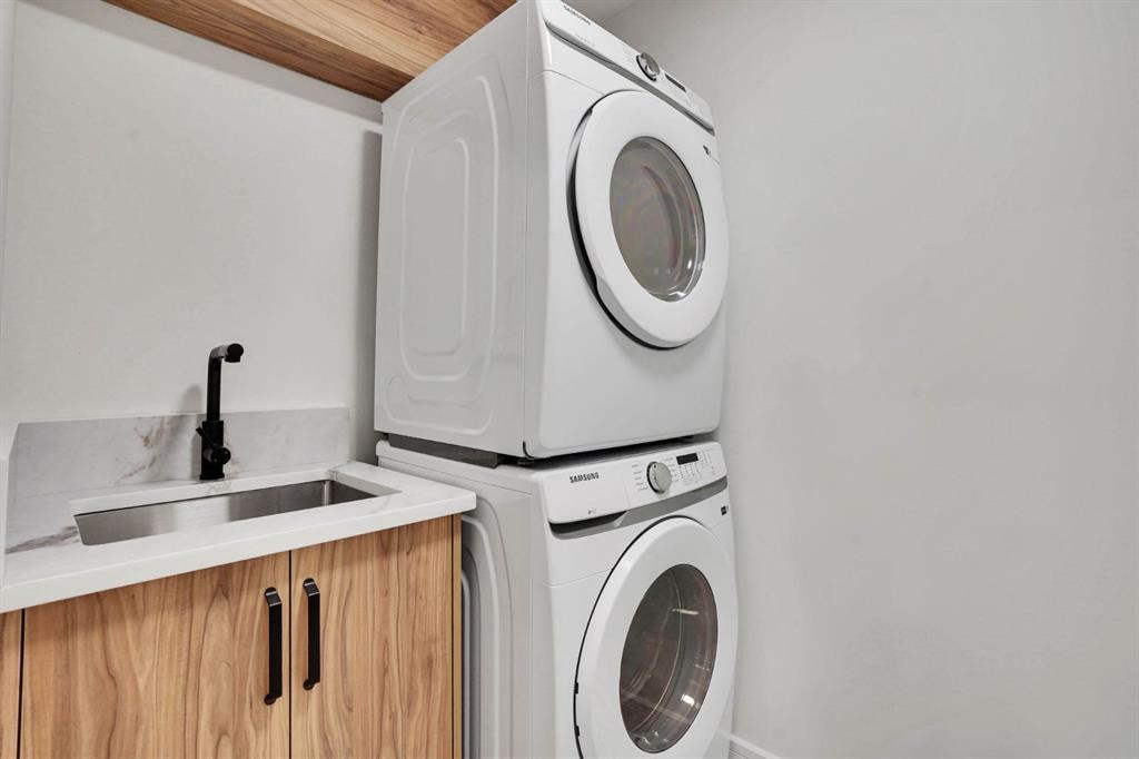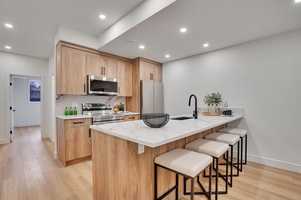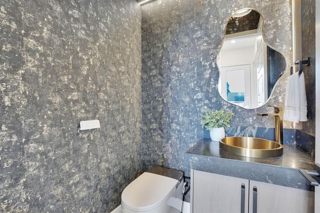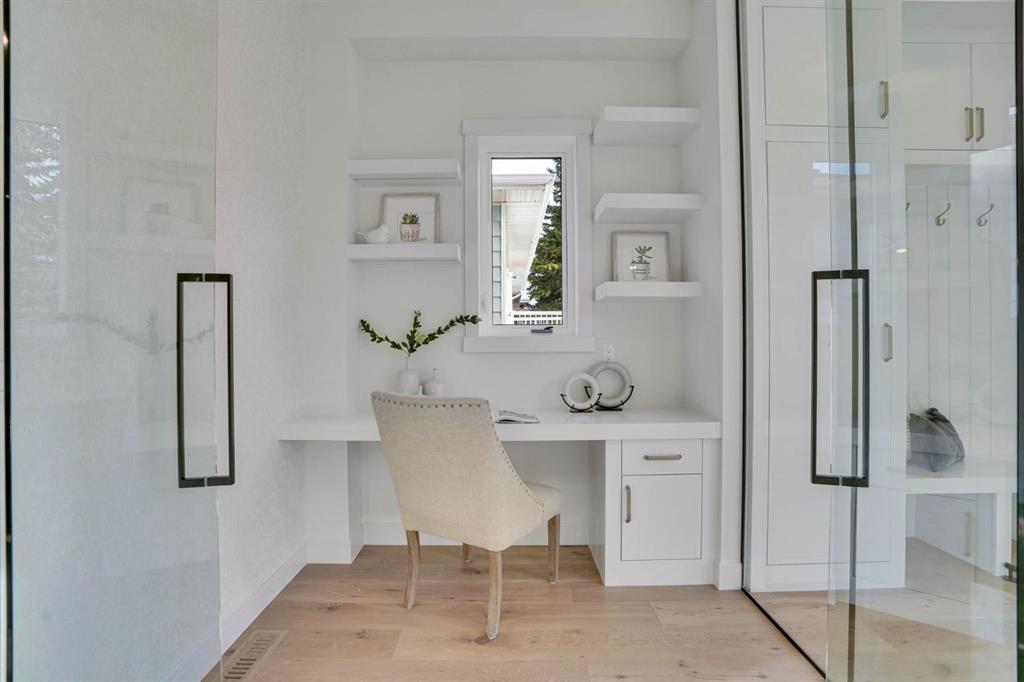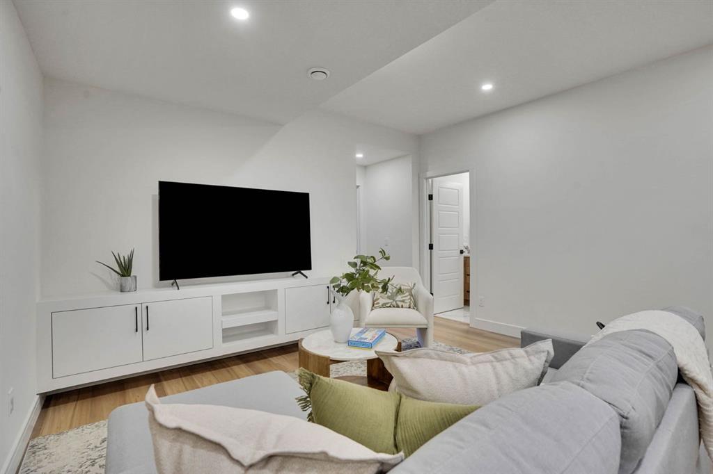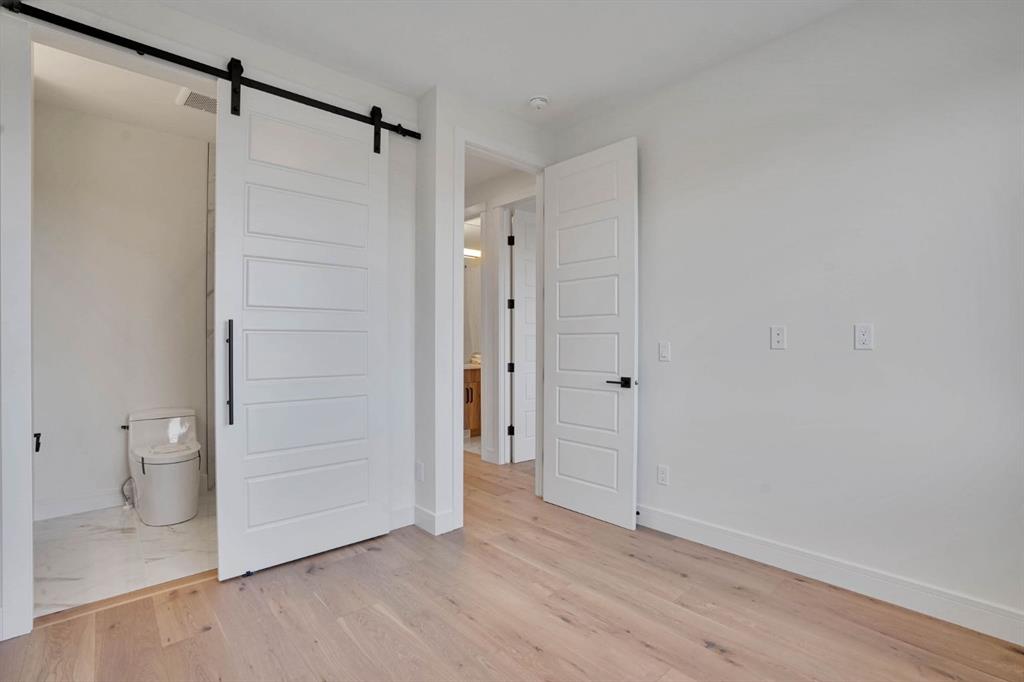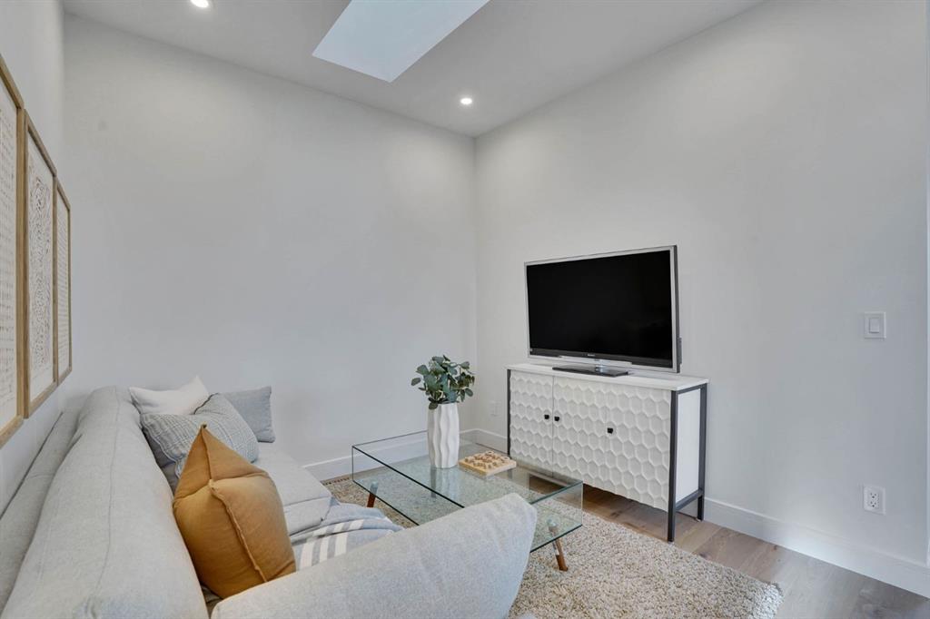 Elegantly crafted and custom-built by Multi Award-Winning Builder Edge Luxury Homes, This exceptional infill residence seamlessly blends elevated design with everyday comfort. Fully finished, professionally landscaped, fenced, and truly move-in ready, this home impresses from the moment you arrive. Step inside to soaring 10-foot ceilings, expansive floor-to-ceiling windows, rich hardwood flooring, and a thoughtfully designed layout that perfectly balances style and functionality. A dedicated main-floor office or den provides an ideal space for remote work or quiet study. The open-concept living area is designed for both relaxation and entertaining. At the heart of the home is a chef-inspired kitchen featuring white oak custom cabinetry, sleek quartz countertops, a stunning waterfall island, premium stainless steel appliances, and elegant glass-front feature cabinets. The adjoining dining area, complemented by a butler’s pantry, is perfectly suited for hosting memorable gatherings. The spacious living room is anchored by full-height rear glass doors, flooding the space with natural light and creating a seamless indoor-outdoor connection. Upstairs, the vaulted primary suite offers a luxurious retreat, complete with a large walk-in closet and a spa-inspired ensuite featuring dual vanities, a freestanding soaker tub, an oversized walk-in shower with steamer rough-in, and heated tile floors. All upper bedrooms feature their own private ensuite bathrooms, offering unmatched comfort and privacy. A cozy bonus room with a skylight is perfect for movie nights, while a convenient laundry room with built-in cabinetry and a sink adds everyday ease.