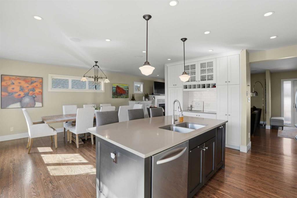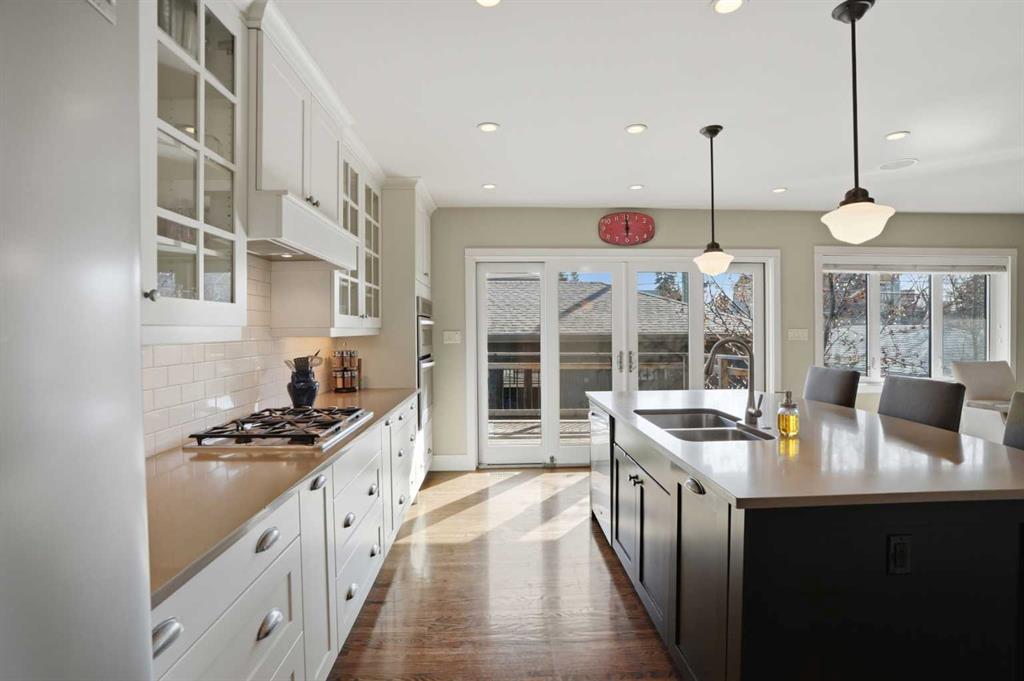 WOW! This one-of-a-kind raised bungalow is ideally situated on a quiet cul-de-sac in desirable Richmond, inner-city Calgary, on a generous 50 x 110 ft lot with south-facing backyard and quadruple heated garage! Offering over 2,400 sq. ft. of fully developed living space, this luxurious home features 2 bedrooms, 2 bathrooms, and a stylish basement bachelor/studio (illegal) suite with separate entry! Extensively renovated down to the studs (2011–2014), this residence blends modern efficiency with upscale finishings, including: oversized Low-E argon vinyl windows and doors, concrete board siding (with R24 upgraded exterior wall insulation), high efficiency furnace, central air conditioning, instant water on demand system, 200AMP electrical service, 30-year shingles, R60 attic insulation, central vacuum system, natural gas fireplace, quartz countertops throughout, top-of-the-line stainless steel appliances, steam shower, refinished oak hardwood floors, an in-ceiling speaker system, dimmable lighting, Hunter Douglas window treatment package, and thoughtful custom storage solutions throughout! Outside, enjoy a private south-facing backyard with a two-tier cedar deck, two natural gas hookups, and an exposed aggregate patio with hot tub.