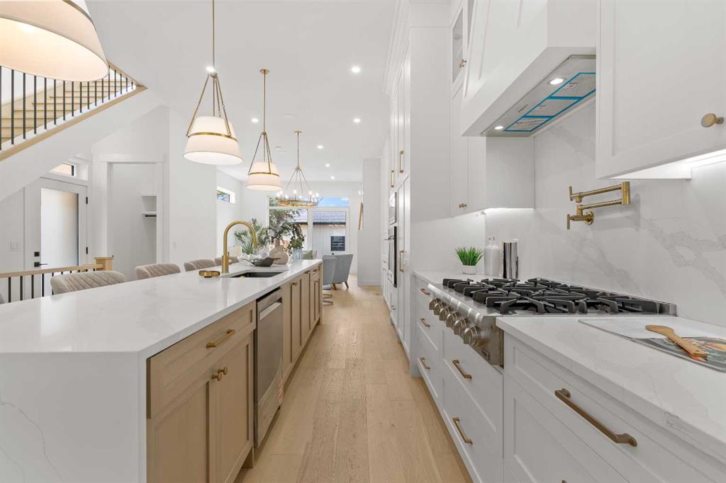 Welcome to one of West Hillhurst’s FINEST homes—an exquisite detached infill accented with a stately limestone exterior, in one of Calgary’s most desirable and vibrant inner-city neighbourhoods. Thoughtfully designed for both everyday living and upscale entertaining, this home combines luxury, comfort, and functionality in a truly exceptional package. As you step inside, you’re greeted by a spacious front entryway that offers a warm welcome and sets the tone for what’s to come. Just off to the right is a dedicated home office—perfect for remote work, creative projects, or a quiet retreat. The main floor unfolds into a stunning open-concept layout featuring a formal dining area, a chef-inspired kitchen with floor-to-ceiling high-end finishings, and a large living room anchored by a cozy fireplace. At the side entrance, a generous closet space helps keep things organized and clutter-free, making everyday life effortlessly stylish and functional. The south-facing backyard is bathed in natural light, providing the ideal setting for relaxing, entertaining, or enjoying sunny summer days. Upstairs, the primary suite is a true retreat, featuring a luxurious ensuite with a fully installed steam shower and a spacious walk-in closet. Two additional bedrooms on the upper level each offer private ensuites, giving family members or guests the ultimate in privacy and comfort. The fully finished lower level is designed for both entertainment and wellness; featuring a large media room perfect for movie nights or game days, a sleek wet bar, a private gym space, and a fourth bedroom with bathroom, that works beautifully as a guest room, secondary office, or flex space. Additional upgrades include a rough-in for A/C, a rough-in for a hydronic in-floor heating system in the basement, and a central vacuum rough-in. Ceiling speakers are installed on the main floor and in the basement, to set the mood in every space. With its unbeatable location, refined finishes, and thoughtful design, this home is the perfect blend of modern elegance and inner-city convenience. Don’t miss your chance to own this extraordinary West Hillhurst residence.