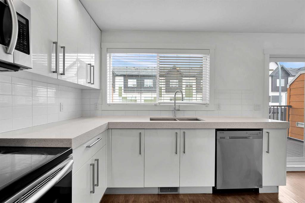 | 3-Bed | 2.5 Bath | LOADED WITH UPGRADES | Double ATTACHED GARAG!!!AC!!Great Condition** Location, location, location, welcome to this amazingly designed Double ATTACHED GARAG home at Bayside Airdire. The main level living room with heigh ceilings and the open layout welcomes you to Kitchen & dinning area with access to PRIVATE BALCONY for unobstructed space that invites natural light into the space throughout the day. The functional kitchen boasts a generous size, cabinets to ceiling, nice light color countertops, stainless steel appliances, and designer features. This level also has a 2PC bathroom. The upper level has a roomy master bedroom with 4PC En-suite. Two additional spacious bedrooms, and a well-appointed main bath, ensuring comfort and convenience. This unit comes with ATTACHED DOUBLE GARAGE including storage accommodate large vehicle. This Townhome is well managed with low condo fees and lots of visitor parking. Close to all amenities, shopping, transit friendly, easy access to shopping area. Don’t let this slip away, call to book a showing.