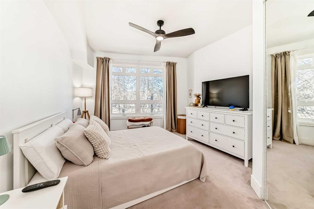 Welcome to Kensington Mews I, where refined urban living meets one of Calgary’s most dynamic and walkable communities. Ideally located on sought-after 14 Street NW, this beautifully maintained second-floor condo offers 909 sq ft with two bedrooms and one updated bathroom (2026). Floor-to-ceiling west-facing windows flood the open-concept kitchen, dining, and living space with natural light, Stainless Steel appliances, new dishwasher (2025) while the central island and cozy gas fireplace create a warm, inviting atmosphere. Step onto the sunny west-facing balcony with gas hookup to enjoy evening sunsets and effortless summer entertaining. The spacious and bright primary bedroom easily accommodates a king-sized bed, while the versatile second bedroom is ideal for a nursery, office, or creative studio. An oversized front storage room with pantry potential, full-sized washer (2024) and dryer, titled heated underground parking, and a separate assigned storage locker provide exceptional everyday convenience. Living in Kensington means embracing a truly connected lifestyle—morning coffee at one of the many independent cafés, grocery shopping just steps from your door (many with underground parking), and quick access to downtown whether you choose to walk, bike, or commute with ease. Spend summers floating down the Bow River, fishing along the nearby riverbanks, exploring the Bow River pathway system, or enjoying the neighbourhood’s vibrant festivals and seasonal events. Surrounded by boutique shopping, acclaimed restaurants, parks, and direct access to Memorial Drive, 14 Street NW, and the downtown core, this residence offers the perfect balance of private retreat and urban energy in one of Calgary’s most sought-after locations…