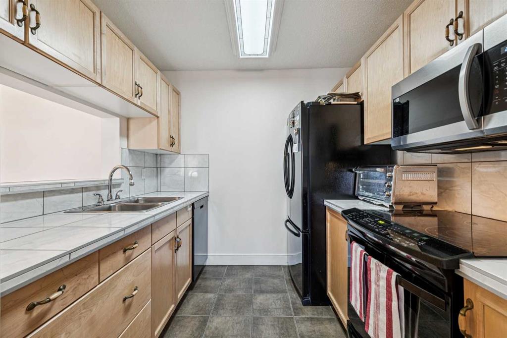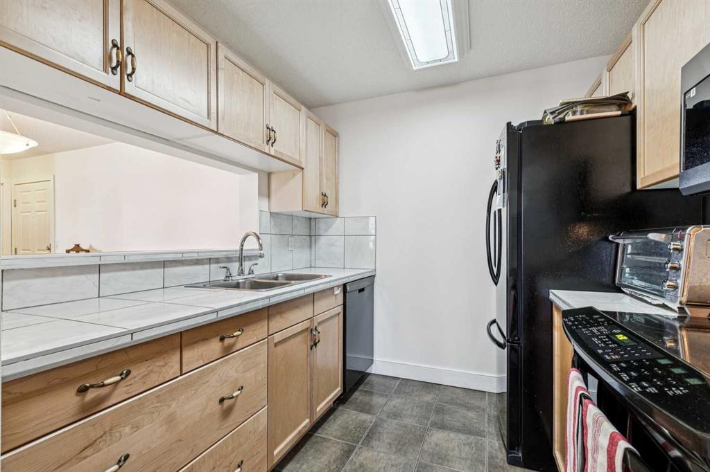Step inside to a welcoming foyer that opens into a bright, open-concept living and dining area with access to your covered balcony — perfect for relaxing or enjoying fresh air year-round. The functional galley-style kitchen features a convenient pass-through to the dining space, ideal for entertaining and everyday living.