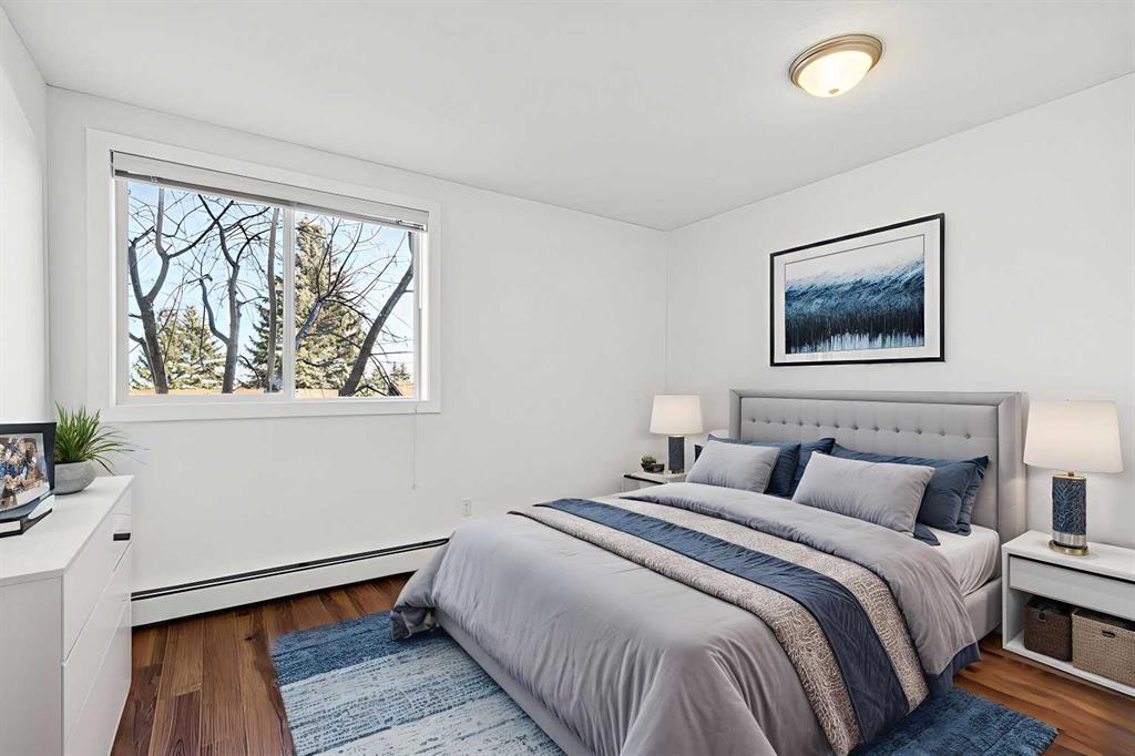 The primary bedroom enjoys a corner location with multiple windows that fill the space with natural light, along with a walk-through closet and private 4-piece ensuite. On the opposite side of the unit, you’ll find a well-sized second bedroom and another full 4-piece bathroom — an ideal layout for guests, roommates, or a home office.