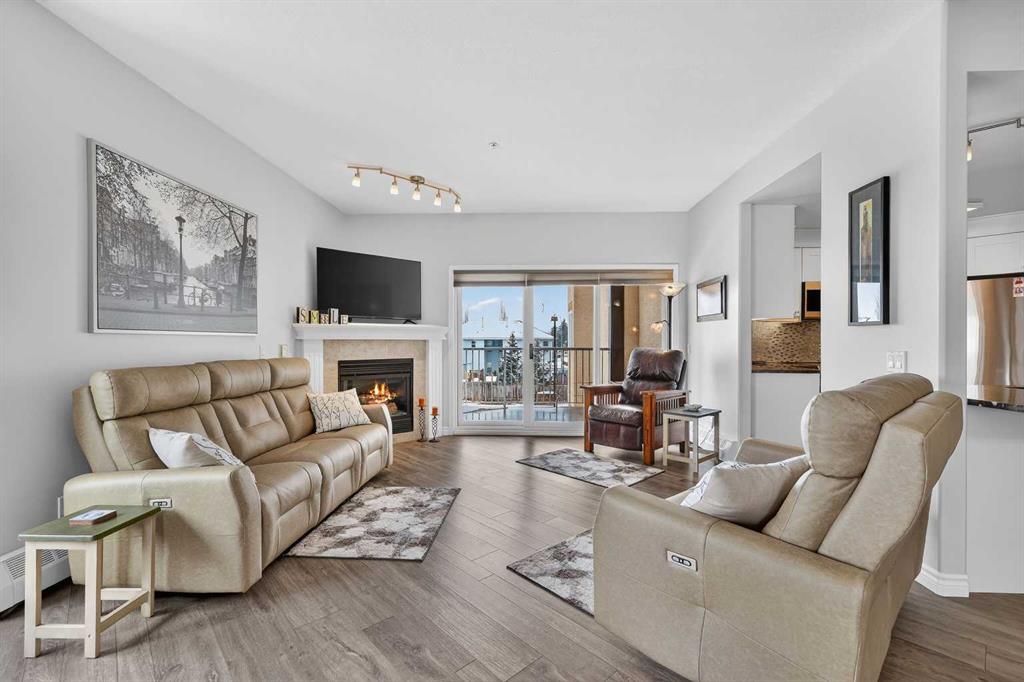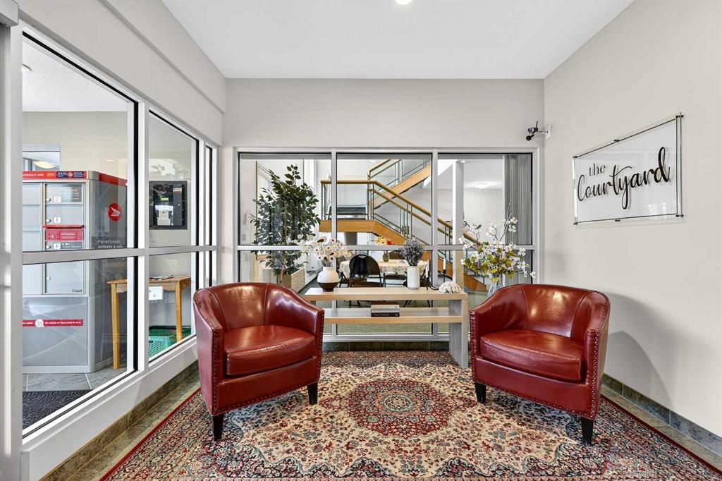 Welcome Home to The Courtyard — a Beautifully Renovated, Move-in Ready 55+ Adult Living Condo offering the perfect blend of comfort, style, and convenience. Situated on the second floor, this spacious unit features over 1,300 sq ft of thoughtfully designed living space, including 2 bedrooms, 2 full bathrooms, and a versatile den, all within a bright, open-concept layout. The sun filled interior showcases the elegant luxury vinyl plank flooring and a generous living room anchored by a cozy gas fireplace—ideal for both everyday living and entertaining. The kitchen is a true highlight, featuring stunning granite countertops, abundant cabinetry, a pull-out pantry, and custom soft-close drawers with built-in inserts, and ample space for a full dining area. The primary bedroom offers a private retreat, complete with a walk-in closet, a 4-piece ensuite, and a charming sunroom—perfect for a reading nook, hobby space, or home fitness area. Additional features include air conditioning, in-suite laundry, a separate den, and a private deck to relax and unwind. This unit also includes a heated underground parking stall and a storage locker. Residents enjoy access to excellent building amenities, including a recreation room and library.