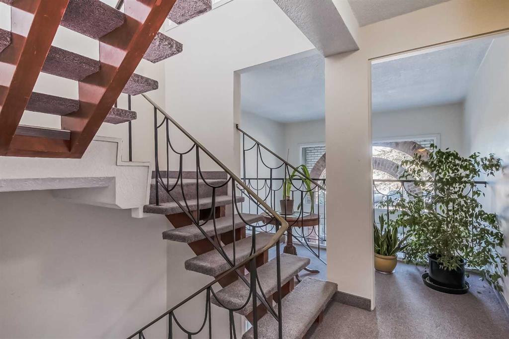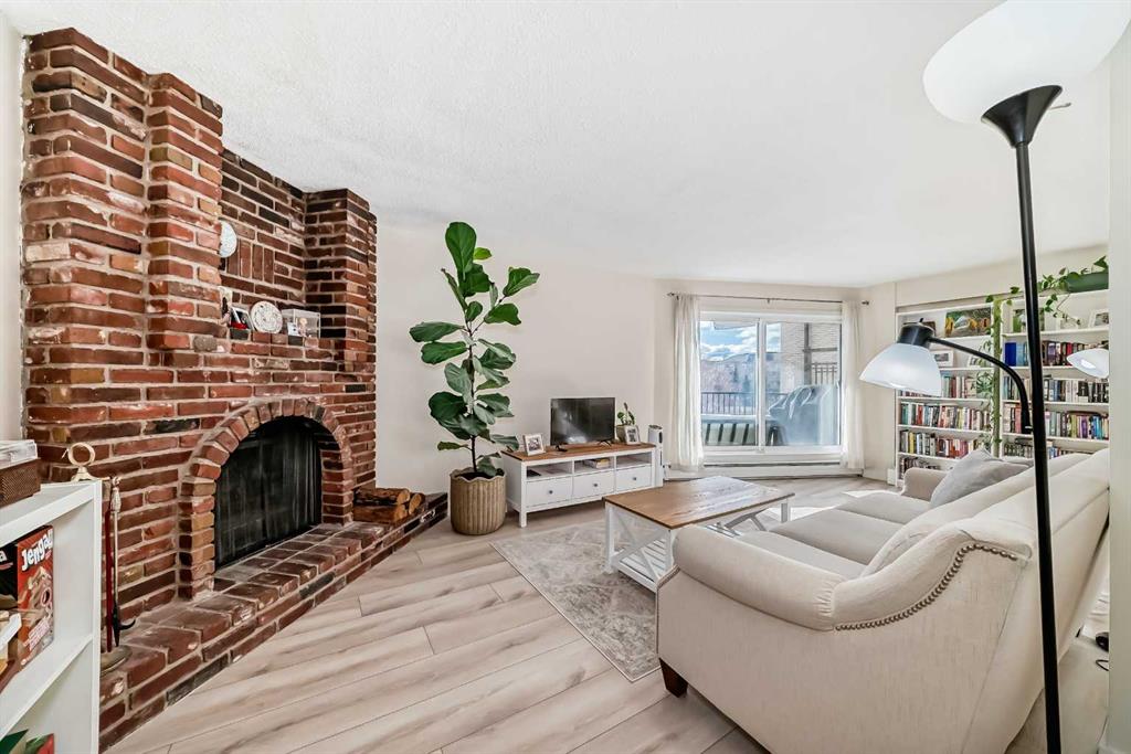 Don’t miss out on your chance to own a PROFESSIONALLY RENOVATED ($50,000), CONCRETE 3 Bedroom (walk-up) corner unit for under $400,000 in Spruce Cliff — WITH FABULOUS VIEWS OF: THE DOWNTOWN CORE, DOUGLAS FIR WALKING TRAIL, SHAGANAPPI GOLF COURSE and Chateau Belle Vue’s own PRIVATE COURTYARD! ALL NEW KITCHEN (cabinets, quartz countertops, appliances & tile backsplash), LUXURY VINYL PLANK THROUGHOUT and both BATHROOMS redone (all hardware). Safer 2nd floor location, SUNNY EAST BY SOUTHEAST EXPOSURE. This cozy 3 Bedroom, 1.5 bath unit has just under 1050 ft2 — open FR/DR combination with a rare WOOD BURNING BRICK FIREPLACE. Building amenities include: assigned surface stall (#24) steps from the front door, a secure storage locker (#202), shared WORKSHOP space, shared 3rd floor deck overlooking park, shared laundry room & washbasin in the basement (2 washers/2 dryers). Walking distance to LRT, Shaganappi Golf Course (x-country skiing track), shopping and Douglas Fir Trails for walking.