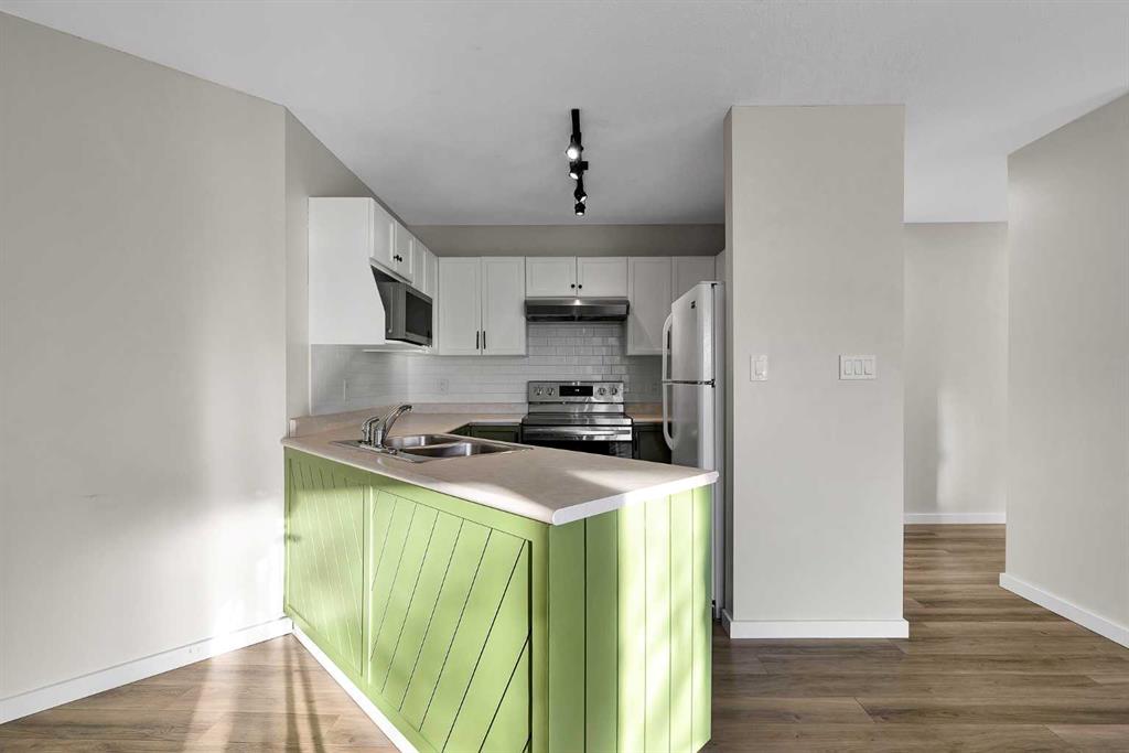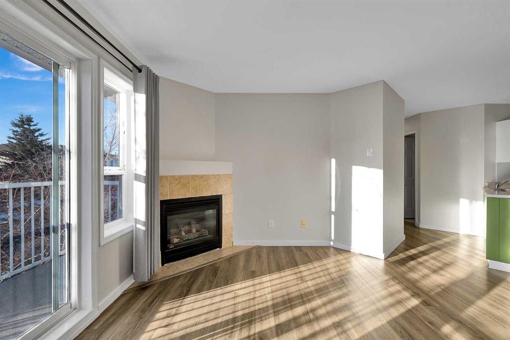Immediate possession available for this move-in ready home. Located on the second floor of a well-maintained walk-up, this 991 sq ft unit delivers value and everyday comfort with its natural light, thanks to its south and west facing windows. The open concept kitchen, dining and living space is ideal for entertaining and features a cozy gas fireplace along with patio doors opening to a west facing balcony. Two generously sized bedrooms are offered, including a primary suite with a walk-in closet. Additional features include a four-piece bathroom, in-suite laundry and a secure private storage area on the ground level for seasonal belongings. This unit comes with an assigned parking stall equipped with an electric plug, four visitor stalls, and plenty of street parking. Conveniently situated close to shops, schools, parks and the downtown area, with easy access to Highway 2 for commuters. Ideal for first home buyers, those looking to downsize, or investors, this well-priced home is a rare find. A great opportunity-book your private showing today.