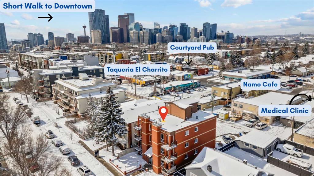 OPEN HOUSE – SATURDAY, APRIL 4 (1-3PM). Step into your freshly renovated and tastefully updated condo, designed for convenient inner-city living. This charming building features a beautiful brick exterior and only houses eight units. Located on the second floor, your new home offers prime access to both building entryways, ensuring convenient access to your assigned parking stall. The spacious layout includes two well-proportioned bedrooms plus a versatile flex space, that can easily serve as an office or hobby room. Both bedrooms are spacious and offer great natural light. The bathroom has been completely renovated, featuring clean finishes and a newly created pocket door for enhanced flow. This unit runs the length of the building, allowing for tons of natural light throughout the day. You’ll appreciate the fresh paint, inspired and carefully curated color palette, new custom curtains and updated lighting, including recessed fixtures in the kitchen. Enjoy cooking in a well-appointed kitchen complete with plenty of counter space, double sinks, a spacious pantry, and newer appliances. Down the hall, you’ll find additional features such as in-suite laundry with a brand-new washer and dryer, the large flex room that can double as an office, and closet organizers in both bedrooms for optimal space usage. This peaceful and well-maintained boutique building offers a quiet atmosphere with no neighbors on either side and only one quiet neighbor above. Location is everything! Situated just steps off Edmonton Trail, you’re within walking distance to popular local spots like Namo Cafe, Taqueria El Charrito, Boogies Burgers, Courtyard Pub, Pizza Culture, and more. Proximity is also convenient to walk in doctors clinic, dentist offices, schools, community center, playgrounds and bus stops. Plus, a short walk downhill takes you right into downtown Calgary. Don’t miss out on this exceptional opportunity! Book your showing today and discover why this unit is a must-see!