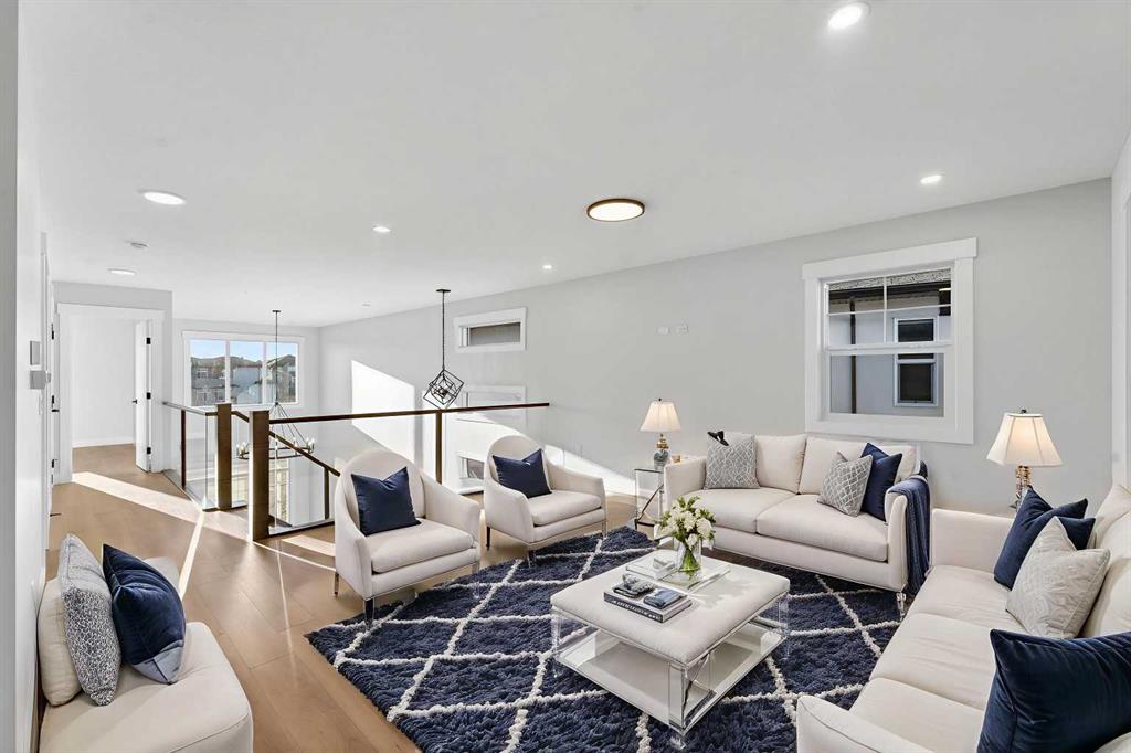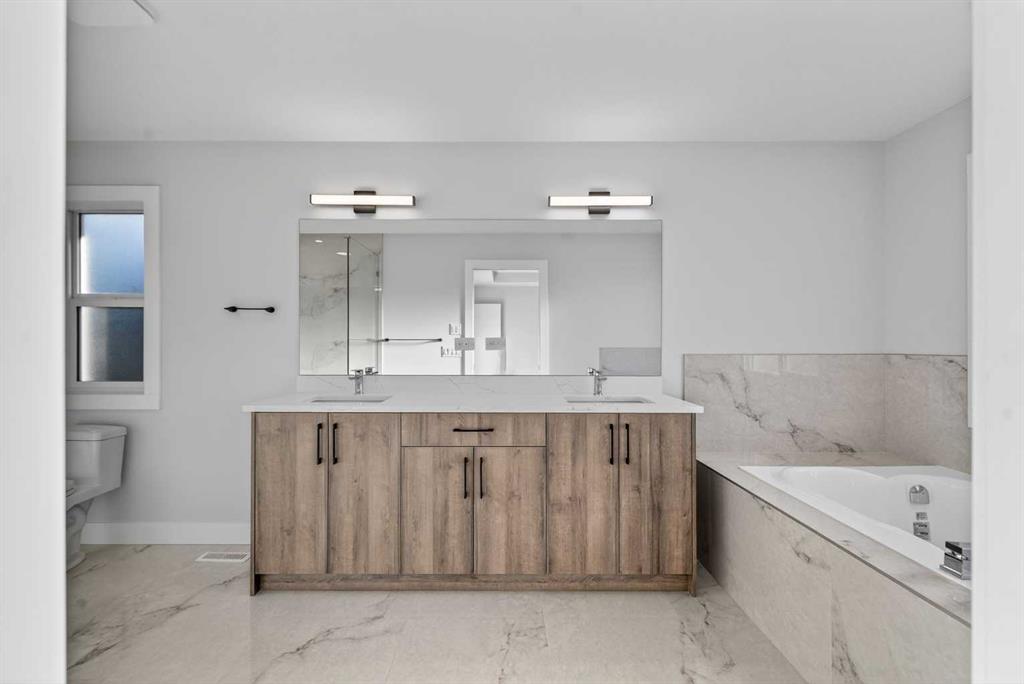 BRAND NEW HOME!! BACKING ONTO GREEN SPACE/POND!! WIDE LOT (66FT)!! IN KINNIBURGH SOUTH!! POND VIEWS!! TRIPLE ATTACHED GARAGE!! MAIN FLOOR BEDROOM & FULL BATH!! 5 BED 4 BATH!! SEPARATE ENTRANCE TO BASEMENT!! Step into a welcoming main floor featuring a formal dining area, spacious living room with GAS FIREPLACE and direct access to the backyard deck, plus a chef-inspired kitchen with OVERSIZED ISLAND, built-in appliances, tons of cabinetry, and a SPICE KITCHEN. The main floor bedroom and 3-pc bath offer ideal flexibility. Upstairs offers FOUR BEDROOMS including a luxurious PRIMARY BEDROOM with walk-in closet and 5-pc ensuite. A second bedroom features its own private 3-pc ensuite. The remaining two bedrooms share a Jack & Jill 4-pc bath. Enjoy the convenience of UPPER FLOOR LAUNDRY, a bright family area, and an OPEN-TO-BELOW design that adds to the grand feel of the home. Final touchups still needs to be done for both exterior and interior. Backing onto GREEN SPACE for added privacy and views, while the front of the home faces Main Street, this property delivers space, function, and luxury in one of Chestermere’s most desirable communities. DON’T MISS THIS INCREDIBLE NEW BUILD IN KINNIBURGH SOUTH — BOOK YOUR SHOWING TODAY!!