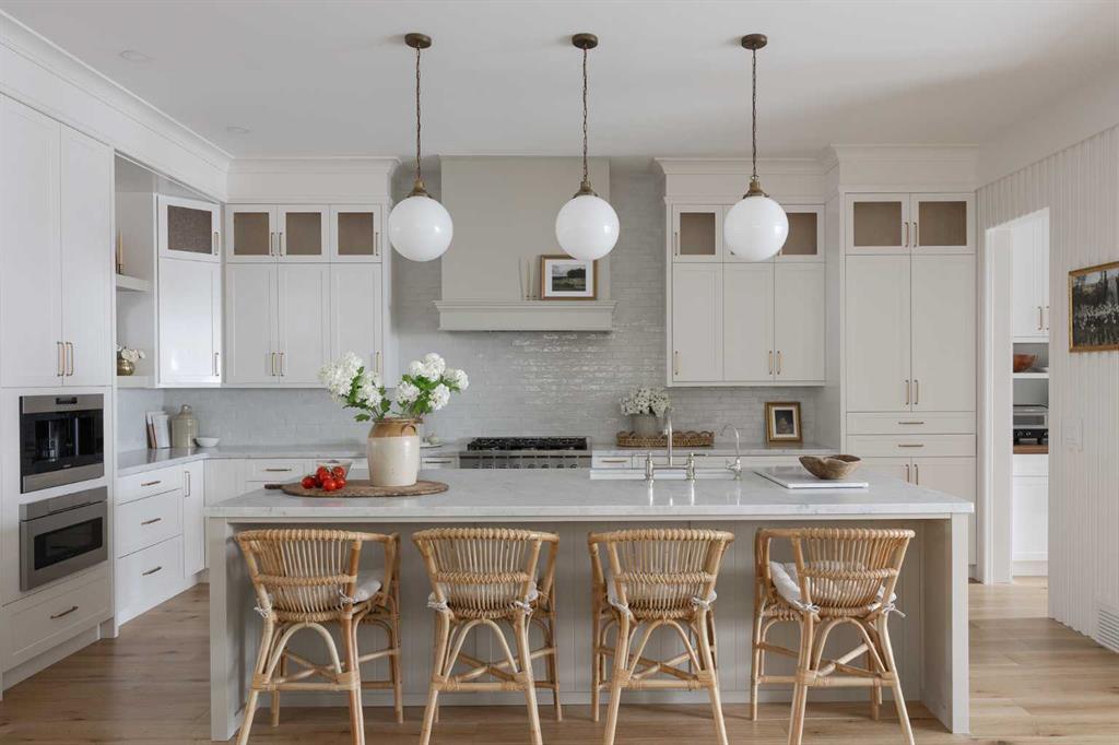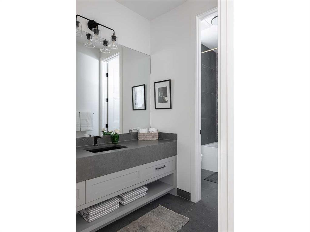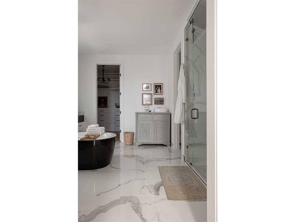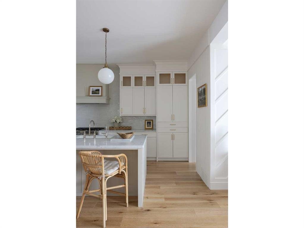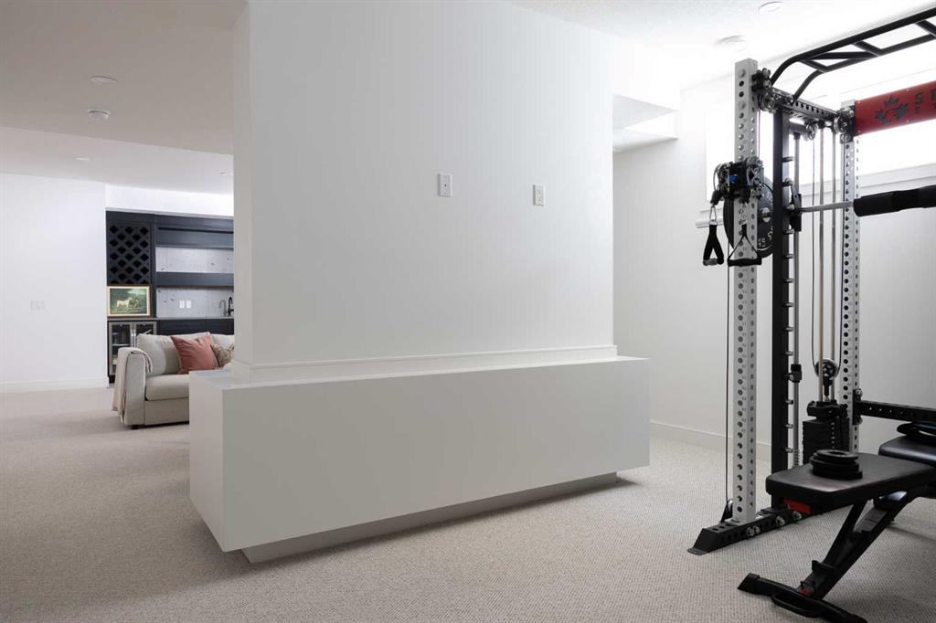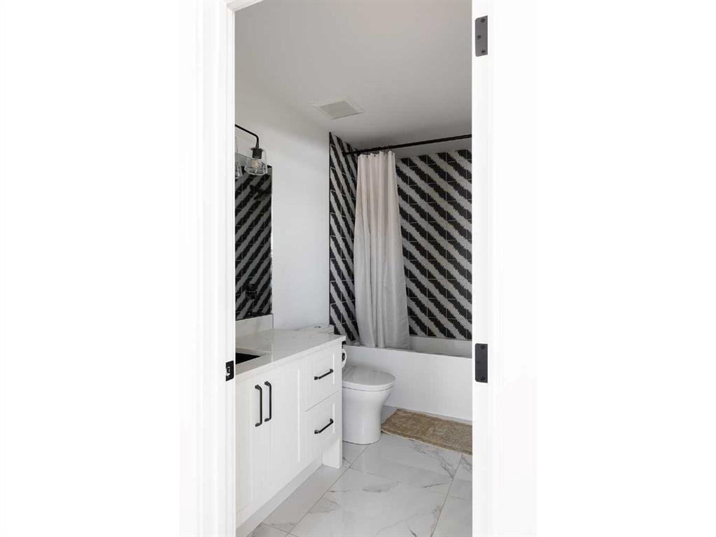 Timeless elegance and effortless living come together in this stunning modern home, offering over 4,300 square feet of beautifully finished living space. The upgraded kitchen is the heart of the home, featuring white cabinetry anchored by a warm greige island, marble countertops, and a handmade Zellige tile backsplash. A premium appliance package includes Fisher & Paykel appliances with a gas range, a 48-inch built-in fridge/freezer combination, and a built-in microwave, complemented by a built-in Wolf coffee maker and statement range hood. Designer lighting and a thoughtfully designed pantry complete the space. A reverse osmosis system at the kitchen sink and a whole-home water softener enhance everyday living. The open-concept main floor flows seamlessly into a generous dining area and inviting living room, anchored by a gas fireplace with built-in shelving. An 8-foot sliding door and oversized window fill the space with natural light and provide direct access to the backyard. Elegant custom window coverings are featured throughout the home. A private main floor office offers a quiet workspace, while the well-designed mudroom keeps everyday essentials neatly organized. Upstairs, the primary suite is a true retreat with vaulted ceilings and a striking floor-to-ceiling brick fireplace. The spa-inspired ensuite features dual vanities, a deep soaker tub, heated floors, and a spacious walk-in closet. Two additional bedrooms, a four-piece bathroom, and convenient upper-level laundry complete the floor. The third floor is a standout space, perfect for hosting or relaxing, with a spacious lounge and games area, wet bar, full bathroom, and access to a private balcony. The bright fully finished basement offers a large recreation room with wet bar, a versatile flex space ideal for a home gym, and a private fourth bedroom with a full bath. Outside, the fully fenced backyard is beautifully landscaped with perennials, fruit bushes, and a young apple tree, along with a generous patio ideal for summer gatherings. The detached triple garage includes 200-amp electrical service and an EV charger. Ideally located steps from Sandy Beach Park, the Elbow River pathways, and the shops, dining, and amenities of Marda Loop, this home offers an exceptional inner-city lifestyle.