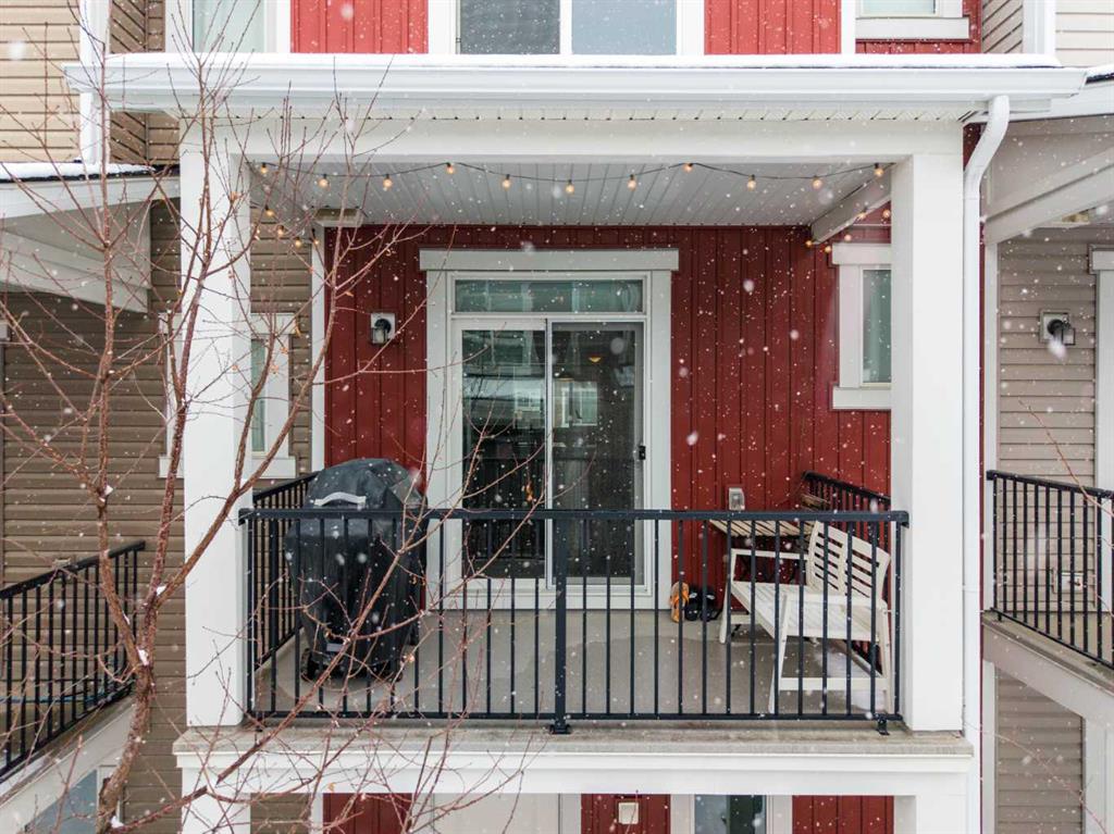 Welcome to this beautifully maintained and thoughtfully upgraded townhouse in the highly sought-after community of Nolan Hill, offering a perfect blend of style, comfort, and functionality. Step inside to discover a bright and inviting open-concept main floor with high ceilings and an open floorplan, where large windows flood the space with natural light and create an airy, welcoming atmosphere. The modern kitchen is both stylish and practical, featuring quartz counters, sleek cabinetry, stainless steel appliances, and a spacious breakfast bar that seamlessly connects to the dining and living areas—perfect for entertaining or everyday living. Just off the kitchen, enjoy a private balcony ideal for morning coffee or evening relaxation, fitted with a gas line for your BBQ! Upstairs, this well-designed layout offers two spacious primary-style bedrooms, each complete with walk-in closets and their own 4-piece ensuites, providing ultimate comfort and privacy; both ensuites have been enhanced with upgraded pot lights above the showers, a thoughtful upgrade completed after possession and not standard in similar floorplans. Additional highlights include air conditioning for year-round comfort, upper-level laundry, and a welcoming lower level with access to the attached tandem garage, offering ample parking and storage. Located close to parks, pathways, shopping, and major routes, this home presents an exceptional opportunity to own in one of NW Calgary’s most desirable communities!
