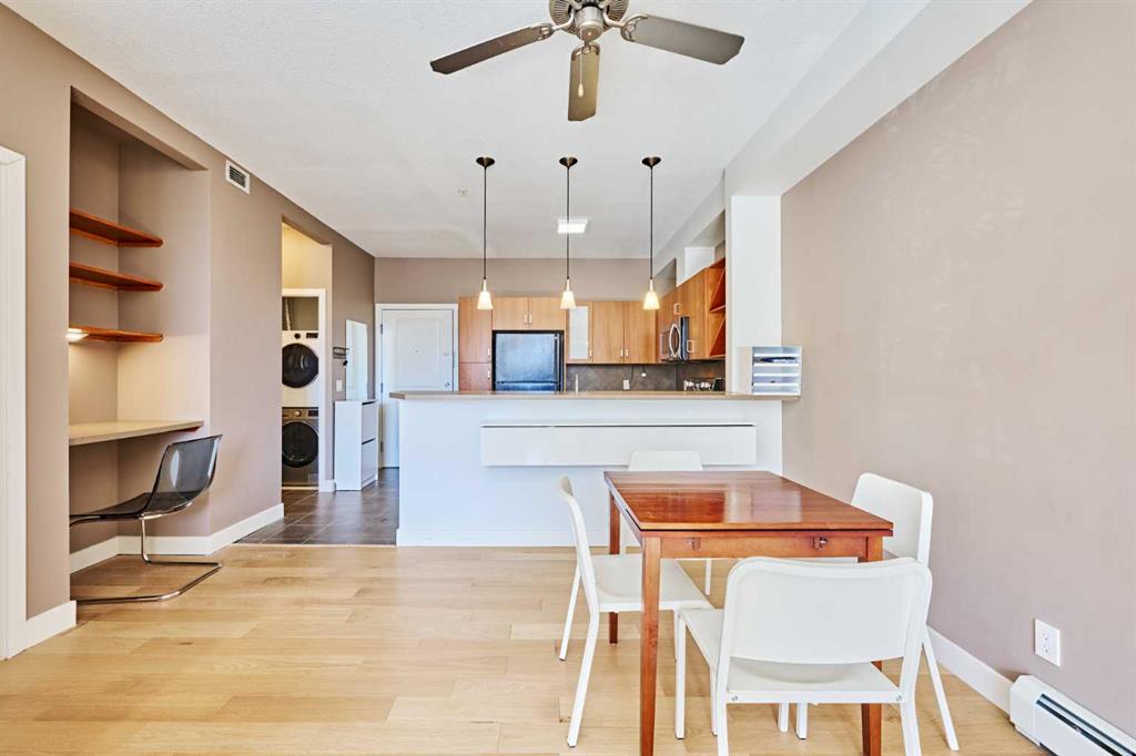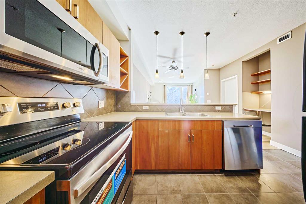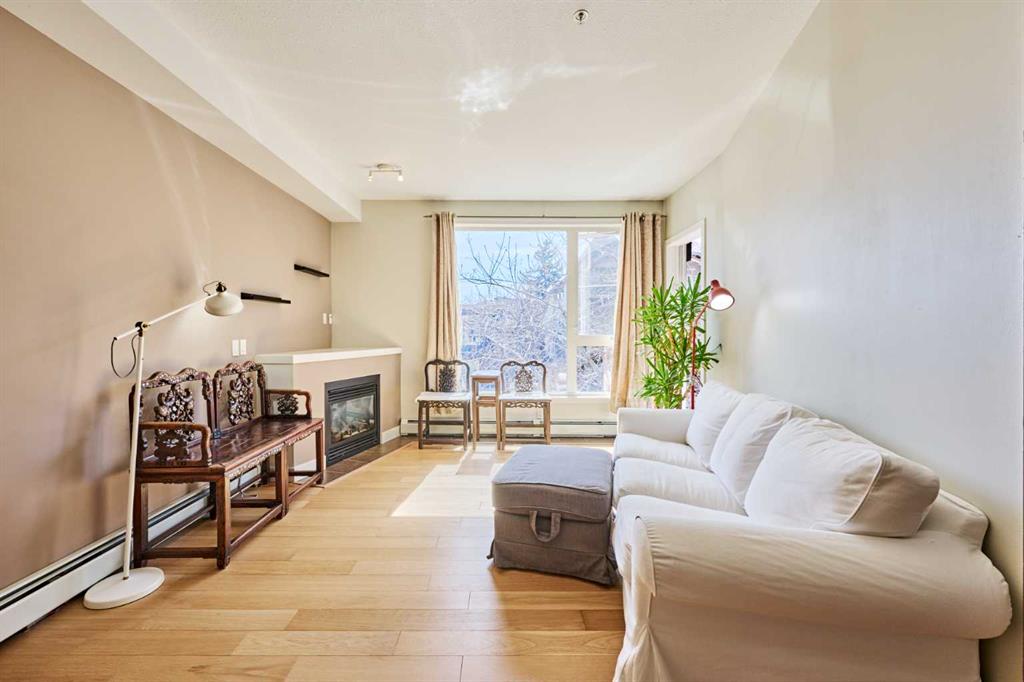 Welcome to Unit 203 in KABO, a bright and functional 1-bedroom, 1-bath condo in the heart of Altadore. This well-designed second-floor unit features an open-concept layout with 9′ ceilings, a spacious kitchen(with new range, microwave and dishwasher) with maple cabinetry and breakfast bar, a cozy living room with gas fireplace, and a private covered balcony. The generous bedroom is located next to the 4-piece bath and in-suite laundry for added convenience. Heated underground parking and a separate storage locker are included. Pet-friendly building with board approval. Ideally located steps to River Park, Sandy Beach pathways, shopping, transit, and all the amenities of vibrant Marda Loop. A great opportunity for first-time buyers, investors, or anyone seeking an inner-city lifestyle in a desirable community.