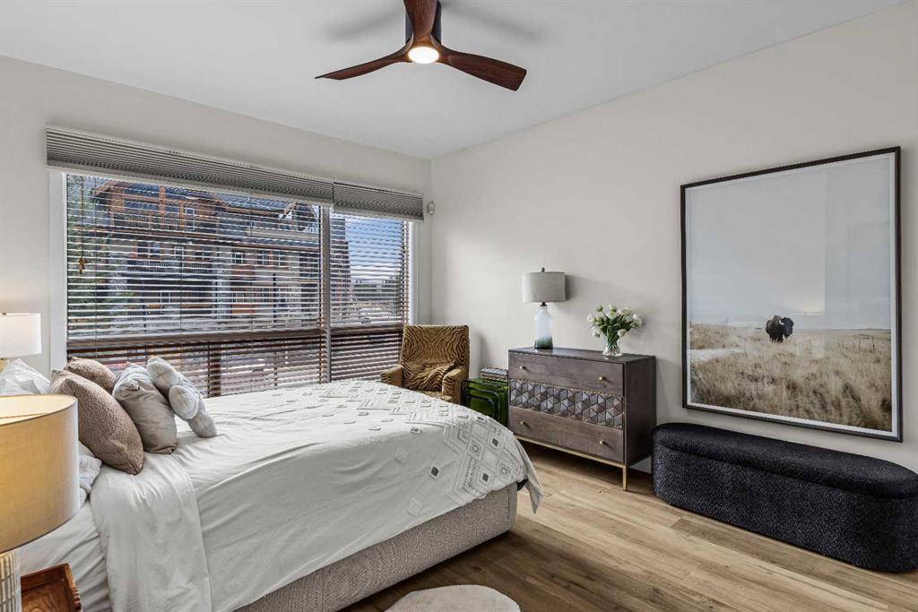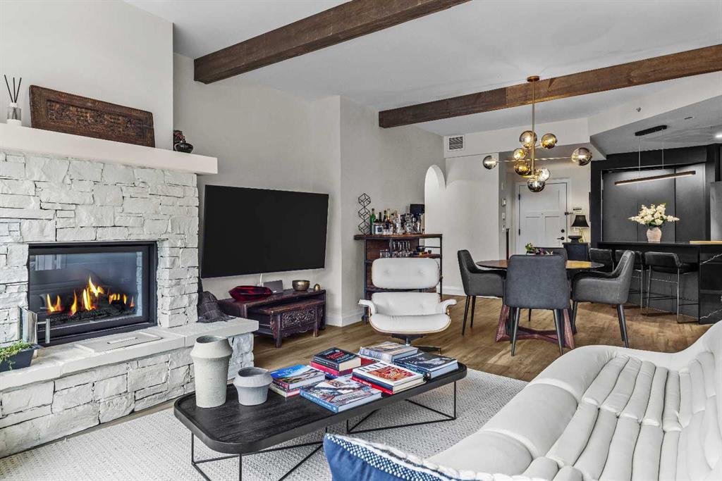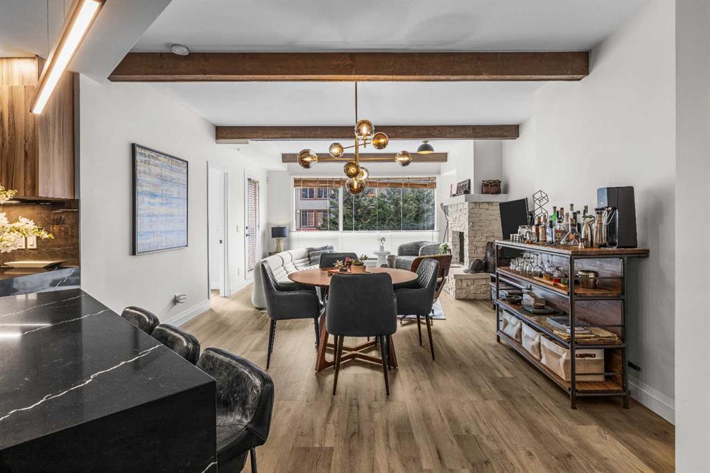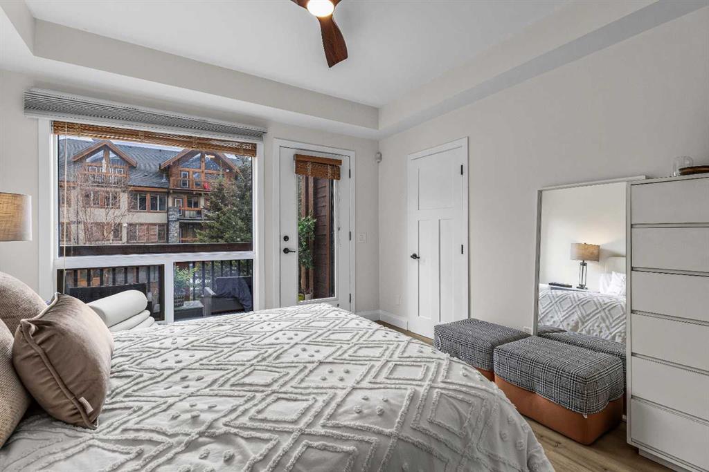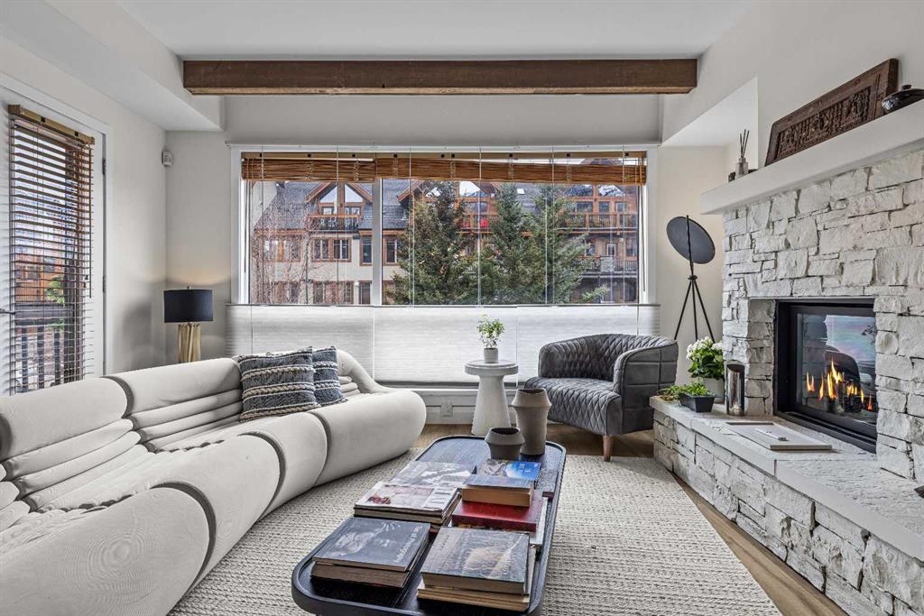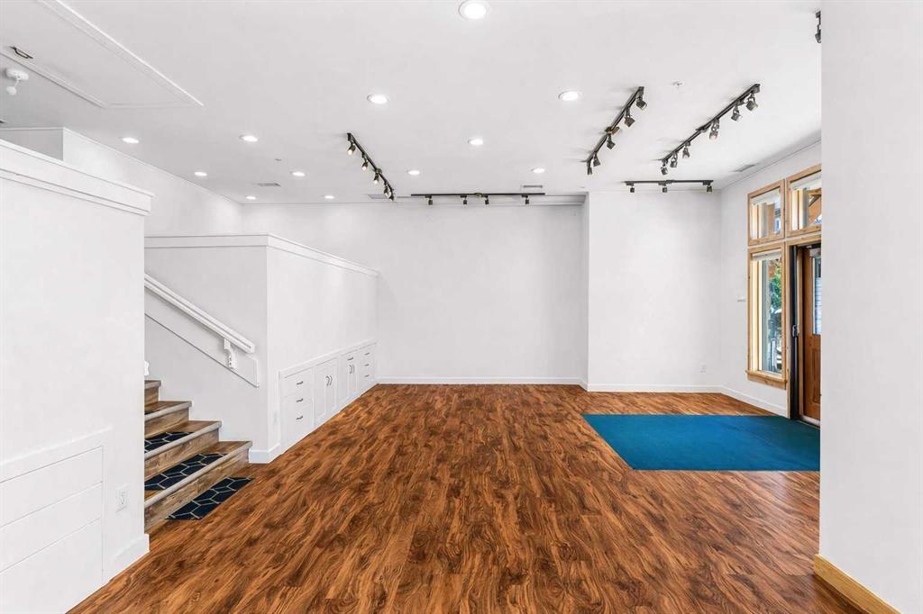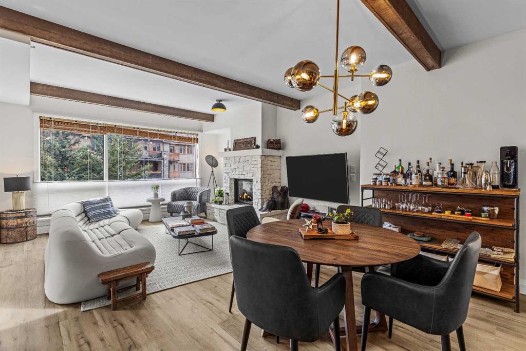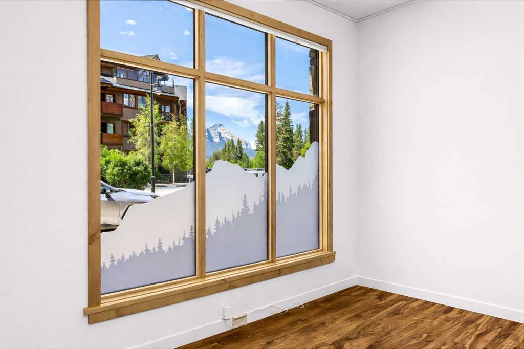 Ultimate Live / Work opportunity in the heart of Spring Creek, now fully transformed with over $100K in high end renovations. This beautifully reimagined two level studio offers exceptional flexibility for a home office, retail space, or creative studio below, with a fully upgraded residential retreat above. The 2 bedroom upper level has been completely renovated with a brand new kitchen featuring sleek cabinetry and quartz countertops, alongside fully redone bathrooms, new flooring, and striking exposed beam ceilings that add warmth and character. Natural light fills the space with views toward the Rundle Range and Policeman’s Creek, while the private deck offers a quiet place to unwind. The lower level workspace provides excellent exposure and versatility, ideal for a variety of business uses or a dedicated work from home setup. Complete with 2 titled underground parking stalls, 2 storage lockers, and a prime location just steps to Main Street, all within the sought after Moraine Ridge 40+ building, surrounded by boutique shops, cafes, galleries, and fitness studios, this is a rare opportunity to own a fully renovated live work property in one of Canmore’s most desirable communities.