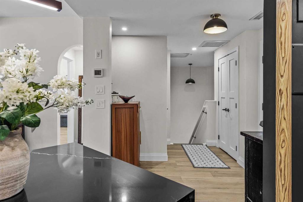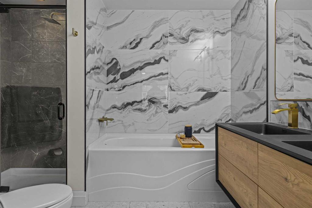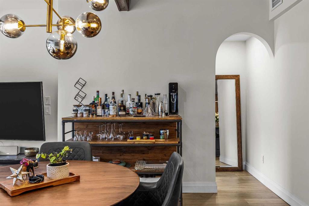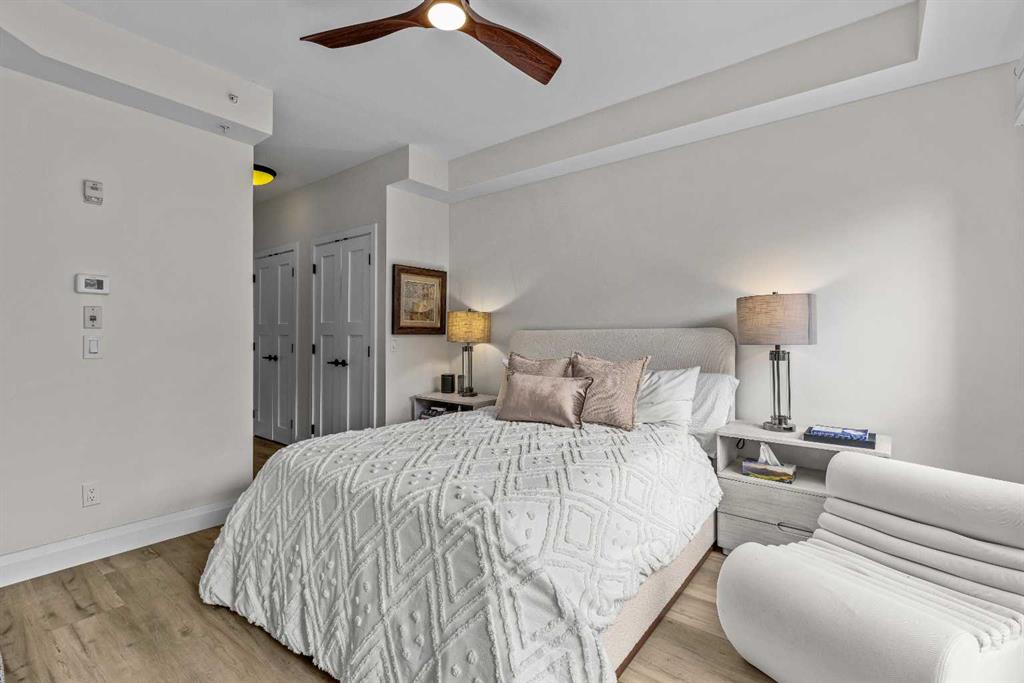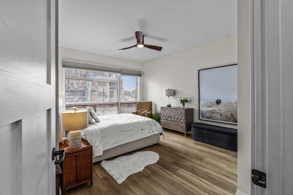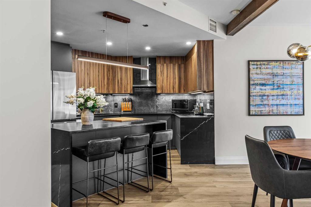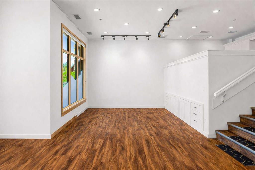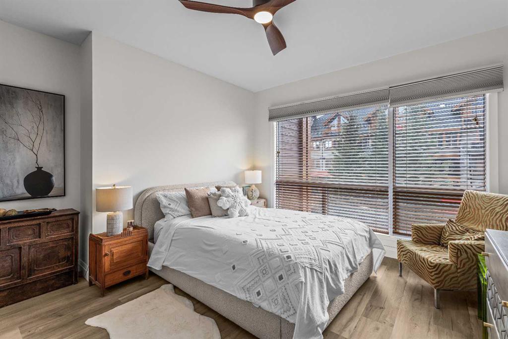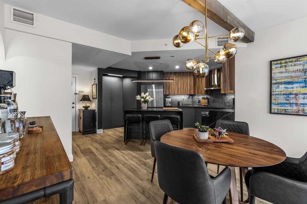 Ultimate Live / Work opportunity in the heart of Spring Creek, now fully transformed with over $100K in high end renovations. This beautifully reimagined two level studio offers exceptional flexibility for a home office, retail space, or creative studio below, with a fully upgraded residential retreat above. The 2 bedroom upper level has been completely renovated with a brand new kitchen featuring sleek cabinetry and quartz countertops, alongside fully redone bathrooms, new flooring, and striking exposed beam ceilings that add warmth and character. Natural light fills the space with views toward the Rundle Range and Policeman’s Creek, while the private deck offers a quiet place to unwind. The lower level workspace provides excellent exposure and versatility, ideal for a variety of business uses or a dedicated work from home setup. Complete with 2 titled underground parking stalls, 2 storage lockers, and a prime location just steps to Main Street, all within the sought after Moraine Ridge 40+ building, surrounded by boutique shops, cafes, galleries, and fitness studios, this is a rare opportunity to own a fully renovated live work property in one of Canmore’s most desirable communities.