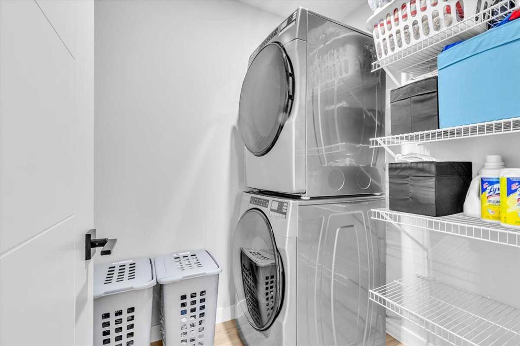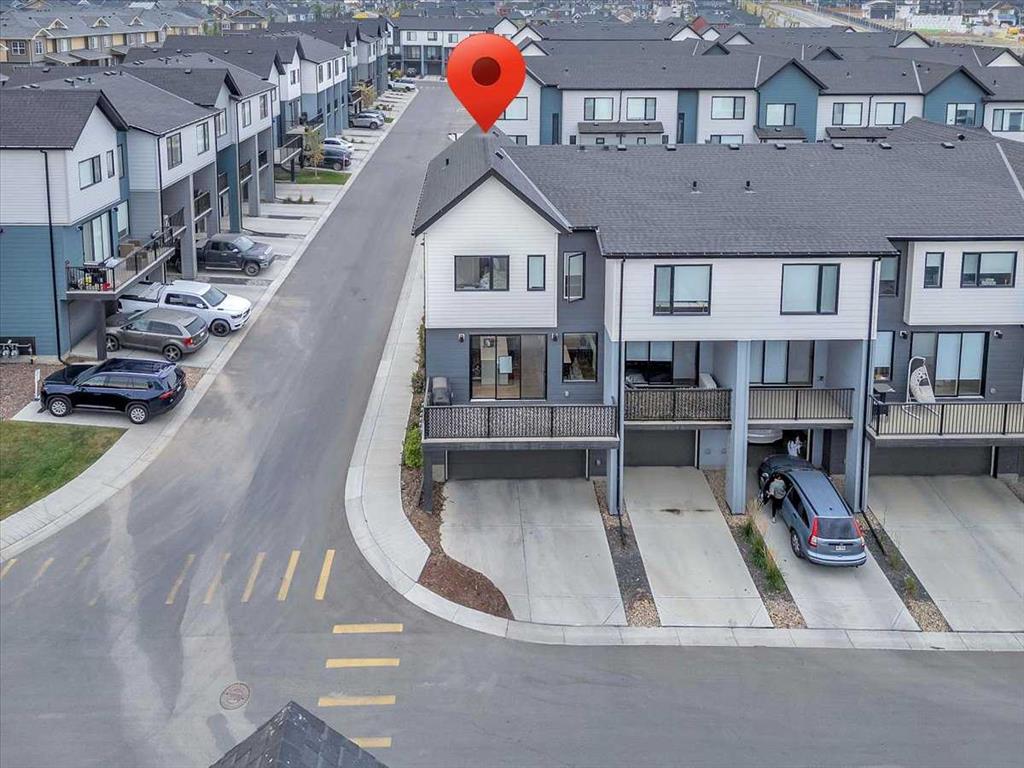 Welcome to this beautiful corner-unit townhouse in the vibrant community of Evanston, where thoughtful design meets modern convenience. With three bedrooms, 2.5 bathrooms, and a three-storey layout, this stylish home offers the perfect combination of space, function, and comfort — all in a location that puts every amenity within easy reach. Step inside to a welcoming main-floor foyer that sets the tone with its clean, modern feel and durable vinyl & tile flooring throughout. This level includes a private den with a proper door, making it perfect for working from home or hosting meetings in peace. You’ll also find a closet for coats and storage, a utility area, and direct access to the double attached garage, providing ultimate convenience for daily living. Upstairs, you’re greeted by a bright, open living space designed for both relaxing and entertaining. The kitchen shines with white cabinetry, quartz countertops, and stainless steel appliances, including a gas range for the home chef. There’s also extra power under the sink, ideal for adding a garburator or water filtration system. Elegant light fixtures, designer wall treatments, and vinyl flooring continue throughout this level, giving the space a modern, cohesive look. The dining area comfortably fits a large table, and the living room is bathed in natural light from the corner windows. Step through the sliding glass doors to your balcony with a gas line for your BBQ, making it easy to grill and entertain outdoors. A 2-piece bath completes this floor. On the upper level, the primary bedroom is positioned for privacy, featuring a 3-piece ensuite and a large closet. Two additional bedrooms share a 4-piece main bath, creating a practical setup for family or guests. The upper laundry area includes extra storage space, making household chores simple and efficient. This home was built with energy efficiency in mind, featuring a tankless hot water system and an A/C rough-in, giving you comfort and flexibility for every season, and motion detection lights in the washroom and laundry room. As a corner unit, it enjoys extra natural light and a sense of separation from neighbours. The fenced front yard is perfect for a seating area or a small garden, while the landscaped central courtyard adds extra green space and privacy. Located close to schools, parks, shopping, and dining, this home is also just minutes from Stoney Trail for quick access around the city. You’ll love being near the Carrington complex, which includes a playground and grocery stores within walking distance, providing everyday convenience just down the street, plus other playgrounds within walking distance. Beautifully maintained and move-in ready, this corner townhouse offers all the modern comforts, smart upgrades, and community connection you’ve been searching for.