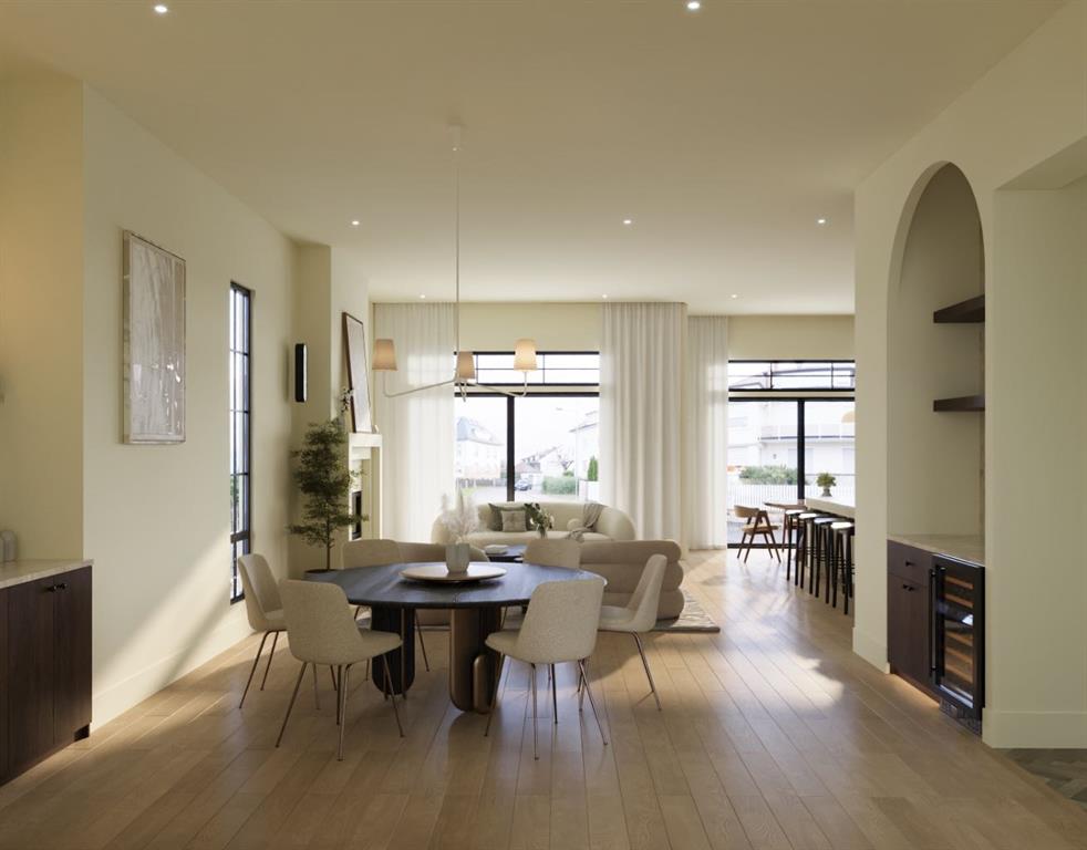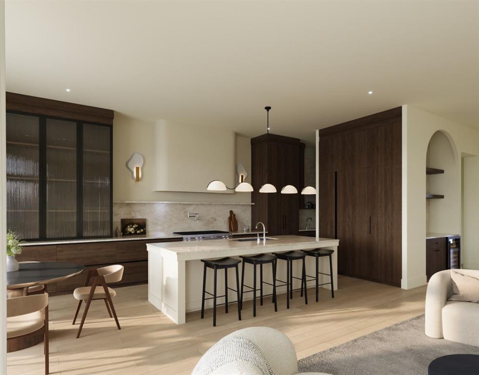 Luxury pre-sale opportunity on one of Altadore’s most sought-after streets. This brand new custom-built home by Jerry Homes and designed by aalstudios offers over 4,200 square feet of total elegant living space designed for modern comfort and style. Situated in the heart of Altadore, the exterior showcases timeless architectural details with rich red brick, vertical black siding, and warm accent lighting that highlights its striking facade. Inside, eleven-foot ceilings, expansive windows, and wide-plank hardwood floors create a seamless flow throughout the main level. The front entry opens to a beautiful home office or study, followed by an open concept dining room with custom arched built-ins. The living room features a sleek floor-to-ceiling fireplace that anchors the space and overlooks the backyard through oversized sliding doors that flood the home with natural light, complemented by a breakfast nook. The kitchen is the centrepiece of the main floor, equipped with full-height custom cabinetry, a large quartz island, a walk-in pantry, and a premium built-in appliance package featuring a Sub-Zero refrigerator and a Wolf gas range. A stylish powder room wrapped in designer wallpaper and a spacious mudroom with custom lockers complete this level. Upstairs, the second floor offers three spacious bedrooms, each with its own ensuite bathroom, a den, and a thoughtfully designed layout ideal for family living. The primary suite is a private retreat with twelve-foot tray ceilings, large windows, and a spa-inspired ensuite featuring a curved glass shower, a freestanding curved soaker tub, dual vanities, in-floor heat and two large walk-in closets—one complete with a makeup vanity. The two additional bedrooms each include walk-in closets and elegant en-suites. A dedicated laundry room with built-in cabinetry and a sink adds everyday convenience, while a south-facing den with large windows provides a bright and versatile space to complete the upper level. The fully developed basement extends the living area with a large recreation room featuring a custom wet bar and built-in shelving, a glass-enclosed gym, a wine room, a spacious guest bedroom, and a full bathroom. Additional features include rough-ins for air conditioning, basement in-floor heating, security cameras, and built-in speakers. The exterior offers a landscaped yard, rear deck, and a triple detached garage. This remarkable home seamlessly blends quality craftsmanship with refined modern design. Every detail has been carefully curated for luxury living, from the high-end finishes to the integrated Sub-Zero and Wolf appliances. Perfectly situated steps from schools, parks, and Marda Loop amenities, this residence embodies the perfect balance of sophistication, functionality, and timeless design in one of Calgary’s most desirable inner-city neighborhoods. Call today to book your private tour.