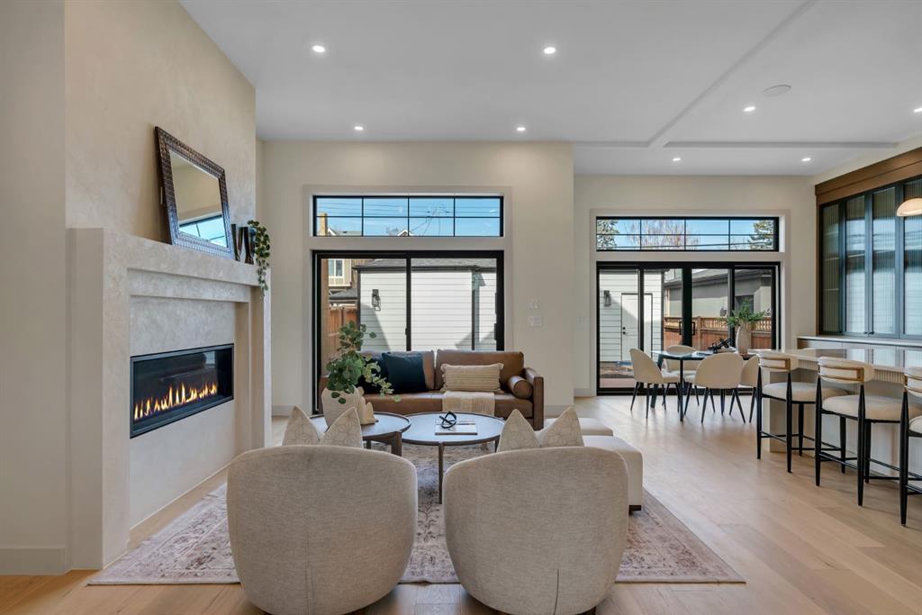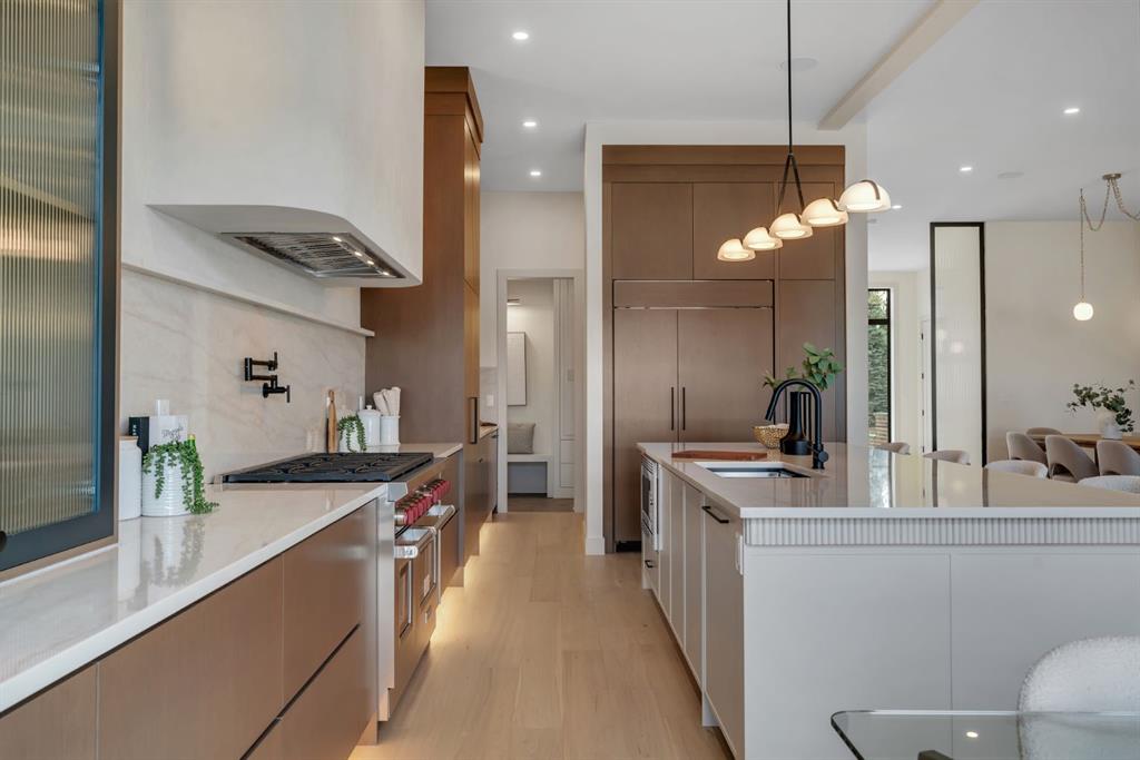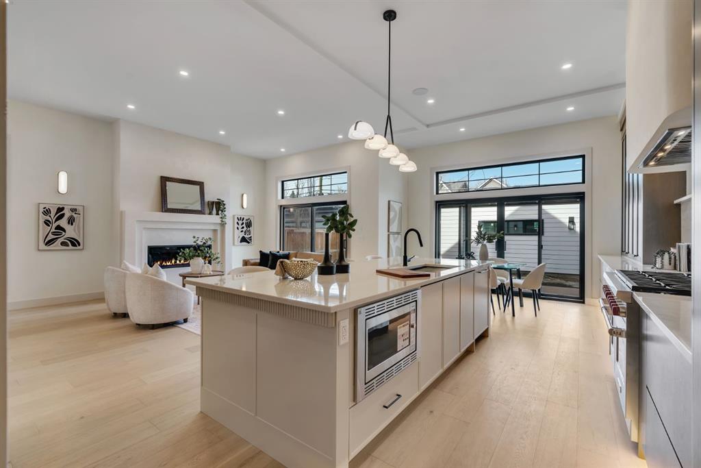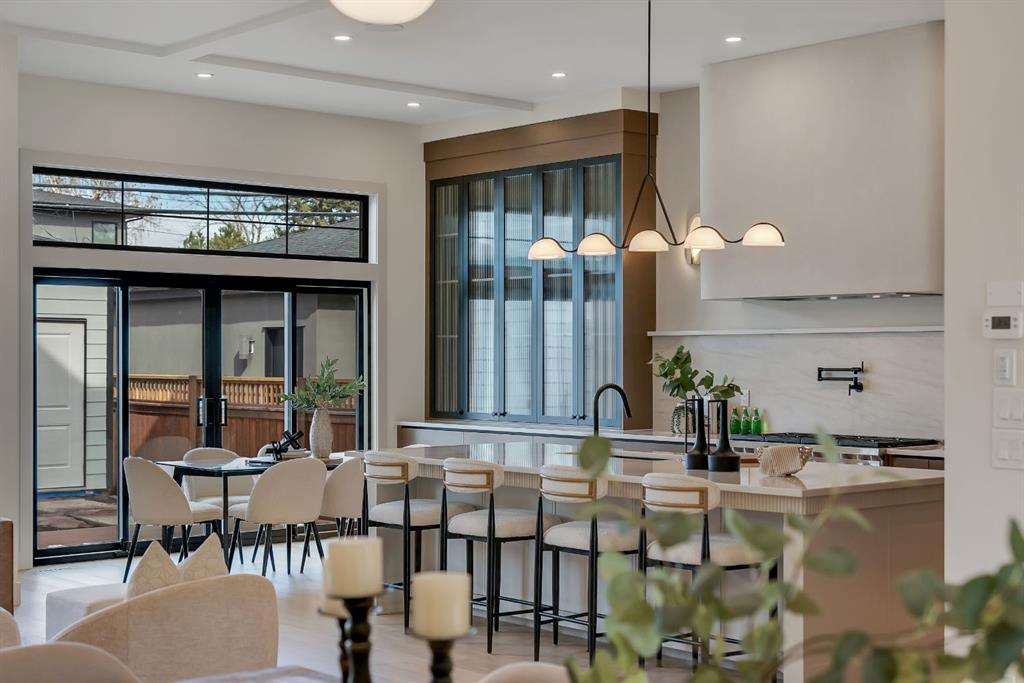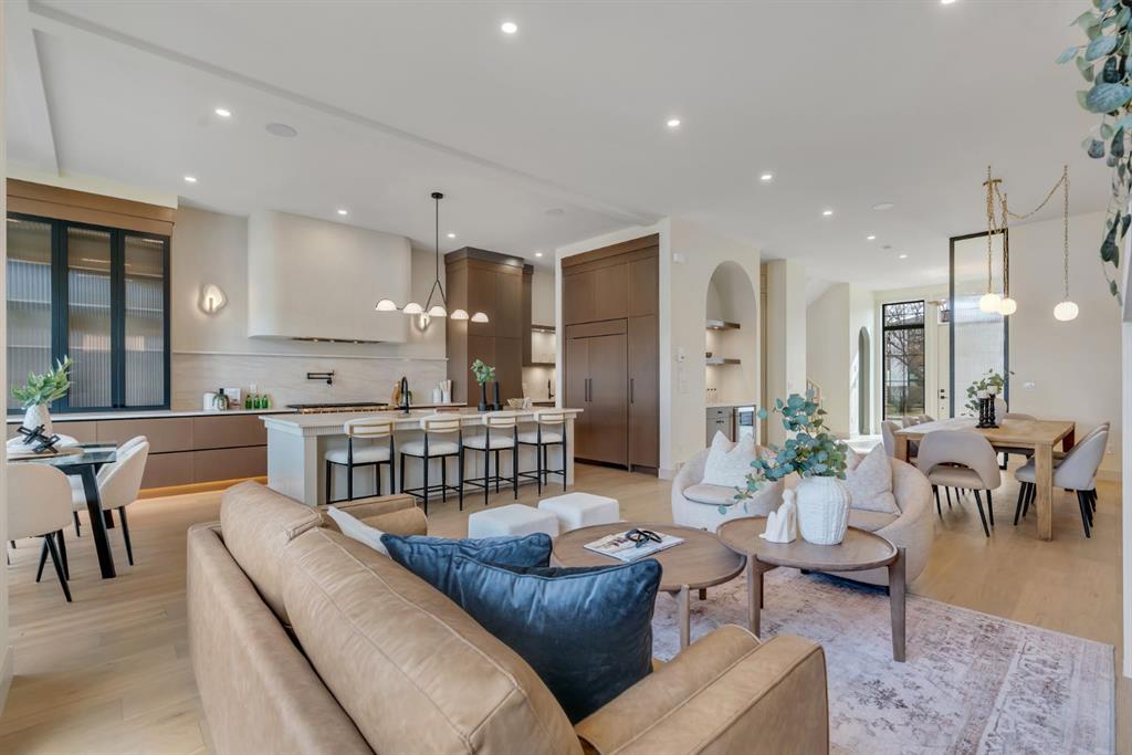 Located on one of Altadore’s most desirable streets, this brand-new custom residence by Jerry Homes with architectural design by aalstudios offers over 4,200 total square feet of expertly finished living space, seamlessly combining classic architectural elements with a refined modern aesthetic. The exterior makes a striking first impression with its rich red brick, wood siding, and carefully placed accent lighting that enhances the home’s bold yet sophisticated presence. Inside, the main level is defined by soaring eleven-foot ceilings, oversized windows, and wide-plank hardwood flooring, beginning with a welcoming foyer that leads to a beautifully designed front office or study featuring large south-facing windows and custom built-ins, alongside an elegant dining area highlighted by arched millwork details. The living room is anchored by a multi-tiered floor-to-ceiling plaster fireplace and connects effortlessly to the backyard through oversized sliding doors that flood the space with natural light, while a bright breakfast nook with custom oak cabinetry also provides direct access outside. The kitchen is a true showpiece, complete with full-height oak cabinetry, a plaster-finished hood fan, a large quartz island with fluted detailing and curved toe kicks, a walk-in pantry, and a premium built-in appliance package including Sub-Zero and Wolf. A designer powder room and a thoughtfully designed mudroom with custom millwork complete the main floor. The upper level features three generously sized bedrooms, each with its own ensuite, along with a versatile den enhanced by large south-facing windows. The primary suite offers a luxurious retreat with twelve-foot tray ceilings, expansive windows, and a spa-inspired ensuite finished entirely in plaster, showcasing a curved glass shower, a freestanding fluted soaker tub, dual vanities, in-floor heating, and two spacious walk-in closets, including one with a dedicated makeup vanity. The secondary bedrooms are equally well-appointed with walk-in closets and elegant en-suites, while a fully equipped laundry room with built-in cabinetry and a sink adds everyday convenience. The fully developed basement continues the home’s elevated design with a large recreation area, a custom wet bar, built-in shelving, a glass-enclosed gym, a custom wine room, a spacious guest bedroom, and a full bathroom. Additional features include rough-ins for air conditioning, in-floor heating in the basement, security cameras, and integrated speakers throughout. The exterior will be completed with professional landscaping, and also features a rare triple detached garage. Located just steps from parks, schools, and the amenities of Marda Loop, this exceptional home offers a perfect balance of luxury, functionality, and inner-city living. Call today to book your private tour.