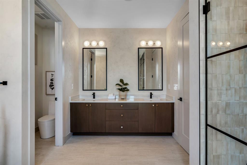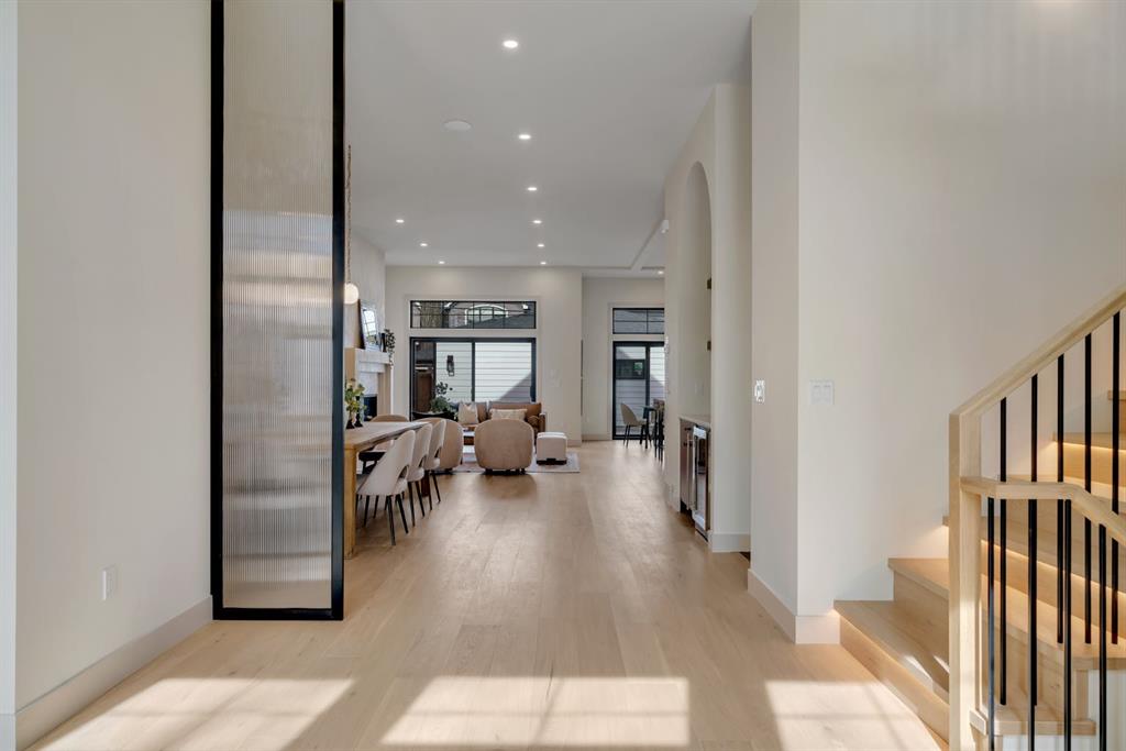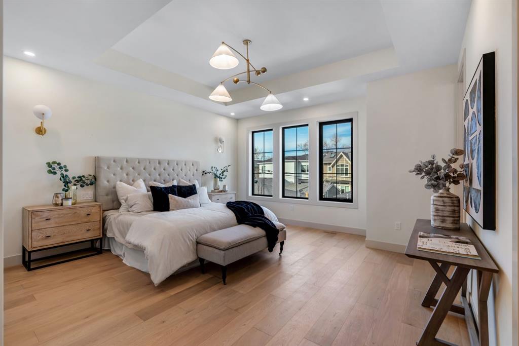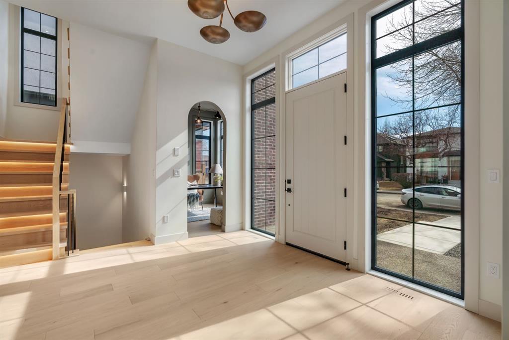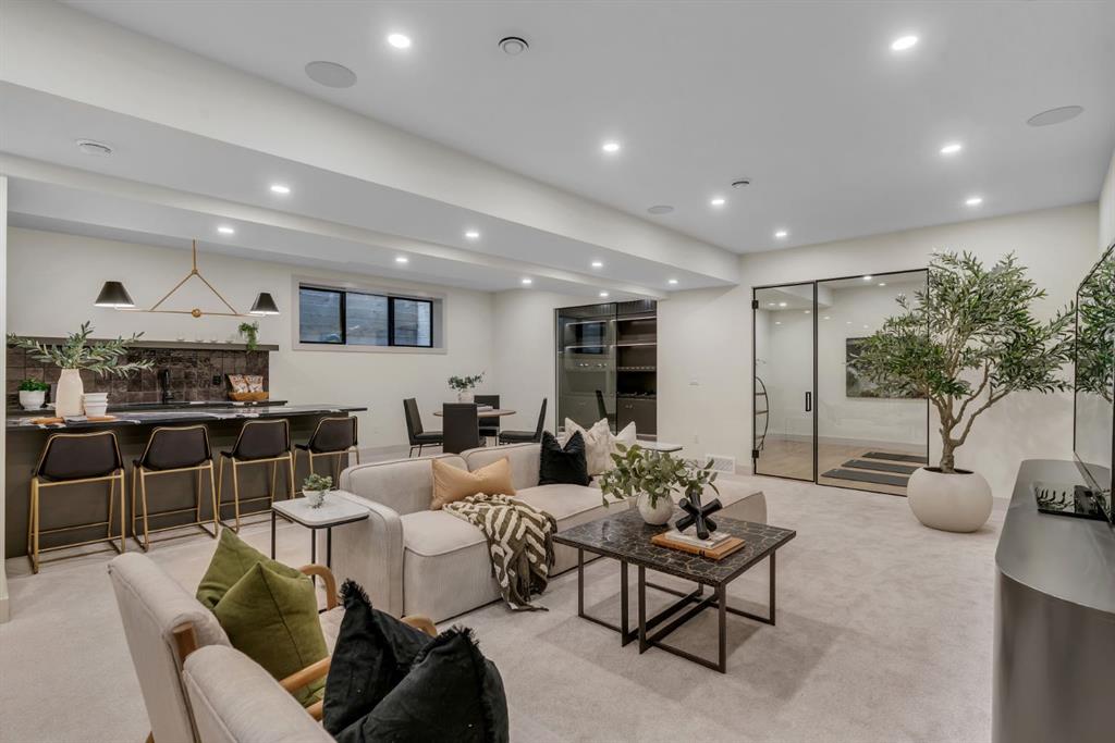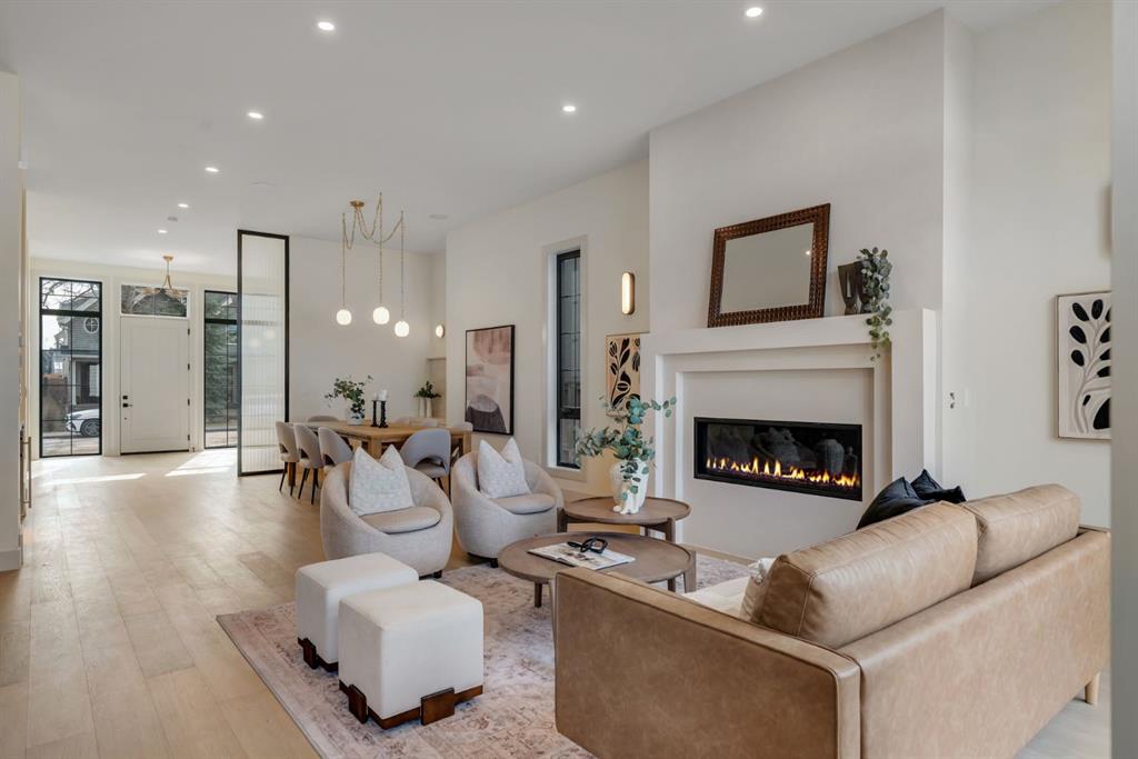 Located on one of Altadore’s most desirable streets, this brand-new custom residence by Jerry Homes with architectural design by aalstudios offers over 4,200 total square feet of expertly finished living space, seamlessly combining classic architectural elements with a refined modern aesthetic. The exterior makes a striking first impression with its rich red brick, wood siding, and carefully placed accent lighting that enhances the home’s bold yet sophisticated presence. Inside, the main level is defined by soaring eleven-foot ceilings, oversized windows, and wide-plank hardwood flooring, beginning with a welcoming foyer that leads to a beautifully designed front office or study featuring large south-facing windows and custom built-ins, alongside an elegant dining area highlighted by arched millwork details. The living room is anchored by a multi-tiered floor-to-ceiling plaster fireplace and connects effortlessly to the backyard through oversized sliding doors that flood the space with natural light, while a bright breakfast nook with custom oak cabinetry also provides direct access outside. The kitchen is a true showpiece, complete with full-height oak cabinetry, a plaster-finished hood fan, a large quartz island with fluted detailing and curved toe kicks, a walk-in pantry, and a premium built-in appliance package including Sub-Zero and Wolf. A designer powder room and a thoughtfully designed mudroom with custom millwork complete the main floor. The upper level features three generously sized bedrooms, each with its own ensuite, along with a versatile den enhanced by large south-facing windows. The primary suite offers a luxurious retreat with twelve-foot tray ceilings, expansive windows, and a spa-inspired ensuite finished entirely in plaster, showcasing a curved glass shower, a freestanding fluted soaker tub, dual vanities, in-floor heating, and two spacious walk-in closets, including one with a dedicated makeup vanity. The secondary bedrooms are equally well-appointed with walk-in closets and elegant en-suites, while a fully equipped laundry room with built-in cabinetry and a sink adds everyday convenience. The fully developed basement continues the home’s elevated design with a large recreation area, a custom wet bar, built-in shelving, a glass-enclosed gym, a custom wine room, a spacious guest bedroom, and a full bathroom. Additional features include rough-ins for air conditioning, in-floor heating in the basement, security cameras, and integrated speakers throughout. The exterior will be completed with professional landscaping, and also features a rare triple detached garage. Located just steps from parks, schools, and the amenities of Marda Loop, this exceptional home offers a perfect balance of luxury, functionality, and inner-city living. Call today to book your private tour.