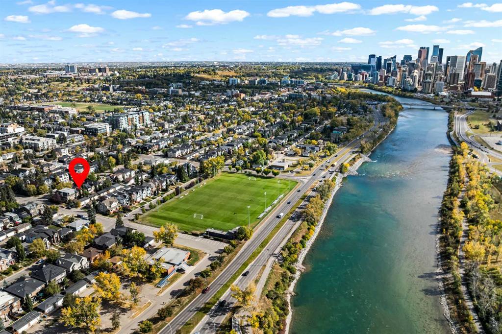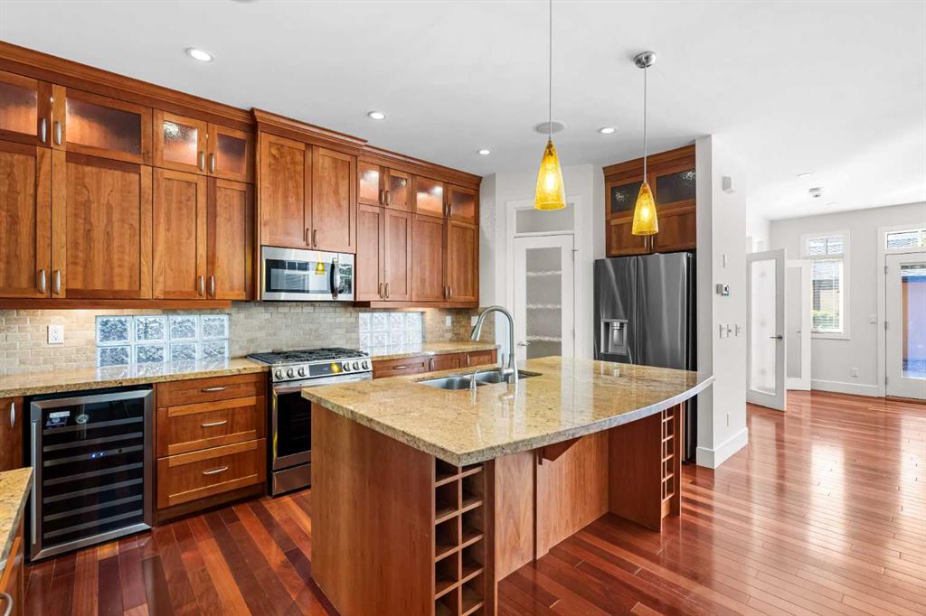 PLEASE VIEW THE DRONE VIDEO** PLEASE NOTE THE LARGER 33’ x 125’ LOT LOCATED ON A QUIET WIDE, TREE LINED STREET IN THE HEART OF WEST HILLHURST! TRIPLE HEATED DETACHED GARAGE. Bright and spacious family home with 3285 sq. ft. of living space and over $90,000.00 in upgrades! All the interior walls have been freshly painted. Tons of natural light through the large windows and glass block features throughout this home. Gleaming Brazilian Cherry floors on the main floor. A truly unique floor plan that features a large living room with gas fireplace and double French doors to the south backyard and large deck. Gourmet kitchen elegantly blends the gorgeous Cherry cabinetry with new stainless-steel appliances. Chefs will love the timeless granite counters and five burner gas stove. Large 6’9” granite island, eating bar and built-in wine storage. Large front formal dining room is perfect for family and entertaining. Terrific main floor home office located off the main entrance. Wide well-lit stairs to an exceptionally well-designed upper level. Expansive primary bedroom retreat with Cherry wood built-ins, three-way gas fireplace, vaulted ceiling and two large walk-in closets. A dream spa-inspired five-piece ensuite bathroom with separate granite vanities, elegant deep soaker tub and oversize tile shower. Two additional upper bedrooms feature vaulted ceilings, and each has its own four-piece bathroom! Convenient upper laundry includes the new upgraded washer and dryer. Spacious, open design fully developed lower-level features four egress windows, glass block window and walnut engineered hardwood floors. Expansive family/recreation area features an elegant corner gas fireplace and wine room. Large fourth bedroom and spacious three-piece bathroom with egress window and oversize walk-in shower make this perfect for guests or a nanny. Triple detached insulated, drywalled and heated garage. A wonderful south private backyard with 25’ freshly painted wood deck and paver stone patio with beautiful perennial garden. This location is so well connected that commuting to work, school and daily errands is easy. SAIT, U of C, Foothills Hospital and the inner core are just 10 minutes away. Outdoor enthusiasts will love this fabulous location nestled only two blocks from the banks of the Bow River Pathways. This premier location is the perfect place to call home.