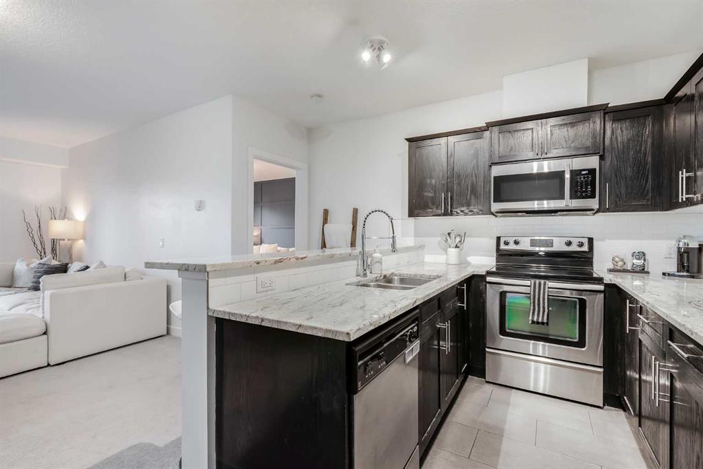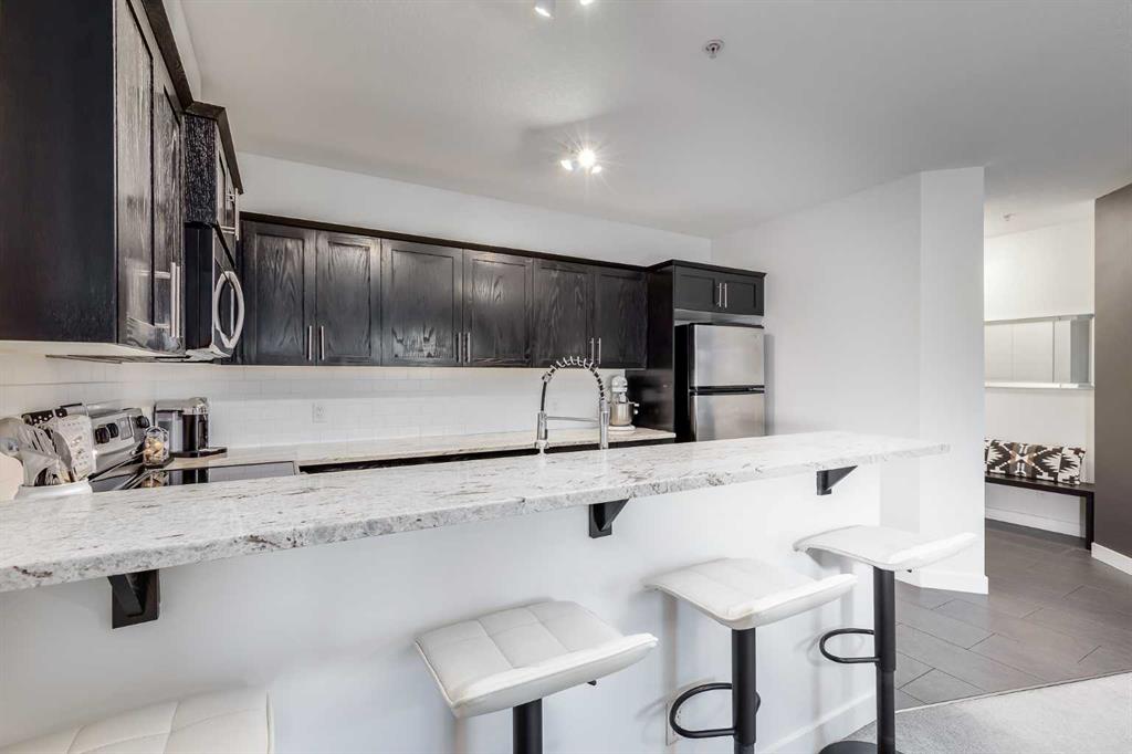 This charming condo perfectly blends style and comfort, offering 980 sq. ft. of beautifully designed and well-maintained living space. Step inside to a bright, open living room—an inviting space ideal for entertaining or relaxing after a long day. The modern kitchen features stainless steel appliances, granite countertops, and ample cabinetry, making meal prep effortless. The bedrooms are thoughtfully separated on opposite sides of the unit for added privacy. The primary bedroom impresses with a stylish feature wall, a custom walk-through closet with built-in storage, and a private ensuite bathroom. The secondary bedroom is equally spacious – perfect for family, guests, or a home office. Additional highlights include in-suite laundry, a second full bathroom, a private balcony ideal for morning coffee, and one heated underground parking stall. Located in the desirable community of Tuxedo Park, you’ll enjoy quick access to shops, restaurants, and entertainment, along with convenient proximity to public transit and major roadways. This home offers the best of inner city living – modern, functional, and perfectly situated. Don’t miss your chance to own this beautiful home. Book your showing today!