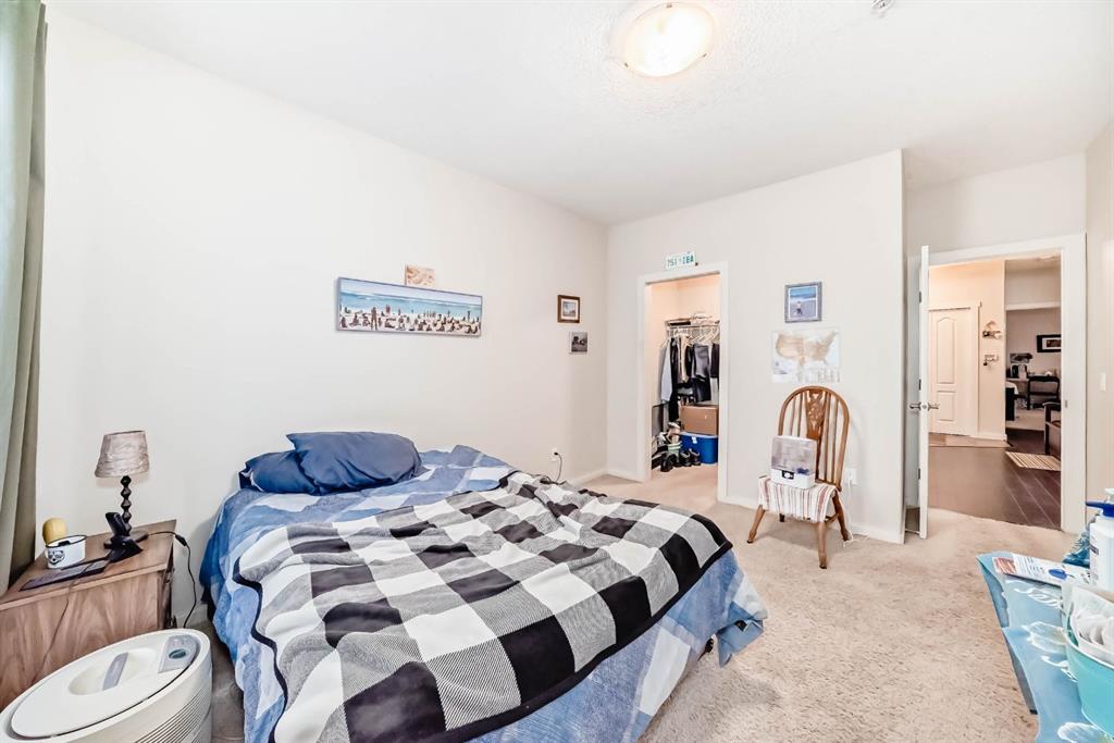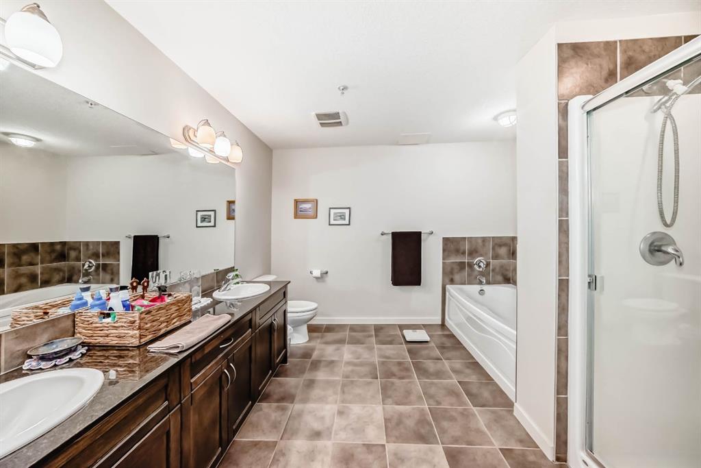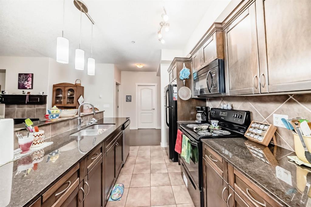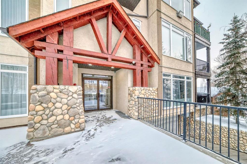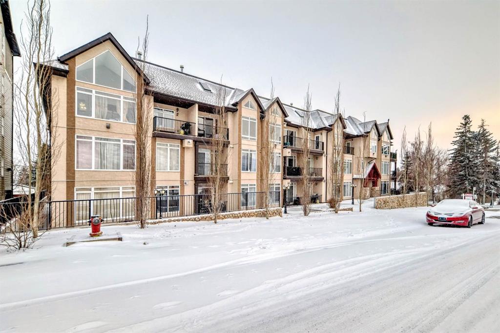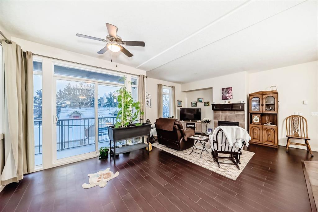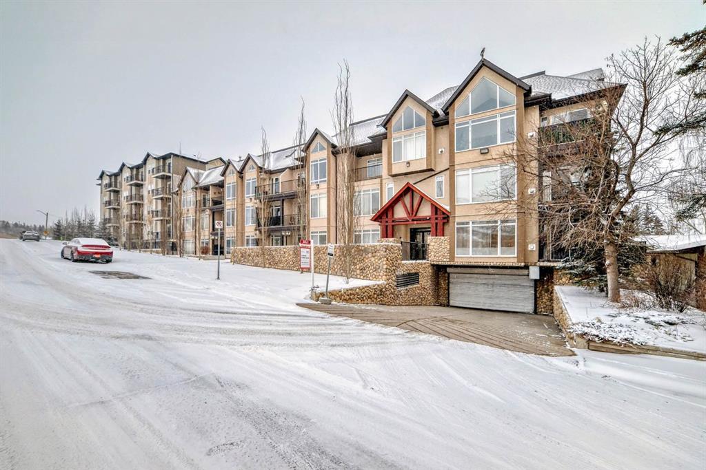 Welcome to the 141 Mountain Street Condos! This corner unit comes with TWO assigned parking stalls. Situated at the back of the building, the condo is whisper quiet and private.. The large, balcony has a partial mountain view. The large open living areas are bathed in natural light. Freshly painted throughout and sparkling clean, this condo has great spaces for entertaining. The kitchen is open with plenty of storage and storage options. The granite counter and island is perfect for baking and prep. Living room and dining room are generously sized. A gas fireplace with tile surround provides a focal point and a cozy spot to relax and enjoy the views. The home boast of 2 huge bedrooms, 4 piece ensuite includes dual granite topped sinks, huge walk through closet and storage. The Parking is heated and secure with visitor and accessible parking for your guests. You will love the convenience of being within walking distance to all amenities in downtown Cochrane. This location provide quick access to the mountains and all quadrants of Calgary via Crowchild Trail or Highway 1. The Tuscany C Train station is a quick drive that also gives good access. This building is well managed by the proactive condo board. You will love this beautiful space in central Cochrane!