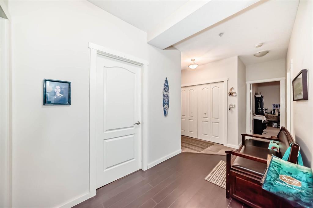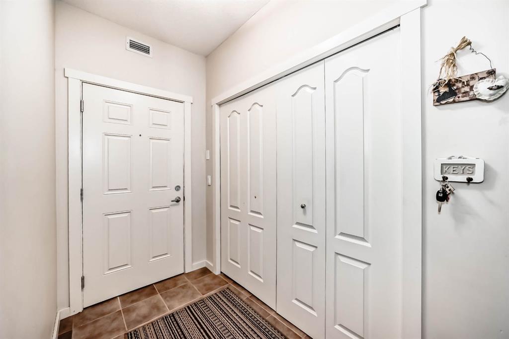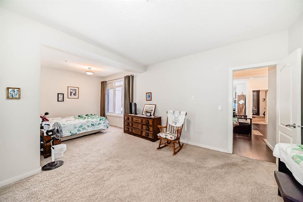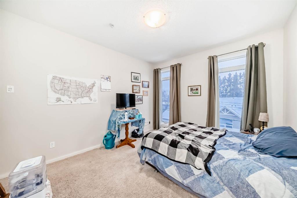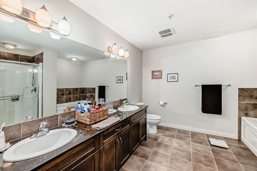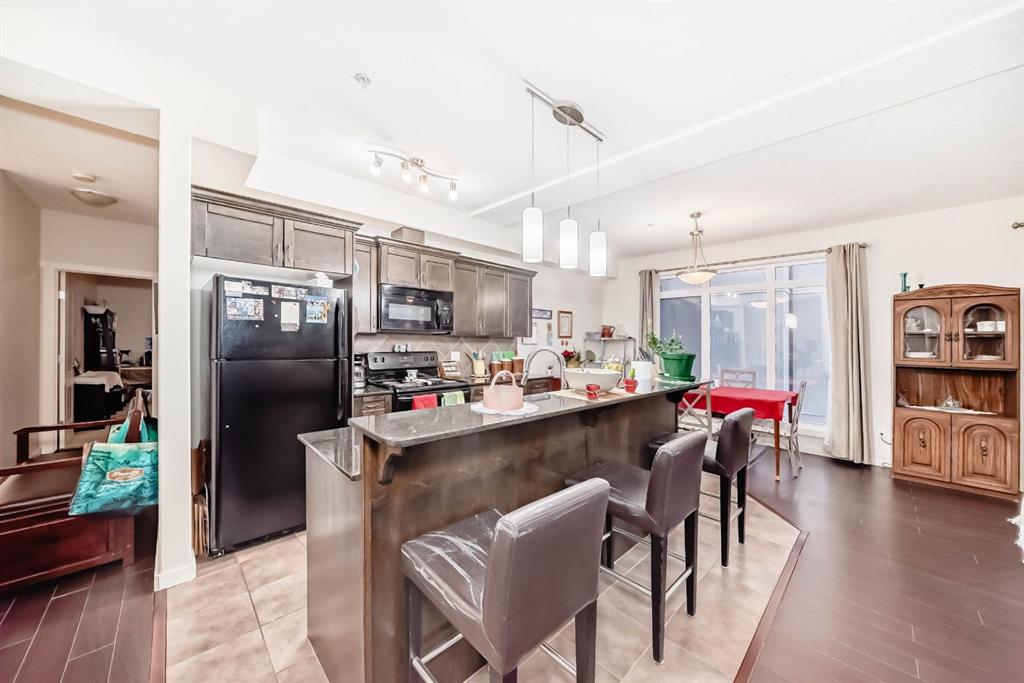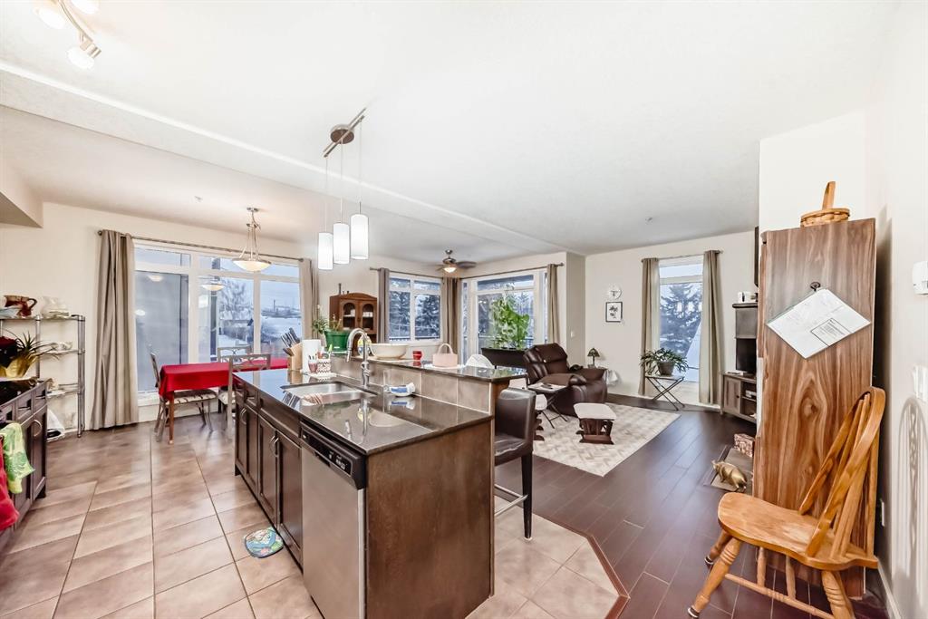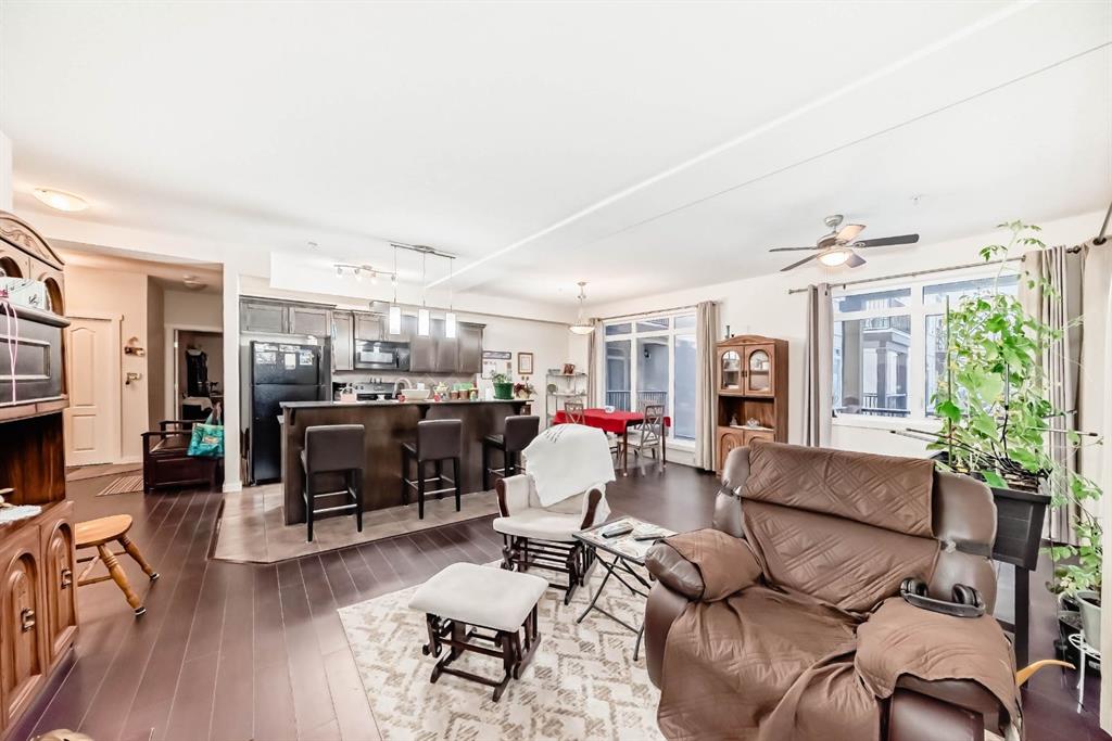 Welcome to the 141 Mountain Street Condos! This corner unit comes with TWO assigned parking stalls. Situated at the back of the building, the condo is whisper quiet and private.. The large, balcony has a partial mountain view. The large open living areas are bathed in natural light. Freshly painted throughout and sparkling clean, this condo has great spaces for entertaining. The kitchen is open with plenty of storage and storage options. The granite counter and island is perfect for baking and prep. Living room and dining room are generously sized. A gas fireplace with tile surround provides a focal point and a cozy spot to relax and enjoy the views. The home boast of 2 huge bedrooms, 4 piece ensuite includes dual granite topped sinks, huge walk through closet and storage. The Parking is heated and secure with visitor and accessible parking for your guests. You will love the convenience of being within walking distance to all amenities in downtown Cochrane. This location provide quick access to the mountains and all quadrants of Calgary via Crowchild Trail or Highway 1. The Tuscany C Train station is a quick drive that also gives good access. This building is well managed by the proactive condo board. You will love this beautiful space in central Cochrane!