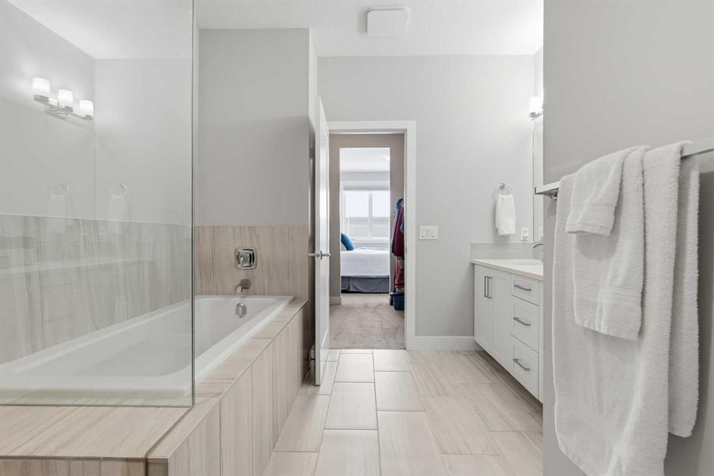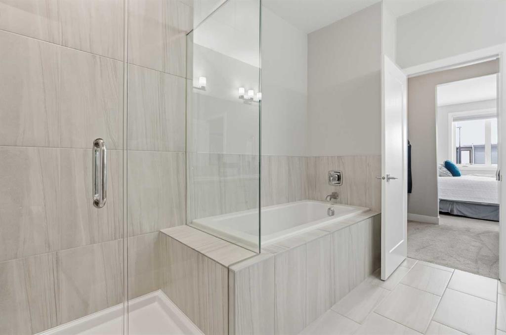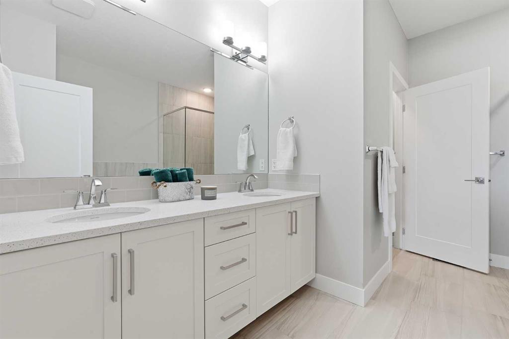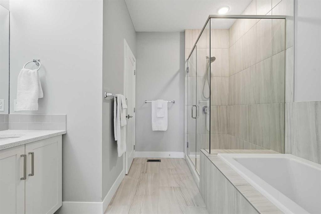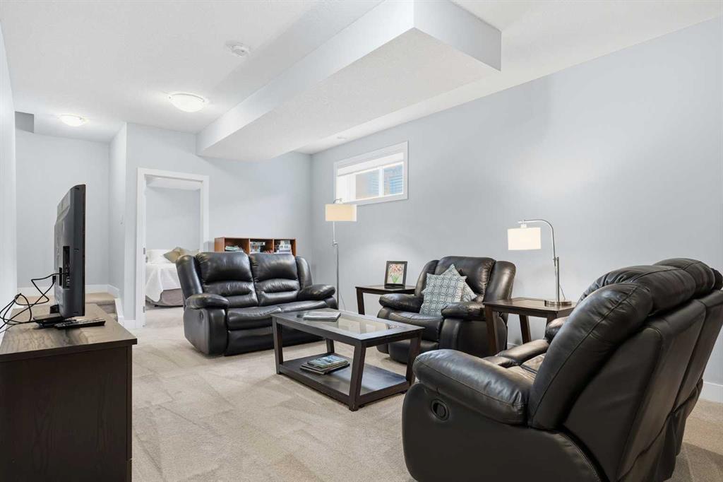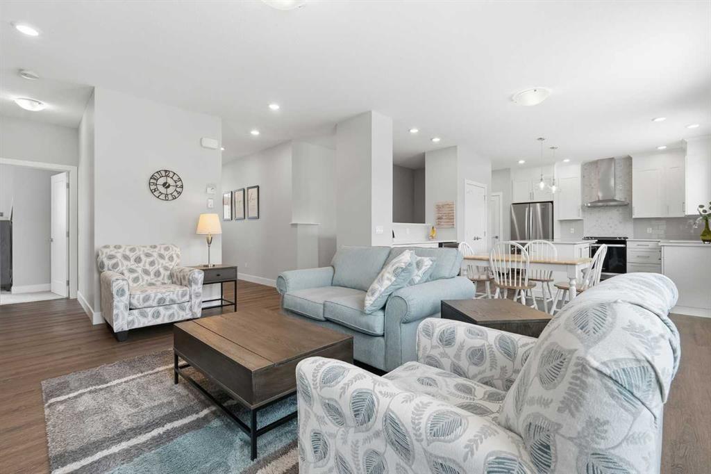 Experience the ease of lock-and-leave villa living in this nearly brand-new home, completed in 2024 and still carrying that fresh, new-home feel (and smell!) Elegantly and functionally designed, this low-maintenance villa offers tons of developed living space and is surrounded by everyday conveniences, including a nearby nature reserve, Spruce Meadows, shopping, and excellent access to major transportation routes. Inside, the home is loaded with upgrades. Through the front door you’re greeted with luxurious vinyl plank flooring underfoot, high ceilings above, and a neutral color palette throughout – each space absolutely drenched in natural sunlight. A quaint den to your right offers flexible use, while a handy half bath is thoughtfully tucked away from the main living and dining areas. You’re then welcomed into the bright living room, featuring a gorgeous upgraded gas fireplace and access to your rear deck, complete with a gas hookup for your BBQ. The kitchen & dining area truly anchor the home with their “wow” factor: extended height cabinets, a stunning hood fan, gas range, fridge with water, and a built-in microwave all form part of the upgraded appliance package. Quartz countertops make prep and cleanup effortless, while under-cabinet lighting adds warmth and ambiance at the end of the day. All cabinetry is finished with soft-close hinges and practical organizers throughout. The dedicated coffee/butler server station with a beverage cooler keeps your main counter space free and functional, and offers even more prep & storage space. The main level is designed with true convenience in mind, including side-by-side laundry. The generous primary bedroom features a large walk-in closet that leads into your spa-like 5-piece ensuite complete with dual sinks, a stunning tub, stand-alone shower, separate toilet room, and luxurious in-floor heating. Downstairs, high ceilings create a bright, open feel that’s far from a typical basement. A huge living area offers flexibility for a gym, media space, games room – whatever suits your lifestyle. Two additional bedrooms, a 4-piece bathroom, and ample storage complete the lower level. The utility room includes a high-efficiency furnace, sump pump, rough-in for radon mitigation, air exchange system, and a large hot water tank. This villa is finished with central A/C, a double attached garage, and a generously sized driveway (shoveled by the condo corp!) Beautifully appointed and designed for effortless living, this home is the perfect blend of comfort, luxury, and low-maintenance convenience – an ideal option for anyone seeking easy living. This is truly a smart move.