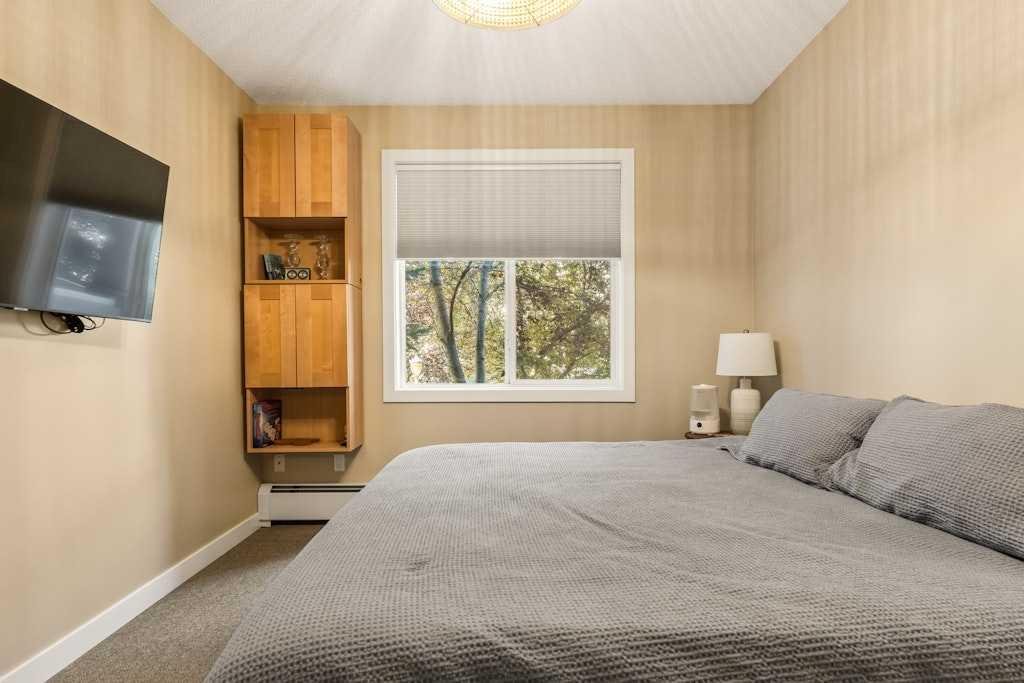 Recent updates over the last two years add even more value, including fresh paint, updated light fixtures, new ceiling fans in the bedrooms, all new screens, a new screen door to the patio, and new blinds. The kitchen has been further enhanced with a new microwave and dishwasher, and the living room features a multidirectional TV mount. A rare perk for the building, the unit also includes an in-wall air conditioning system in the living room – perfect for Calgary’s warmer days. Lightly used (just 3-4 months a year), the condo shows beautifully and feels nearly new.
